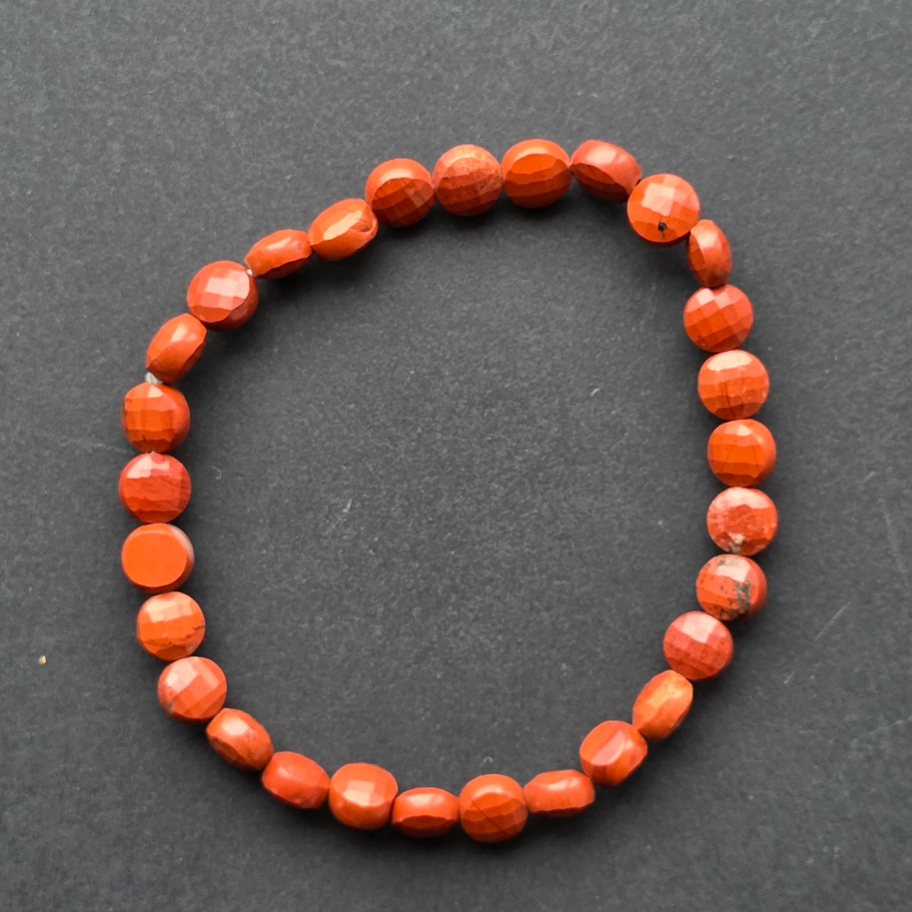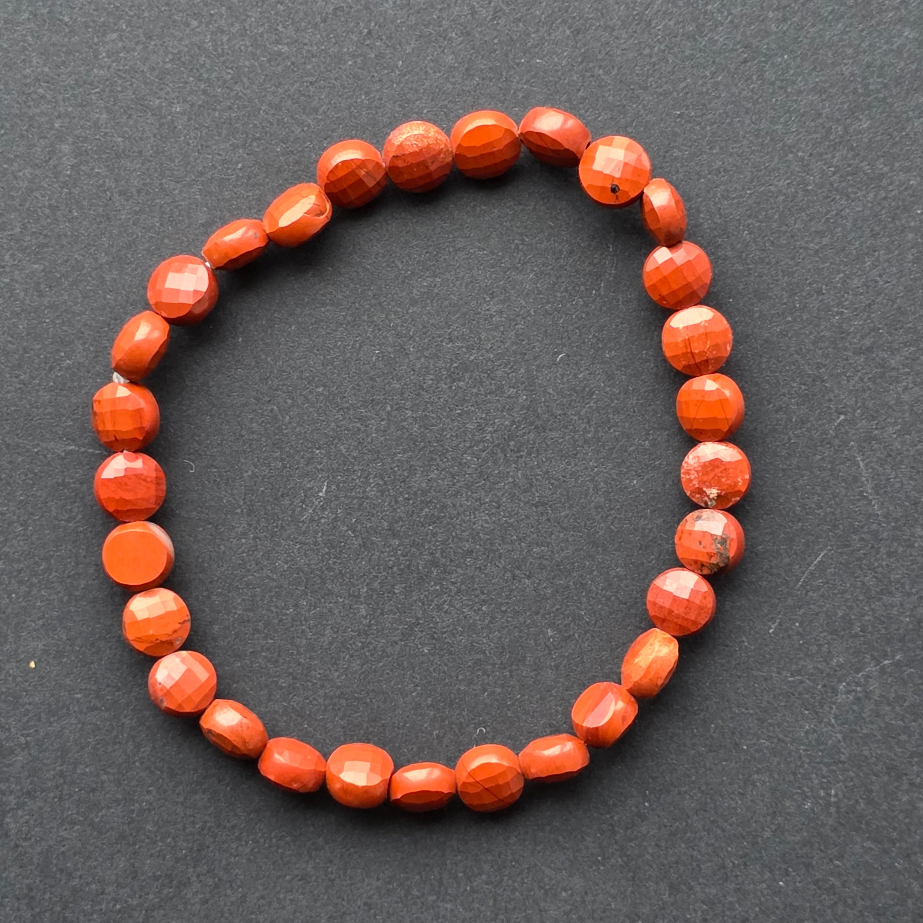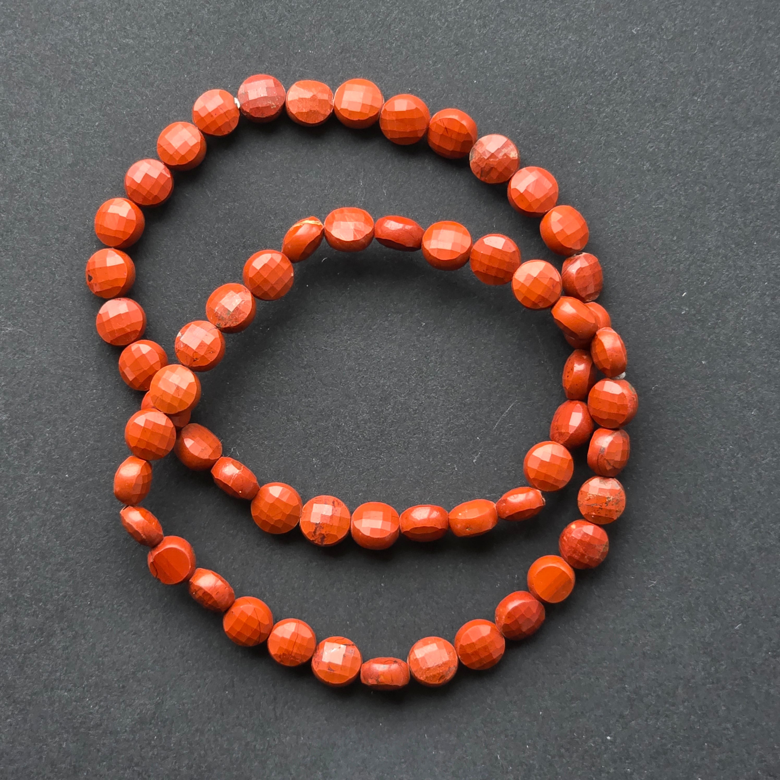 Csiszolt vörös jáspis karkötő, kerek korongok 6x4 mm