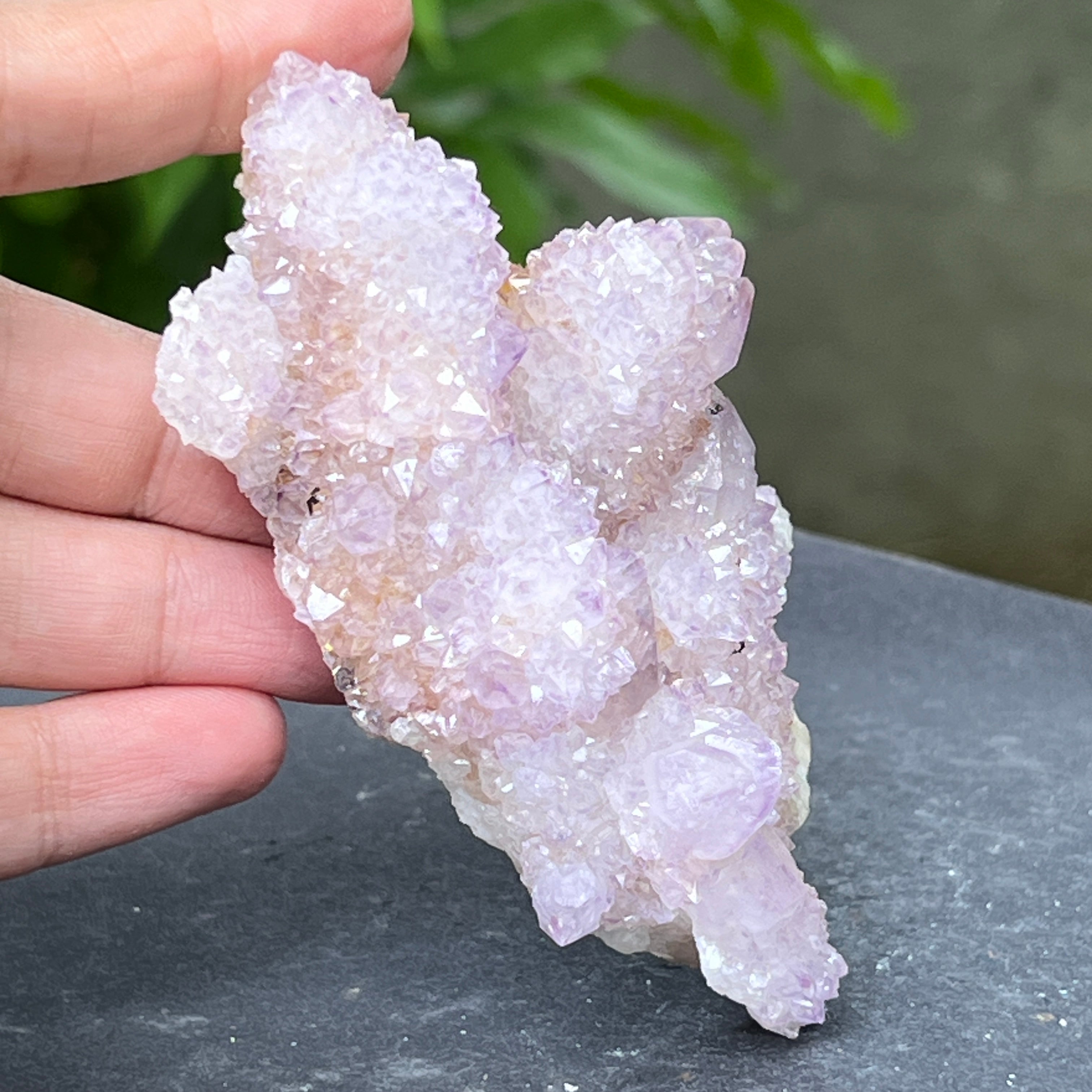 Az afrikai föld mélyén, ott, ahol a hegyek csendje elrejtett meséket rejt, születik egy különleges szépségű kristály: a Spirit Kvarc Ametiszt, más néven „Kaktusz Kvarc”. Ez a mineralógiai csoda misztikus aurával körülvéve tűnik – egyetlen szilárd alap, amelyet több ezer finom csúcs borít, akár egy kristályközösség, amely a fény táncában egyesül.