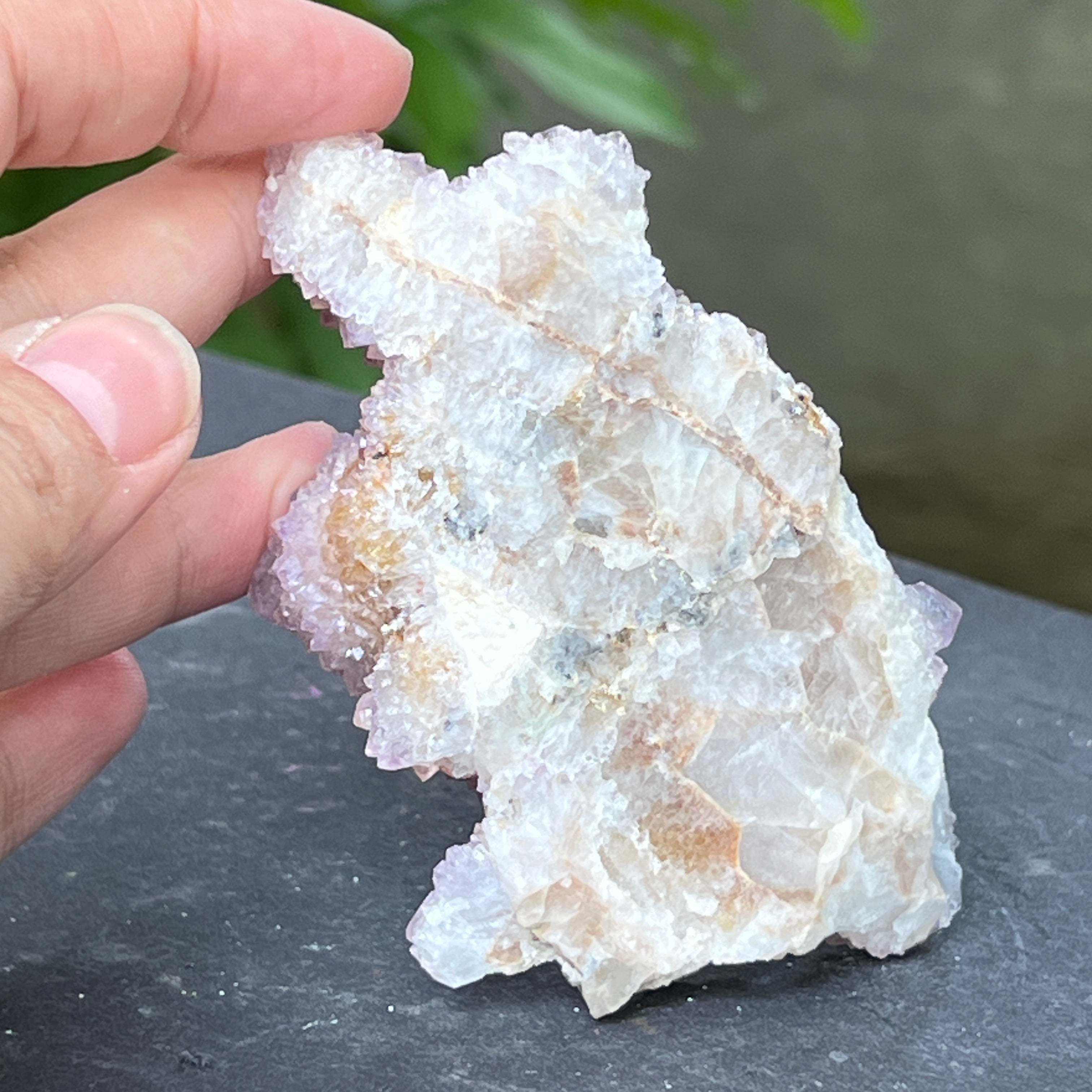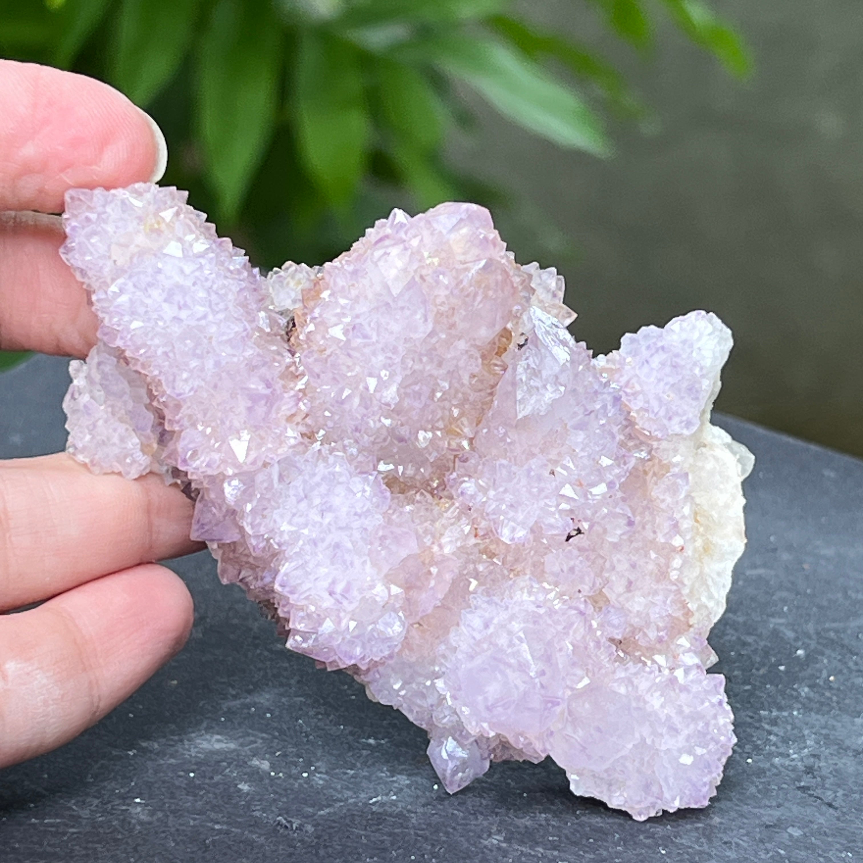 Dél-Afrikából származó egyedi példány, amely ötvözi a kvarc mély energiáját az ametiszt magas rezgéseivel. Ez a kő az együttműködés és a lelki közösség köve, az egyéniség és az egység közötti harmónia szimbóluma. Minden apró kristály a közös középpontból sugárzik, mint a tökéletes egyensúlyban lévő tudatháló.