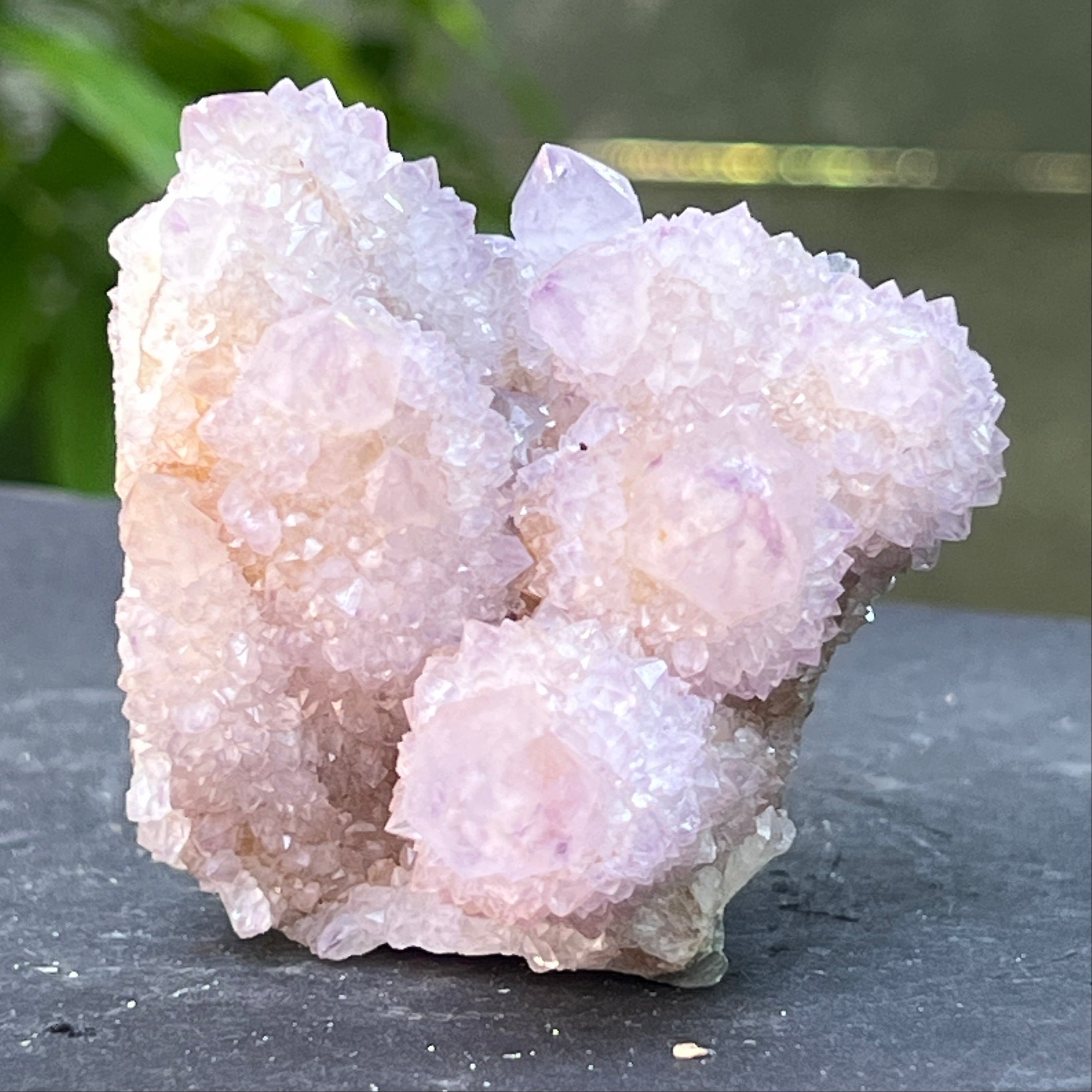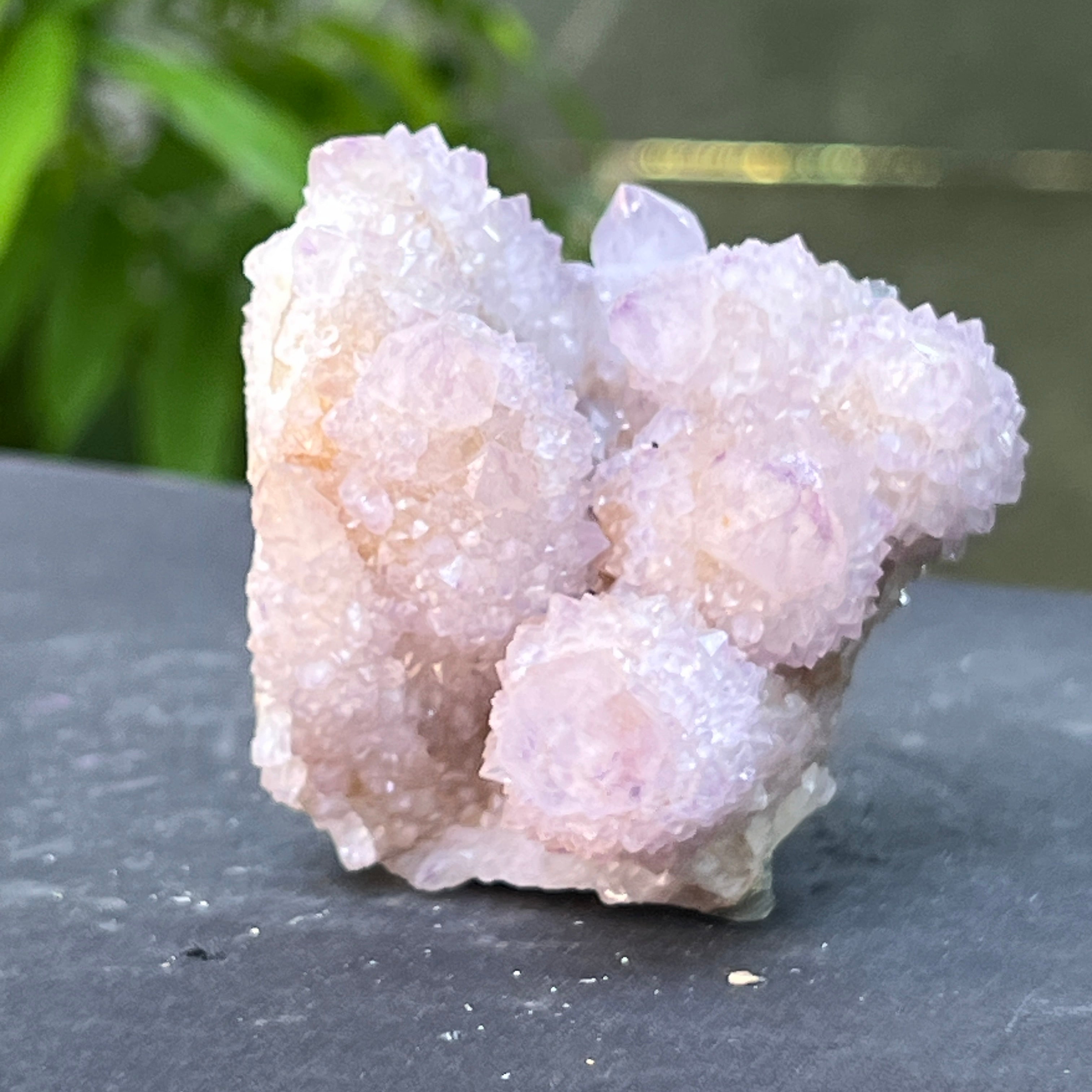 Az afrikai föld mélyén, ott, ahol a hegyek csendje elrejtett meséket rejt, születik egy különös szépségű kristály: a Spirit Kvarc Ametiszt, más néven „Kaktusz Kvarc”. Ez a mineralógiai csoda misztikus aurával körülvéve tűnik – egyetlen masszív alap, amelyet több ezer finom csúcspont borít, mint egy kristályközösség, amely a fény táncában egyesült.