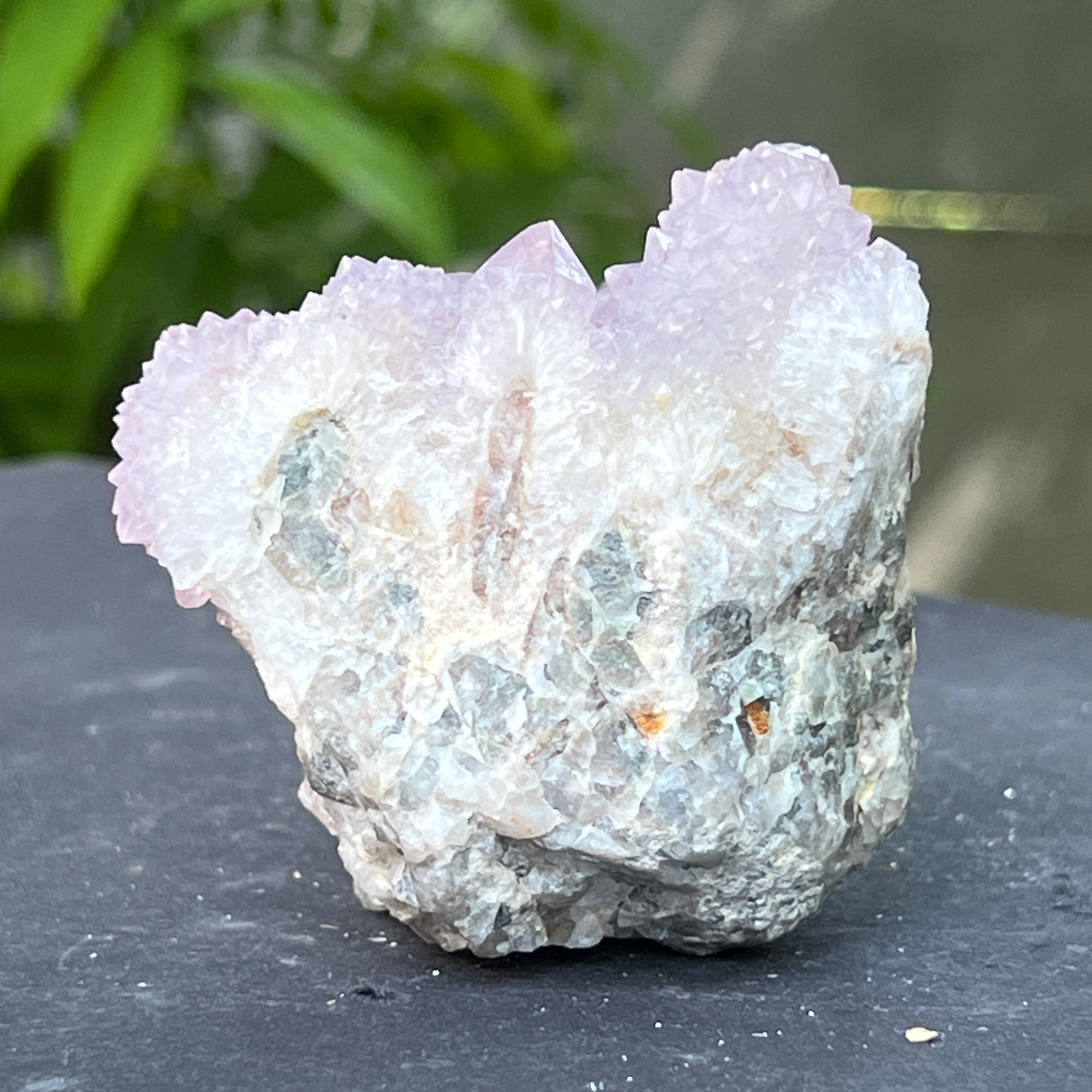 Dél-Afrikából származik, ez az egyedi példány egyesíti a kvarc mély energiáját az ametiszt magas rezgéseivel. Ez az együttműködés és a lélektársaság köve, a harmónia szimbóluma az egyediség és az egység között. Minden apró kristály a közös középpontból sugárzik, mint egy tökéletes egyensúlyban lévő tudatháló.