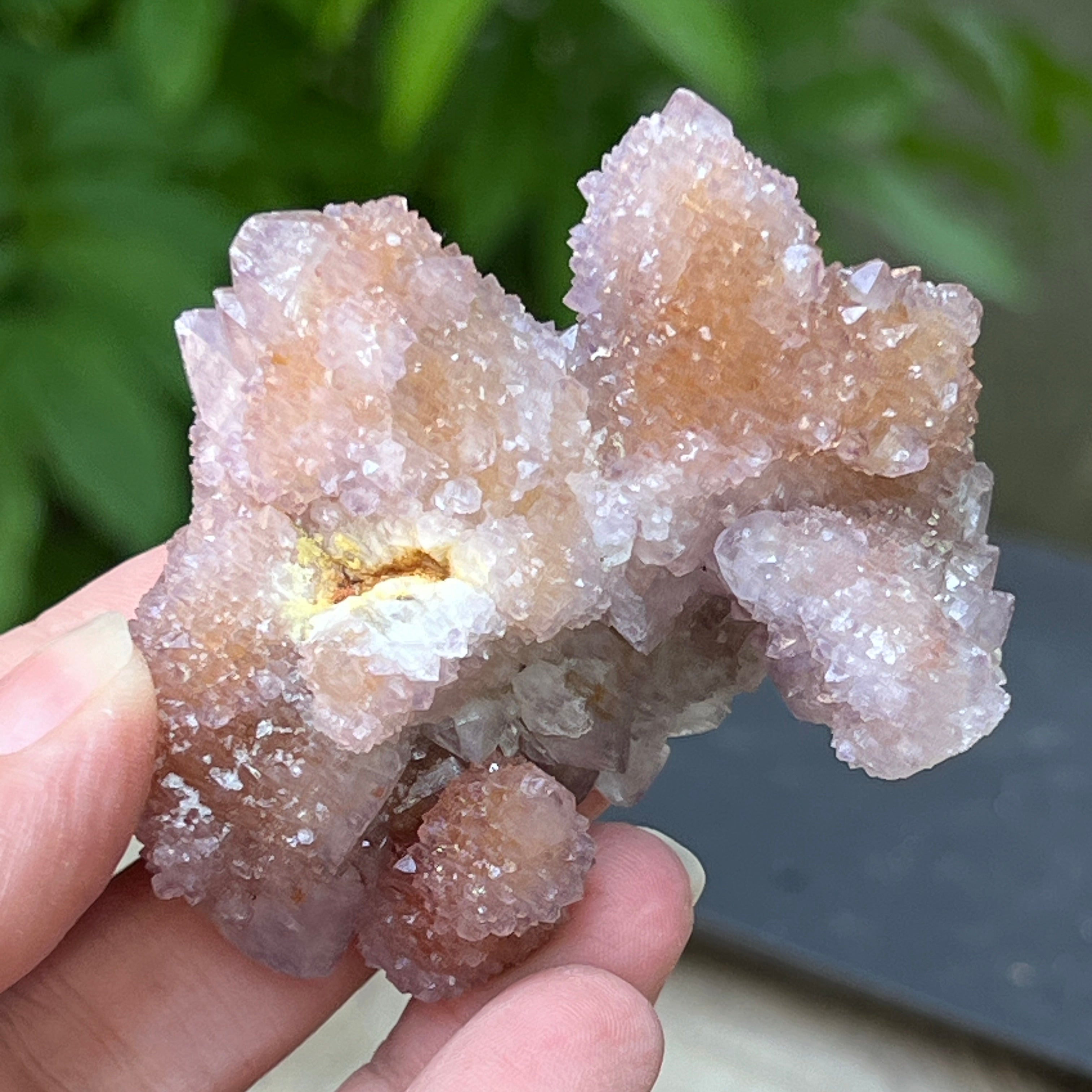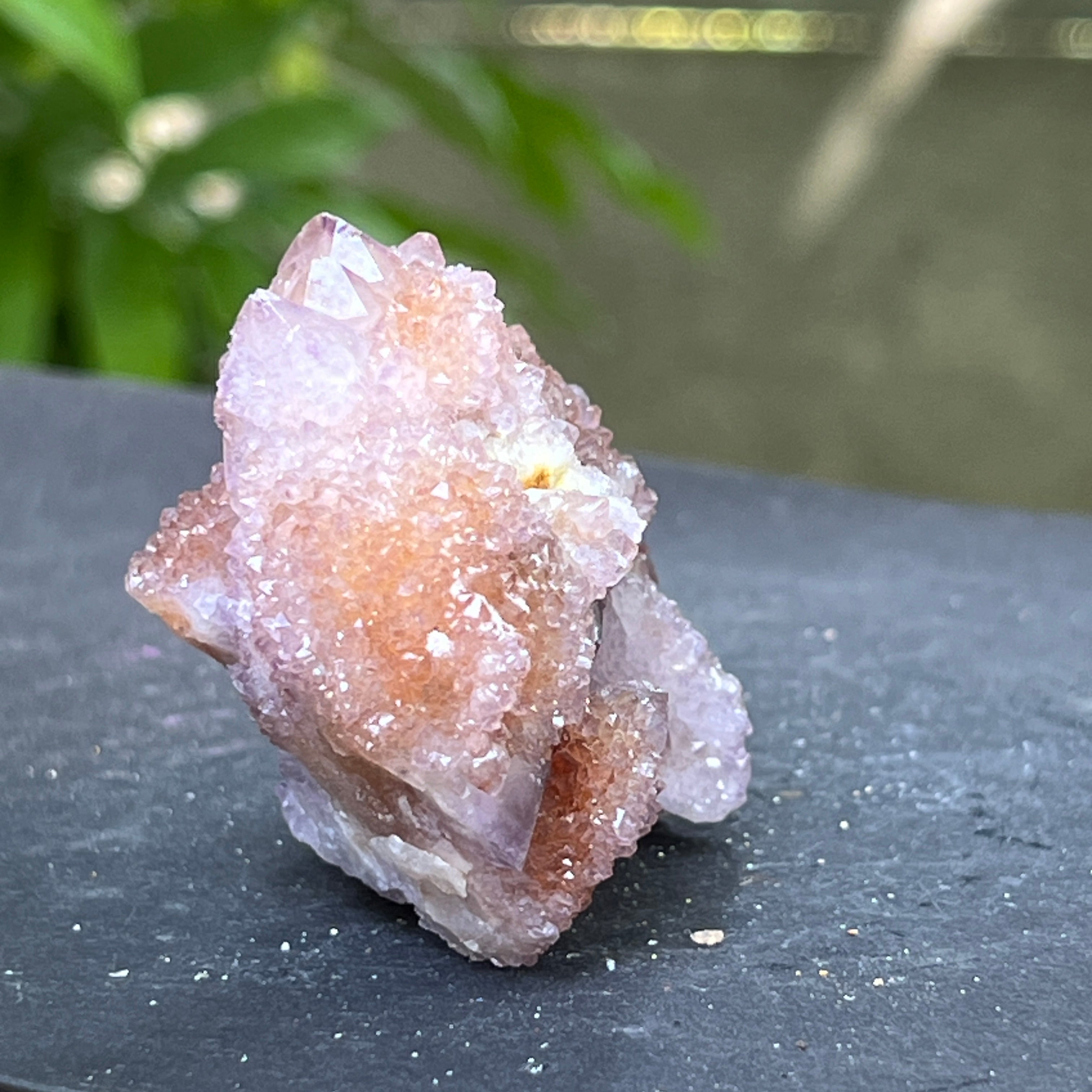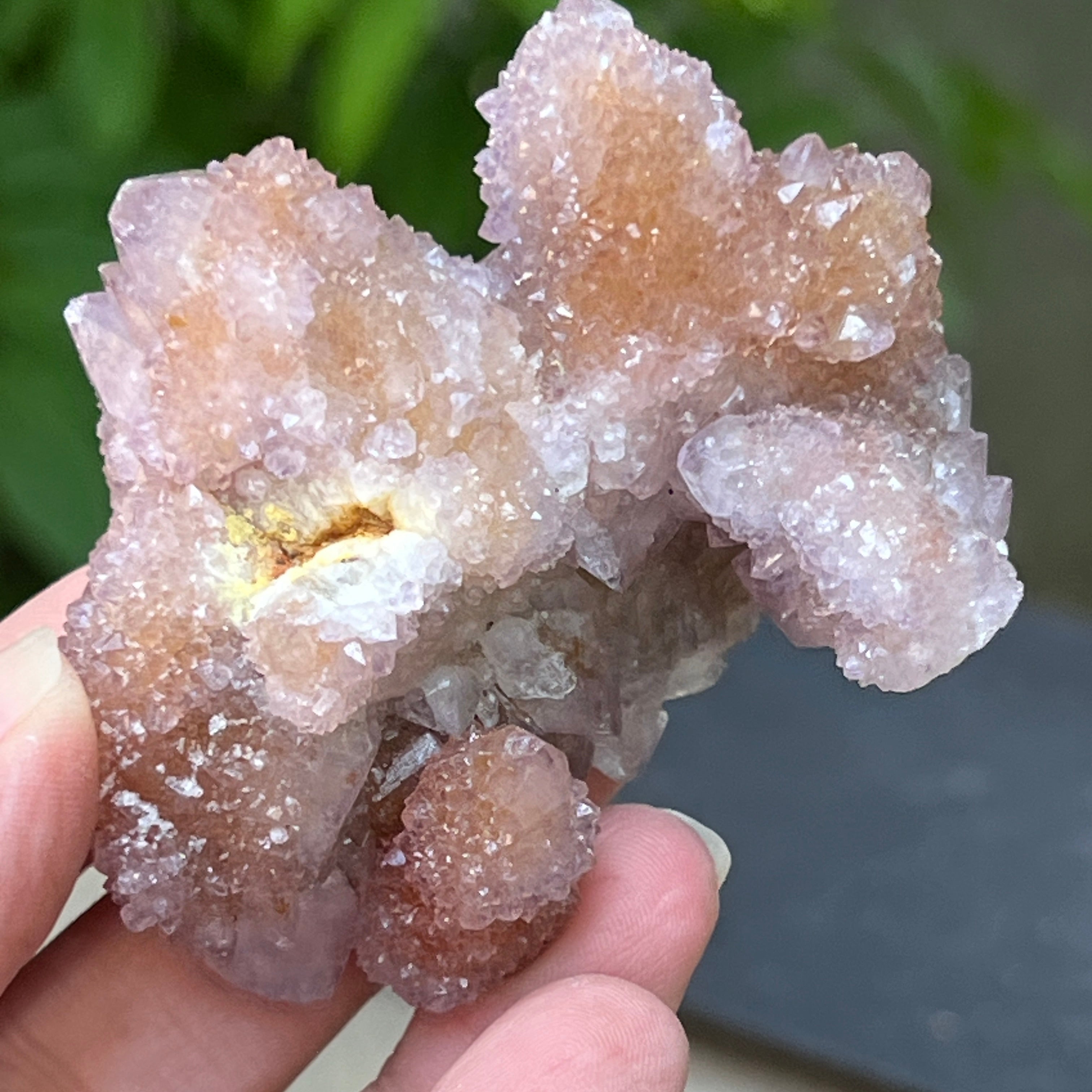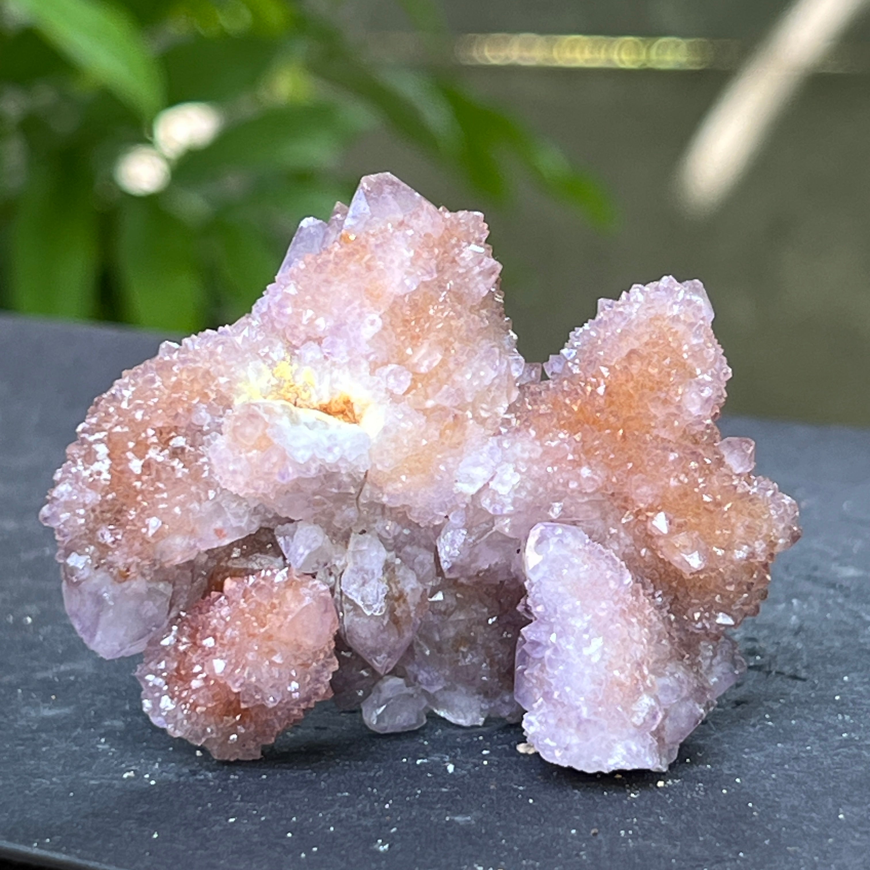 Dél-Afrikából származó, egyedi példány, mely egyesíti a kvarc mély energiáját az ametiszt magas rezgéseivel. Ez az együttműködés és a lelki közösség köve, az individuum és az egység közötti harmónia szimbóluma. Minden apró kristály a központi forrásból sugárzik, mint egy tökéletesen kiegyensúlyozott tudat-háló.