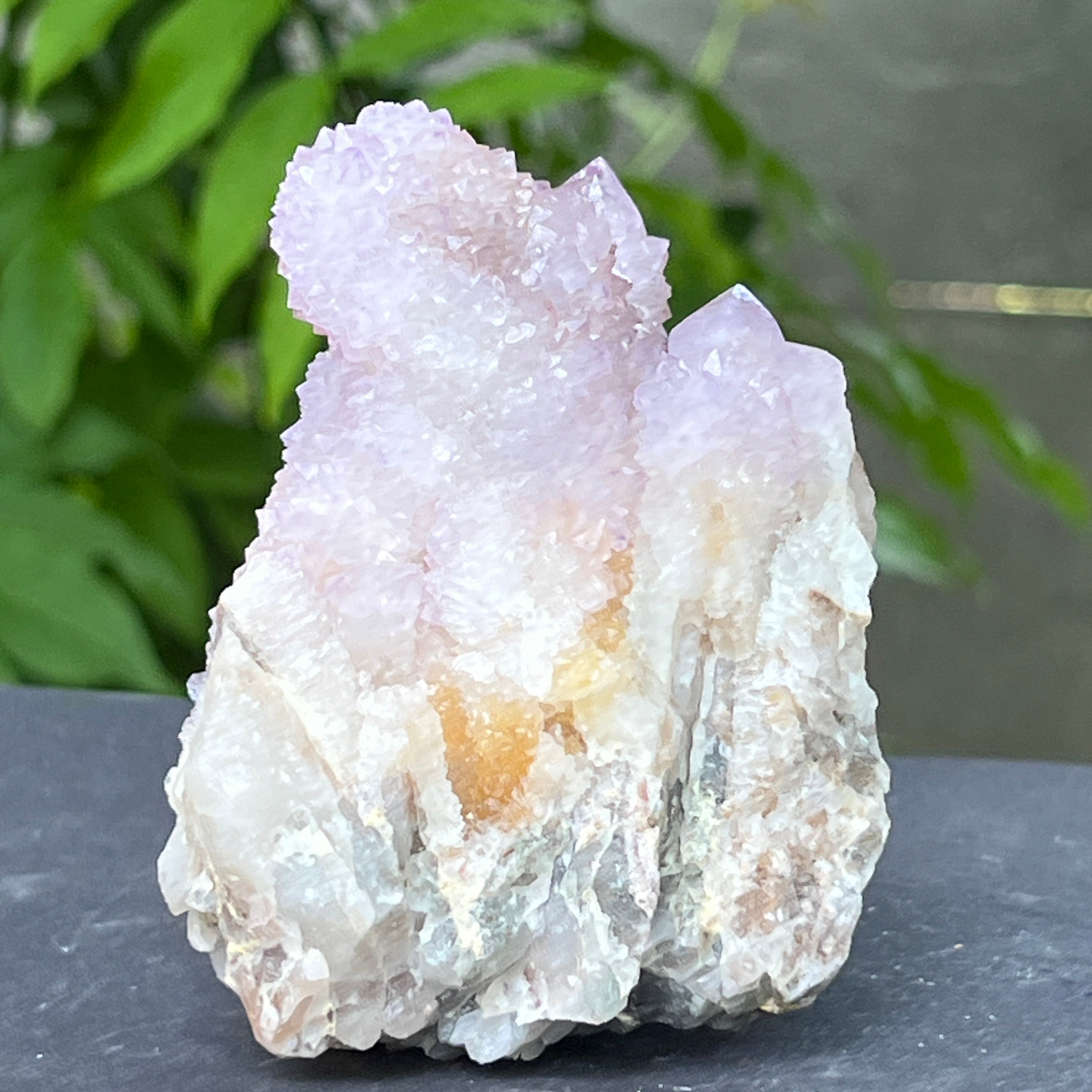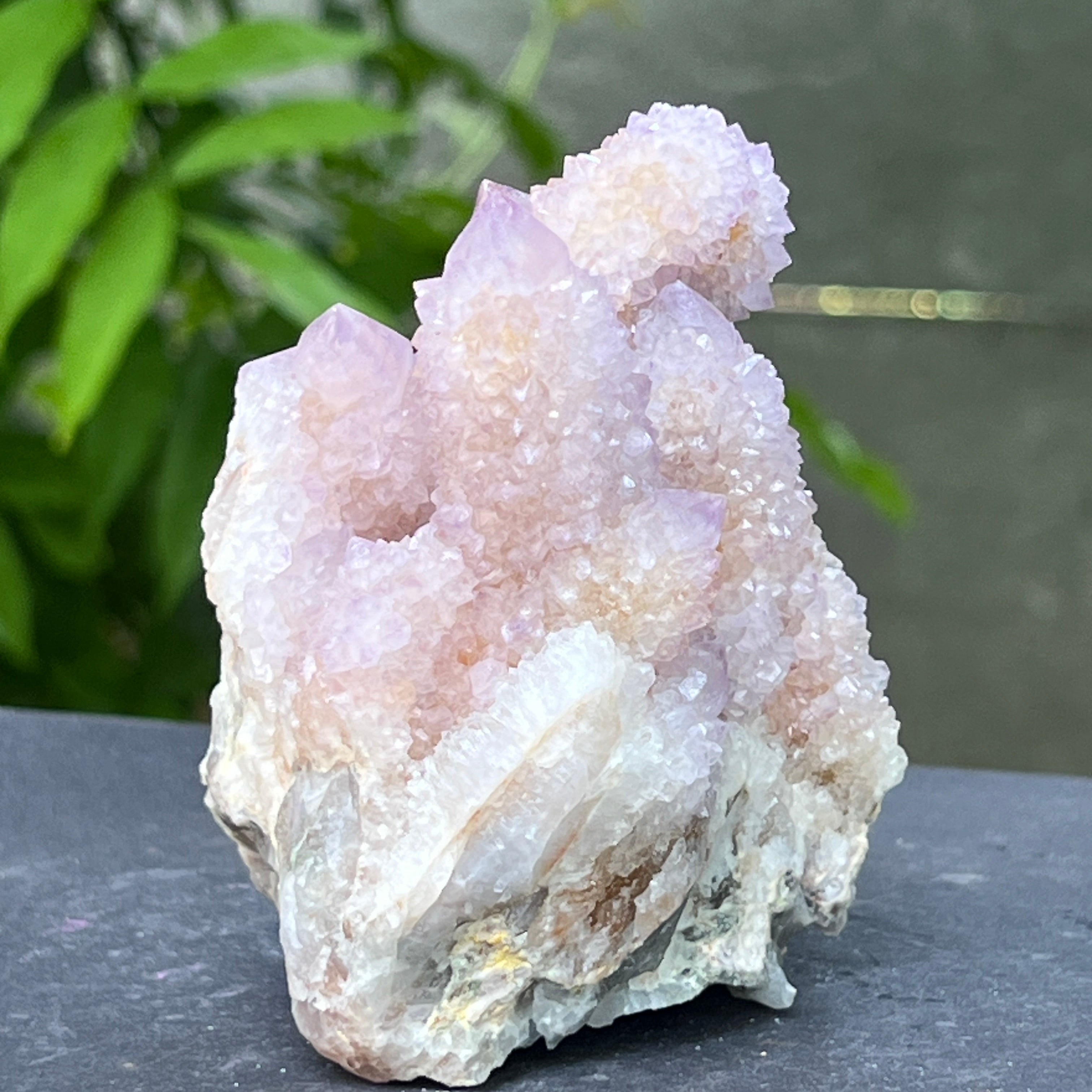 Dél-Afrikából származó egyedi példánya a kvarc mély energiáját a magas rezgésű ametisztével ötvözi. Ez a kő az együttműködés és a lelki közösség köve, az egyéniség és az egység közötti harmónia szimbóluma. Minden apró kristály a közös középpontból sugárzik, mint a tökéletes egyensúlyban lévő tudat hálózata.