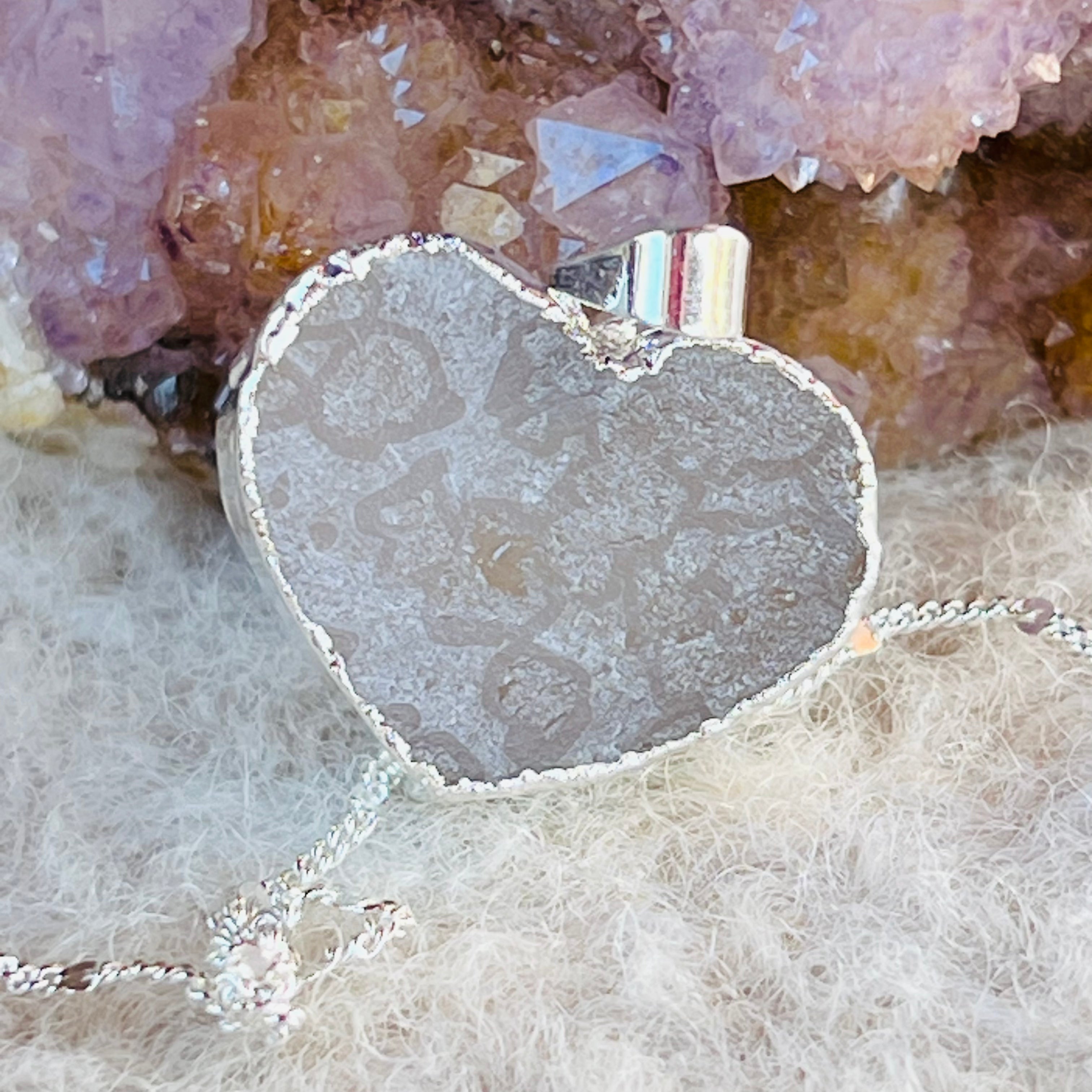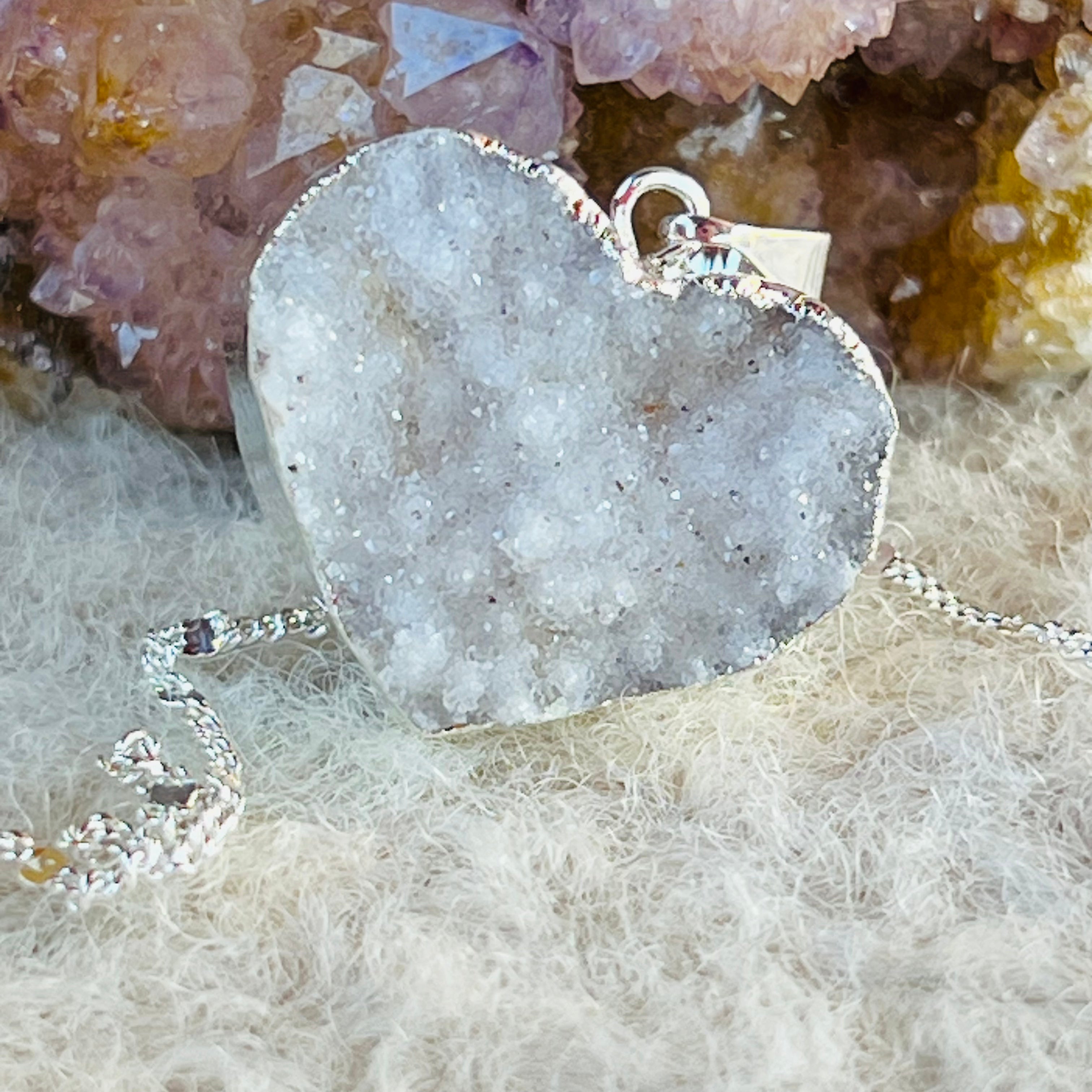 Druzy achát szív medál ezüst bevonattal, Brazíliából, 1. modell