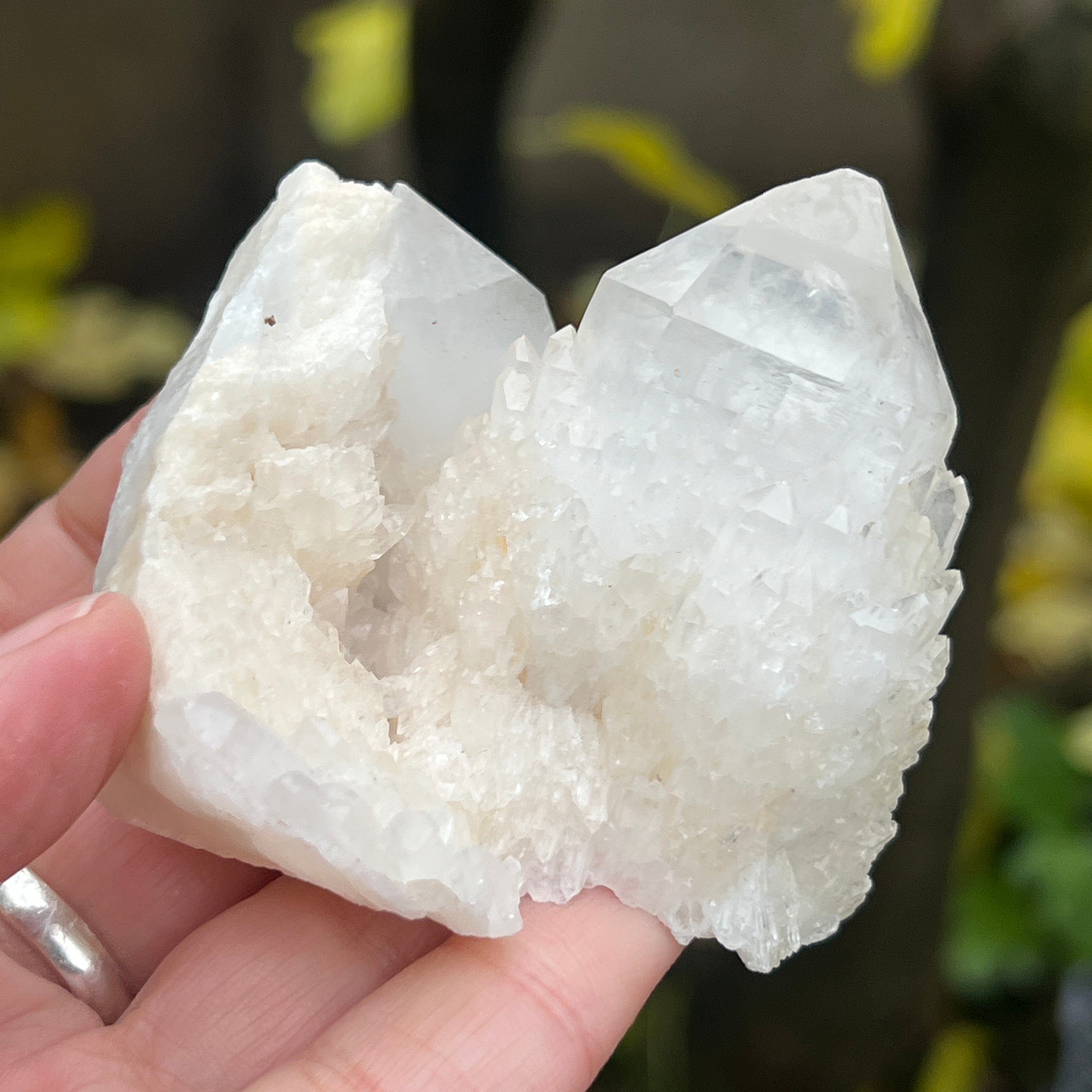 Egy csúcs, mintha maga a fény faragta volna. Az égi kvarc, más néven gyertya kvarc, ötvözi a kvarckristály erejét a belső láng gyengédségével és ragyogásával. Egyedi, kristályos ananászra emlékeztető formája mély tisztító energiát és a tudat felsőbb síkjaival való kapcsolatot sugároz.