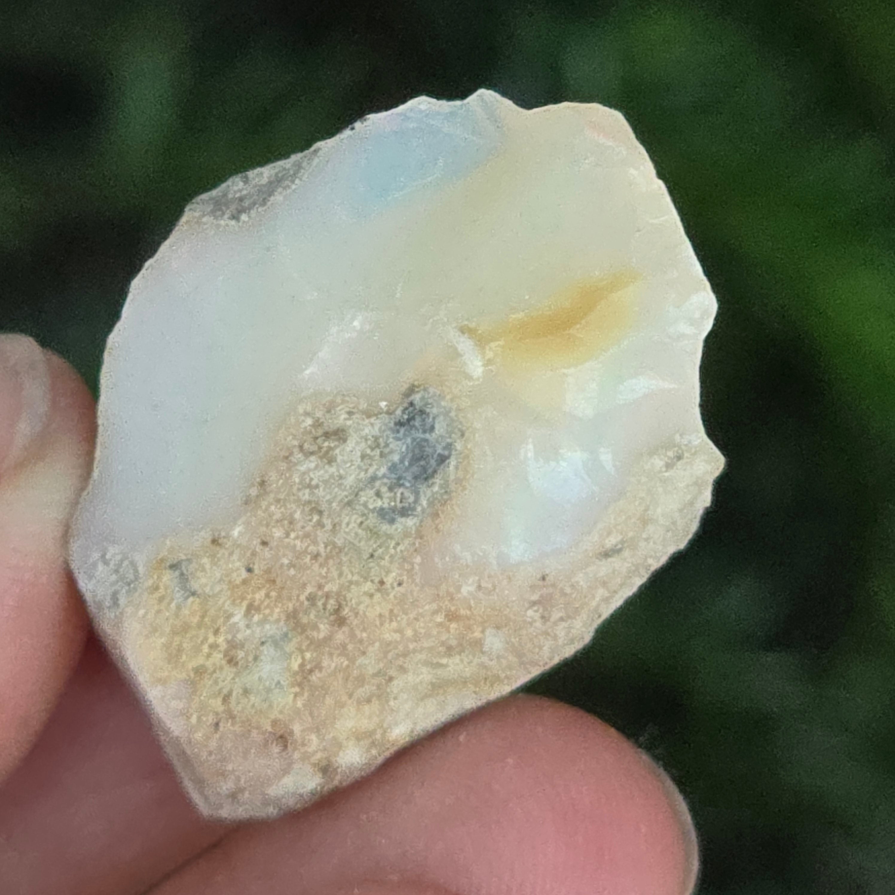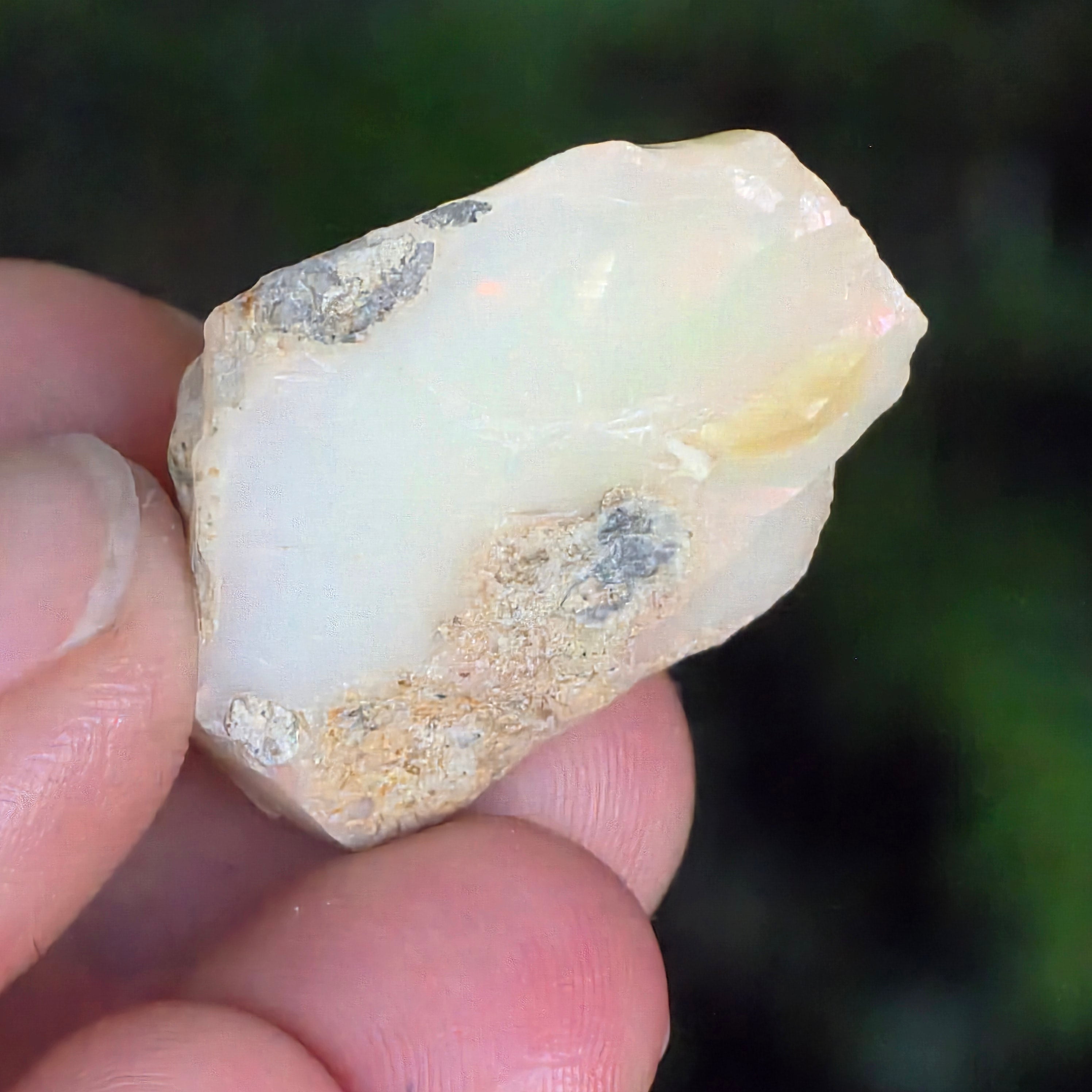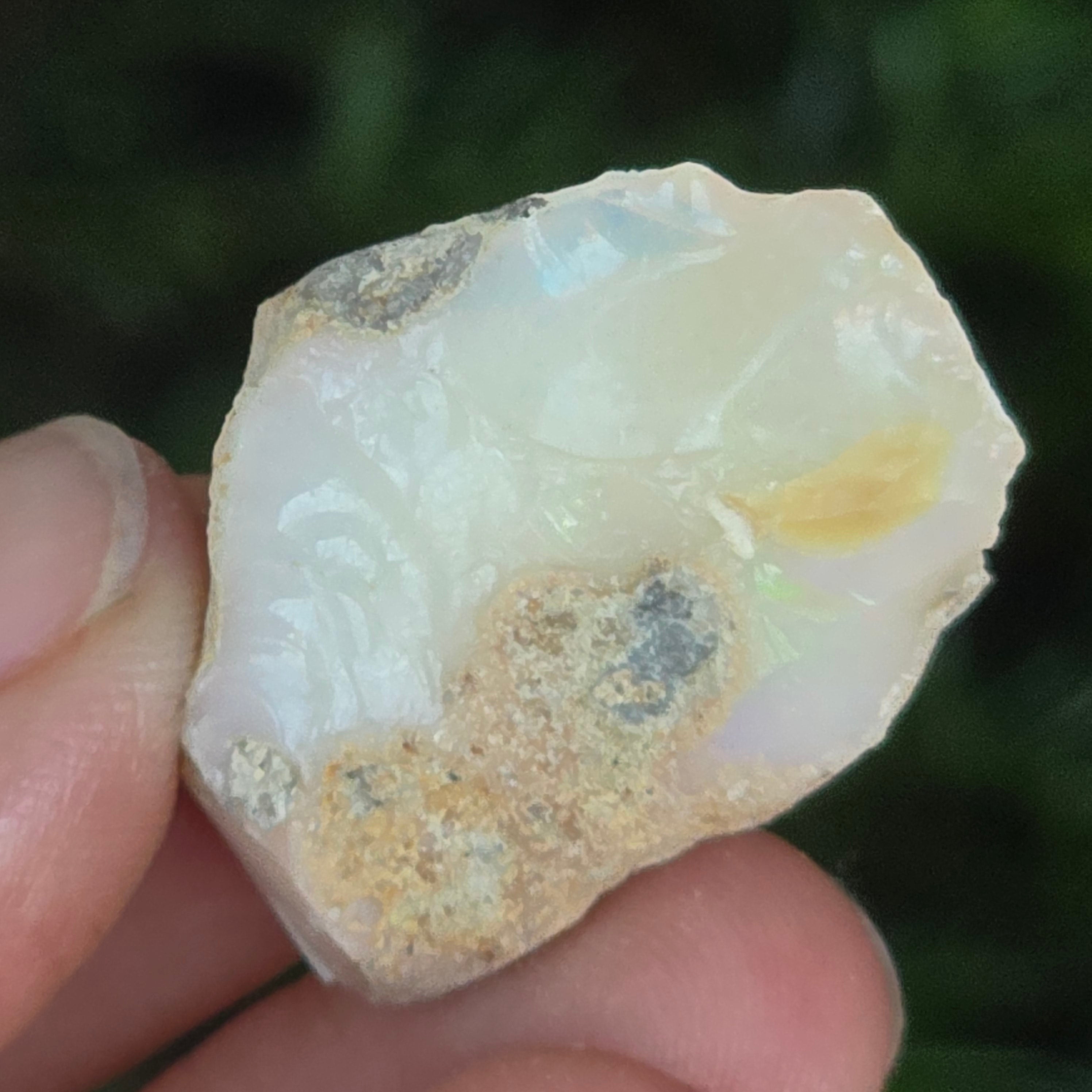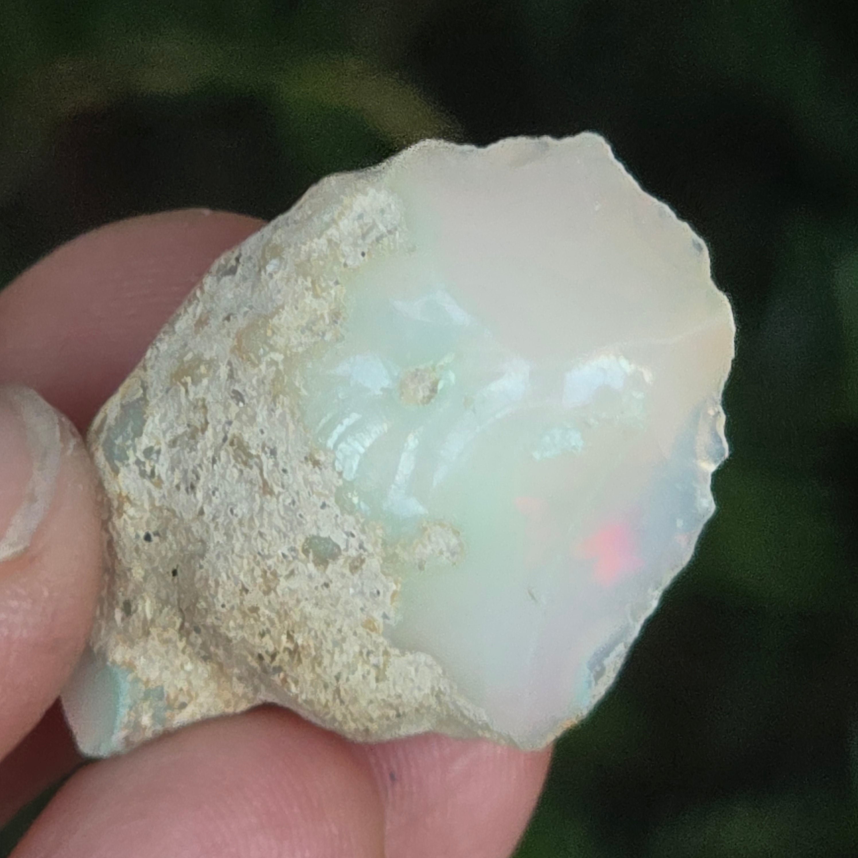 Ha fénybe nézzük, minden visszaverődés színjátékká válik — élénk piros, elektromos zöld, olvadt arany — a természetes fényjelenség, az úgynevezett színejátékmegnyilvánulása, amely csak a legértékesebb opáloknál figyelhető meg.