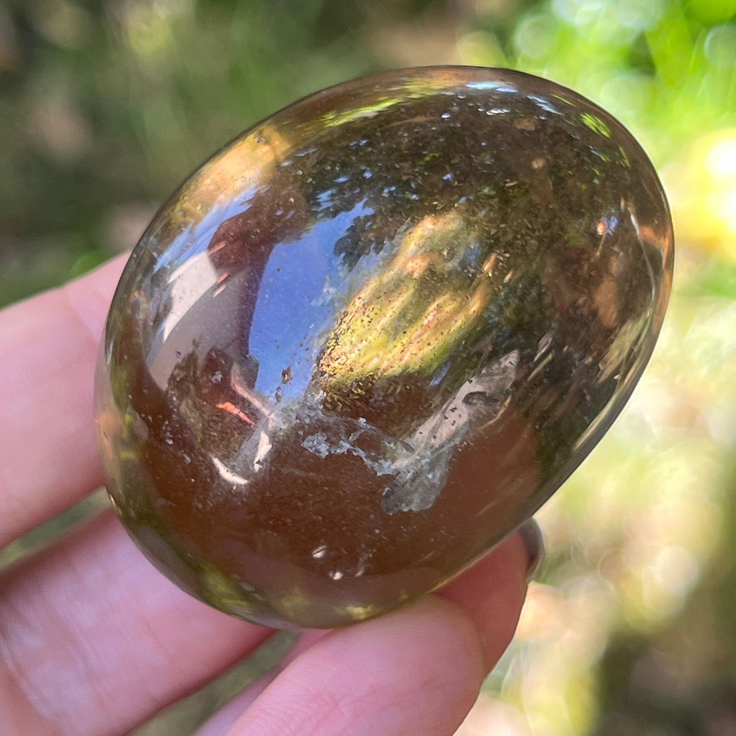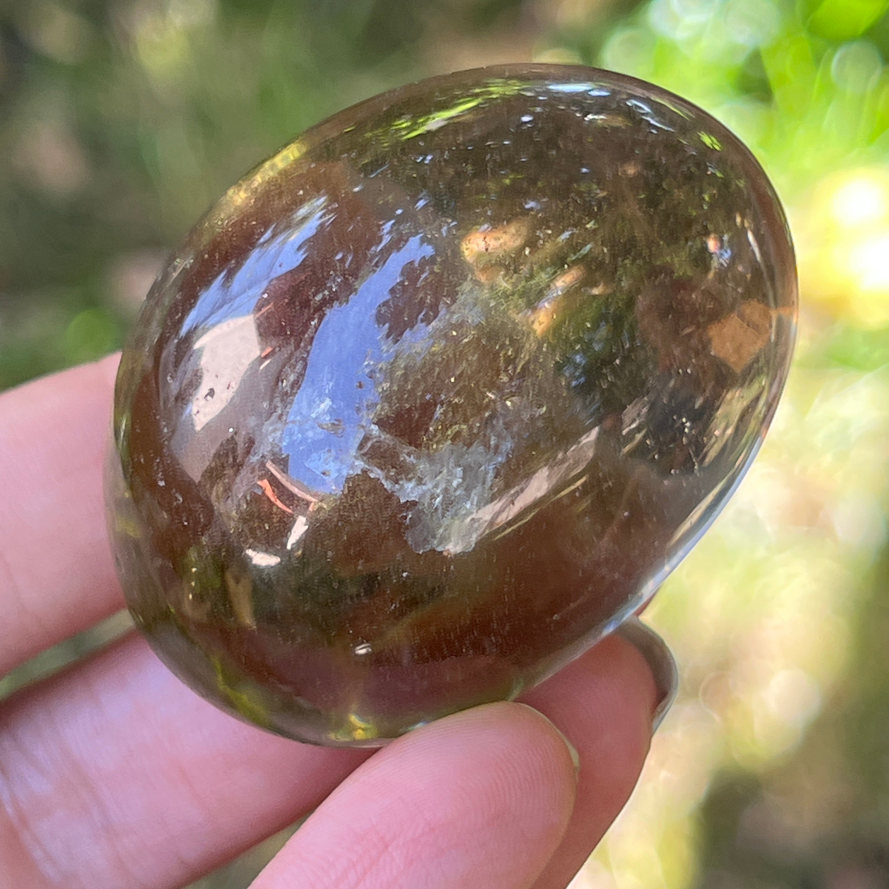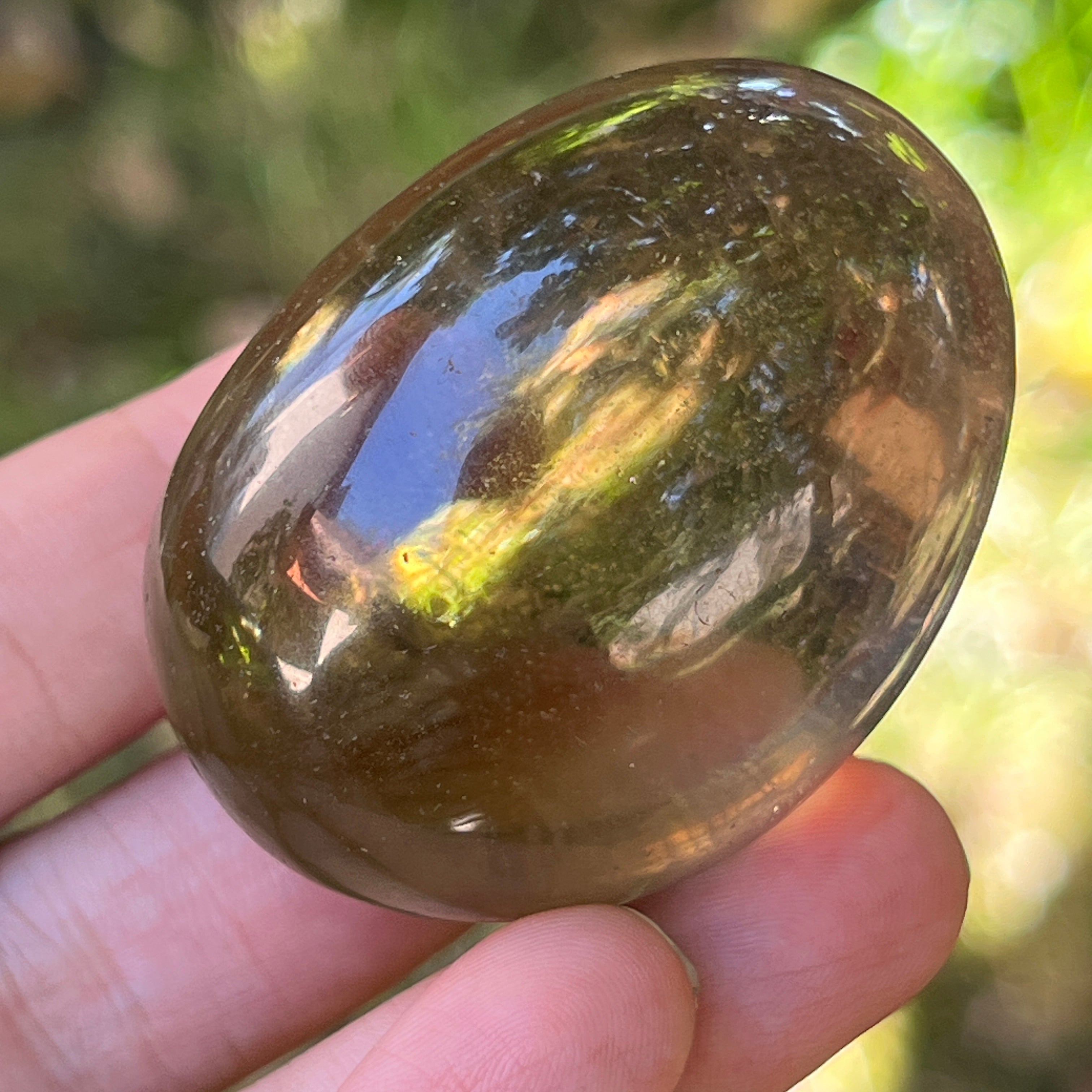 Gondosan formázva, hogy tökéletesen illeszkedjen a tenyerébe, ez a füstkvarc tenyérkő nem csupán egy kő – a mindennapi forgatag közepén egy támaszpont. Földi árnyalataival, a világosbarntól a mélyebb tónusokig, a füstkvarc magában hordozza az ősi sziklák nyugalmát és a hegyek türelmét.