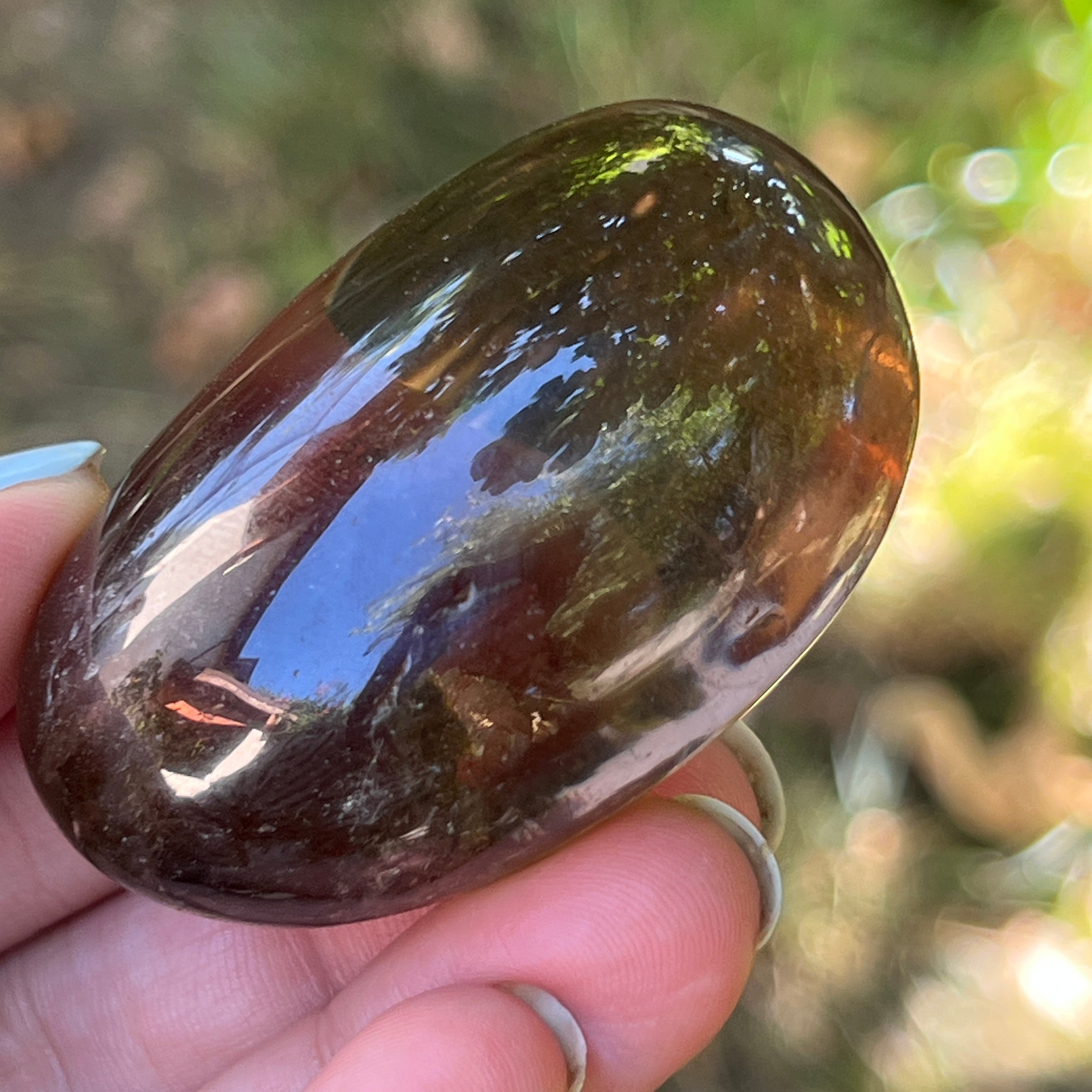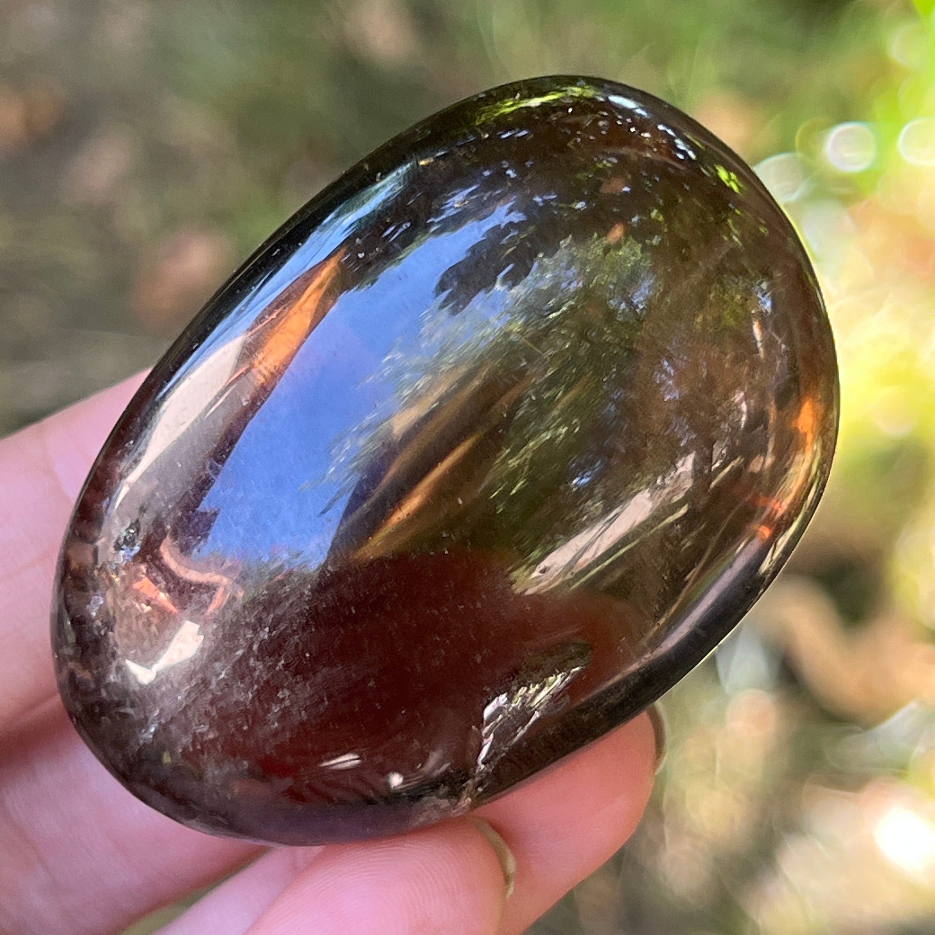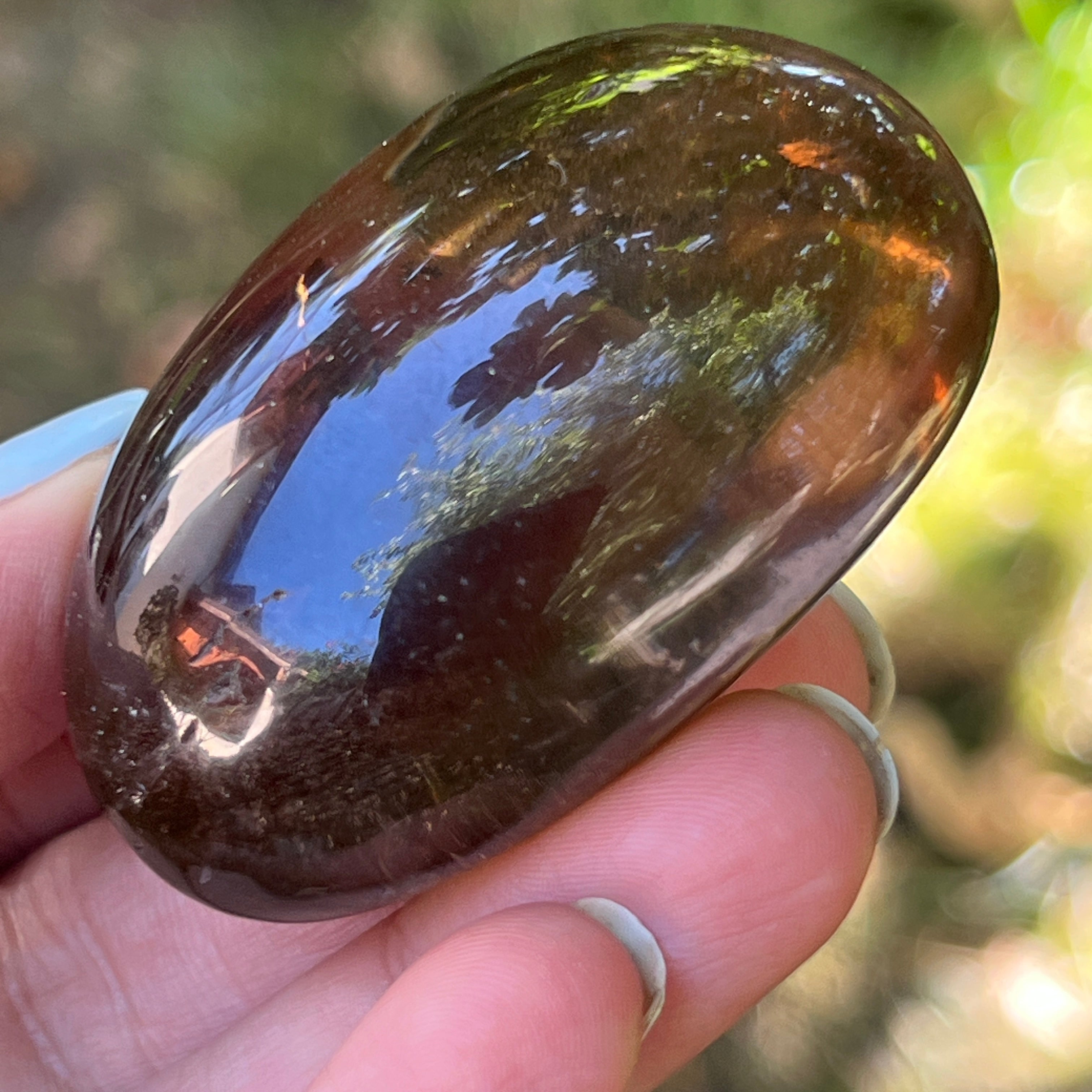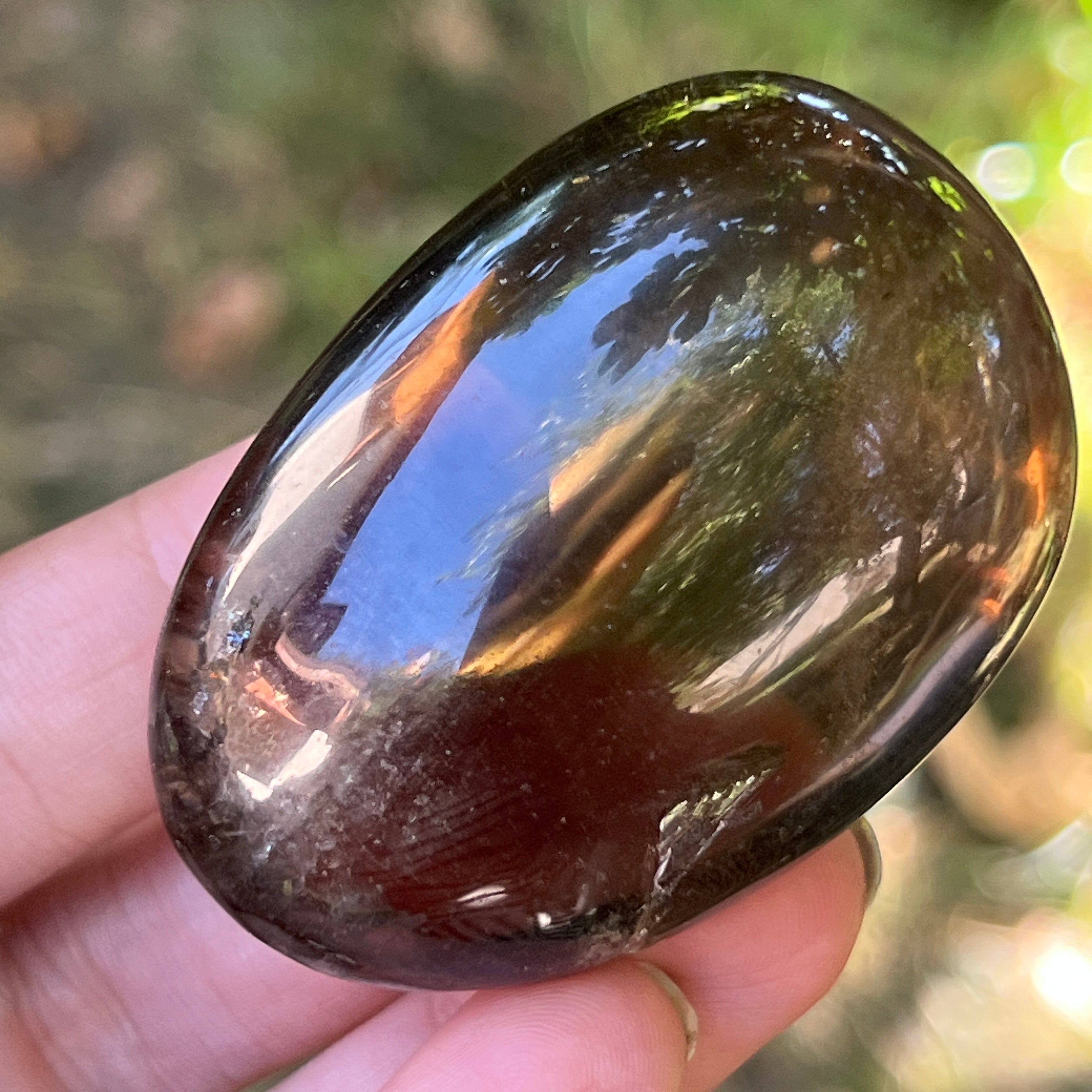 Gondosan formázva, hogy tökéletesen illeszkedjen a tenyérbe, ez a füstkvarc tenyérkő nem csupán egy kő – a mindennapok forgatagában támaszt nyújt. Földes árnyalataival, a félig áttetsző barnától a mélyebb tónusokig, a füstkvarc magában hordozza az ősi sziklák nyugalmát és a hegyek türelmét.