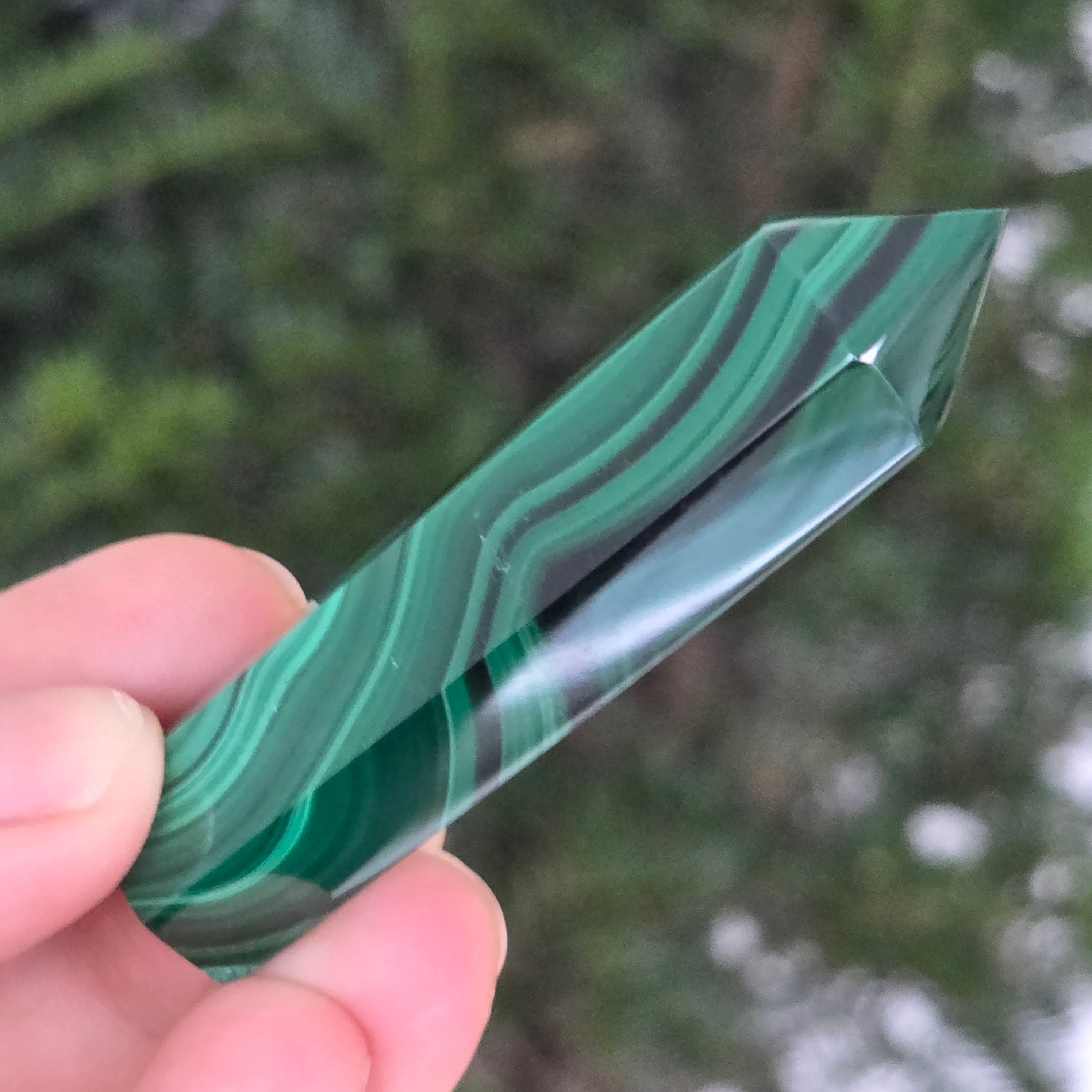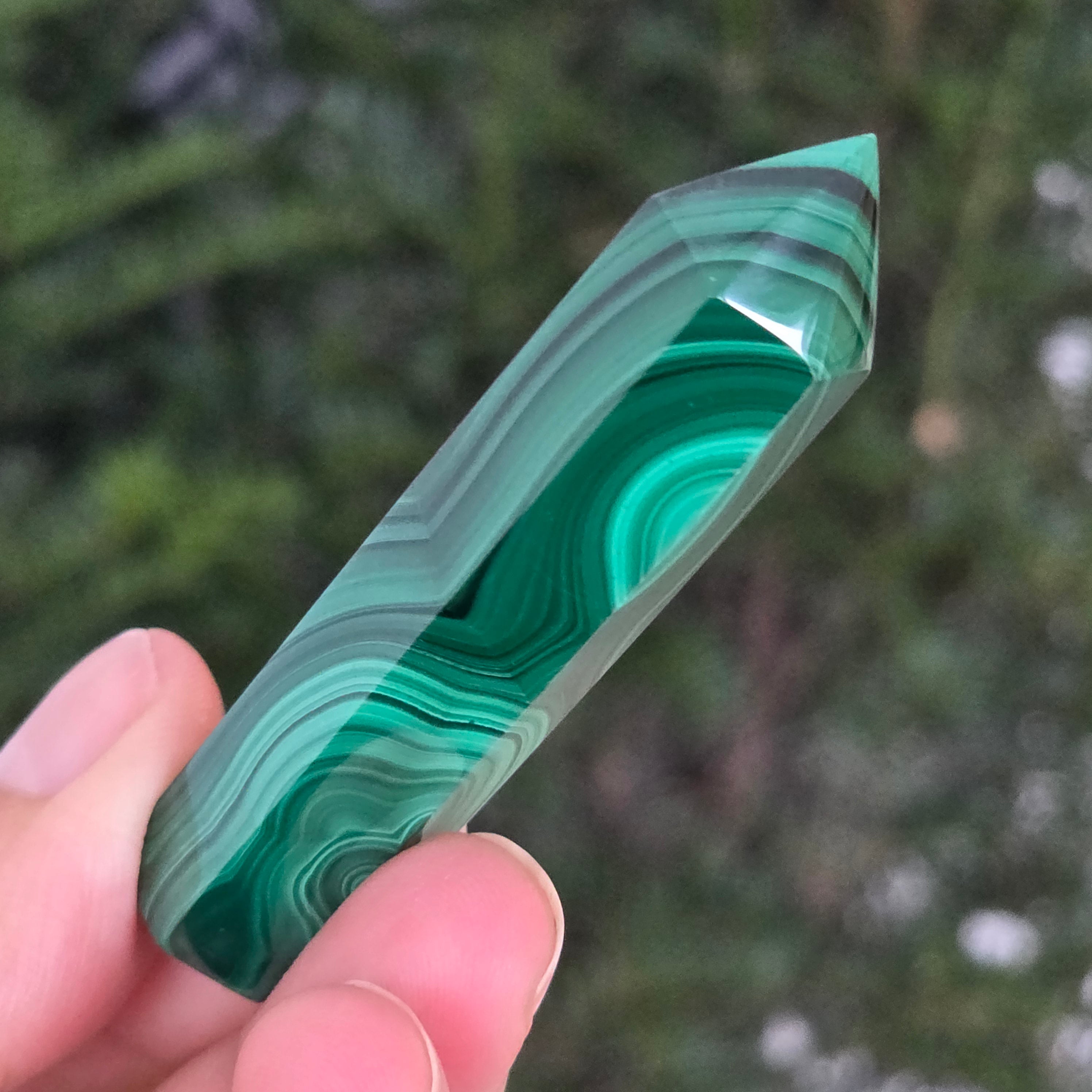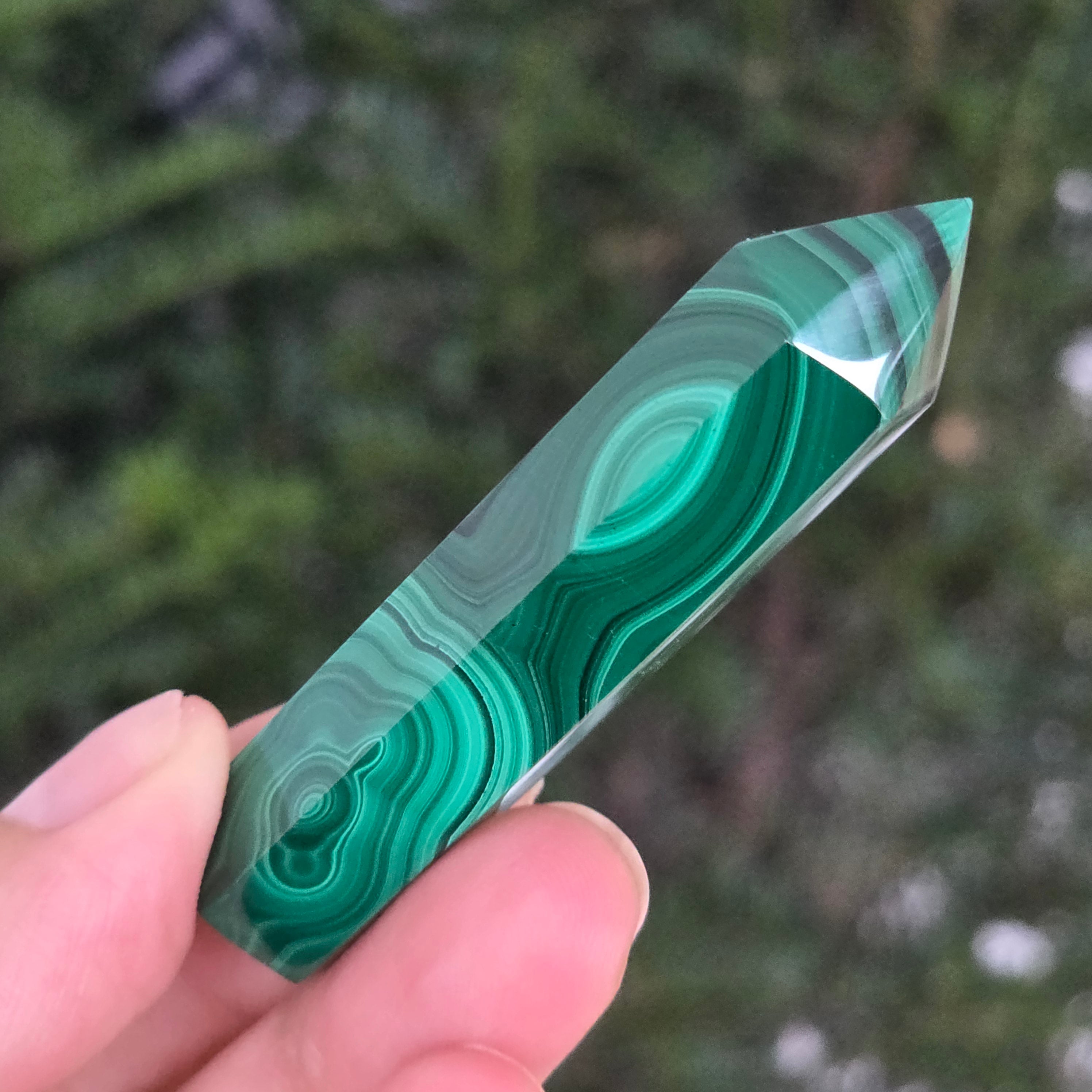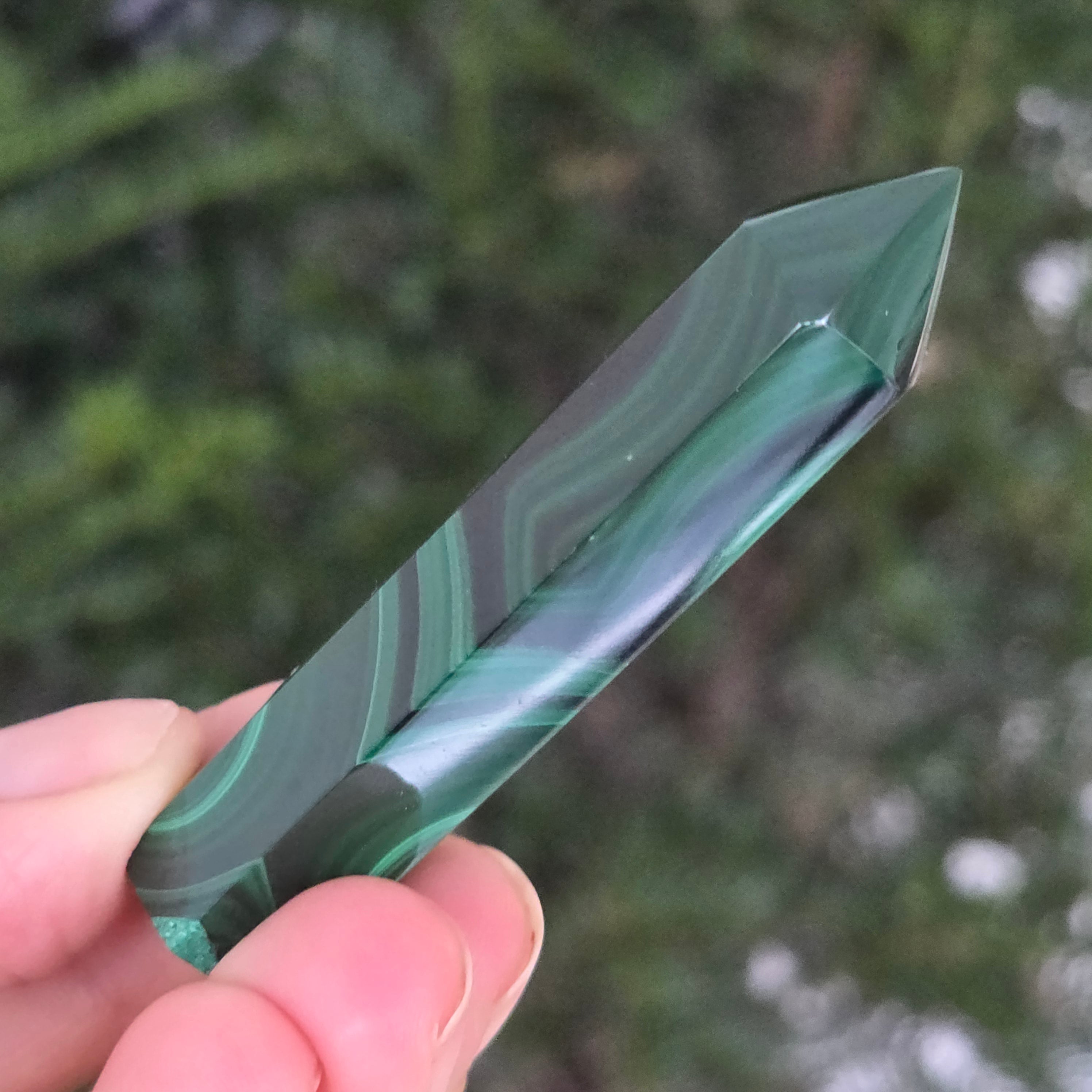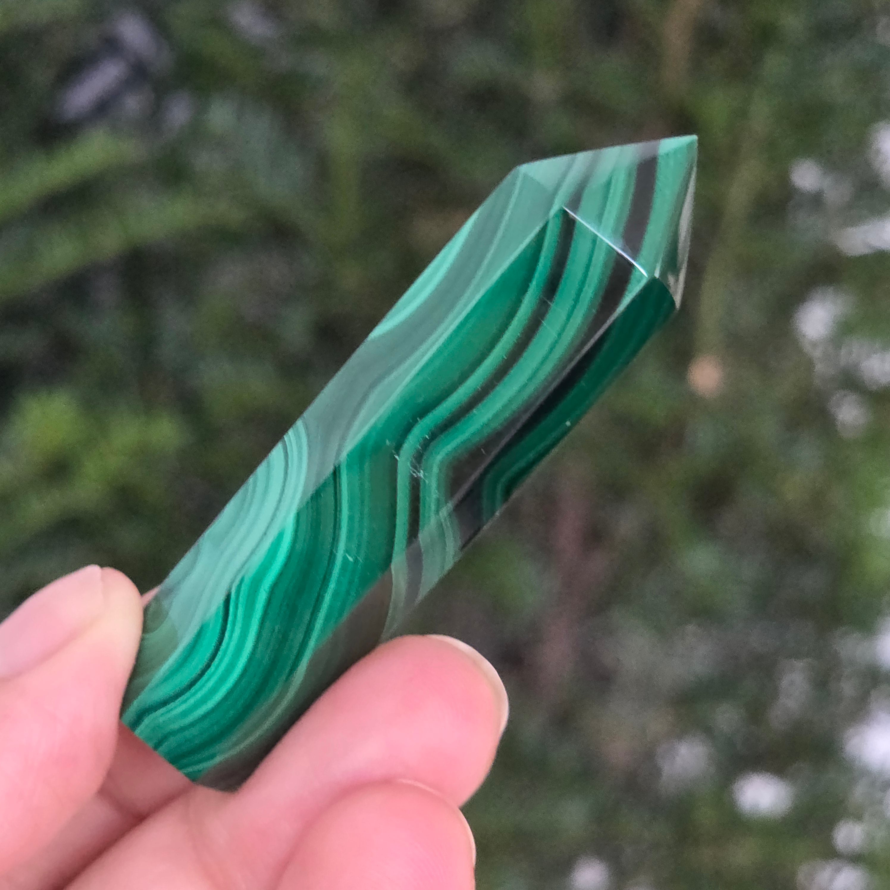 Egy obeliszk, amely úgy tűnik, mintha a bolygó zöld mélységeiből éledt volna. Ez az egyedi darab természetes malachitbóllenyűgöző smaragdzöld, sötétzöld és selymes jáde árnyalatait tárja fel, amelyek egyedülálló koncentrikus mintákban rendeződnek, mint a belső energiák térképei. Kézzel polírozva bársonyos ragyogásig, az obeliszk mély ásványi eleganciát sugároz.