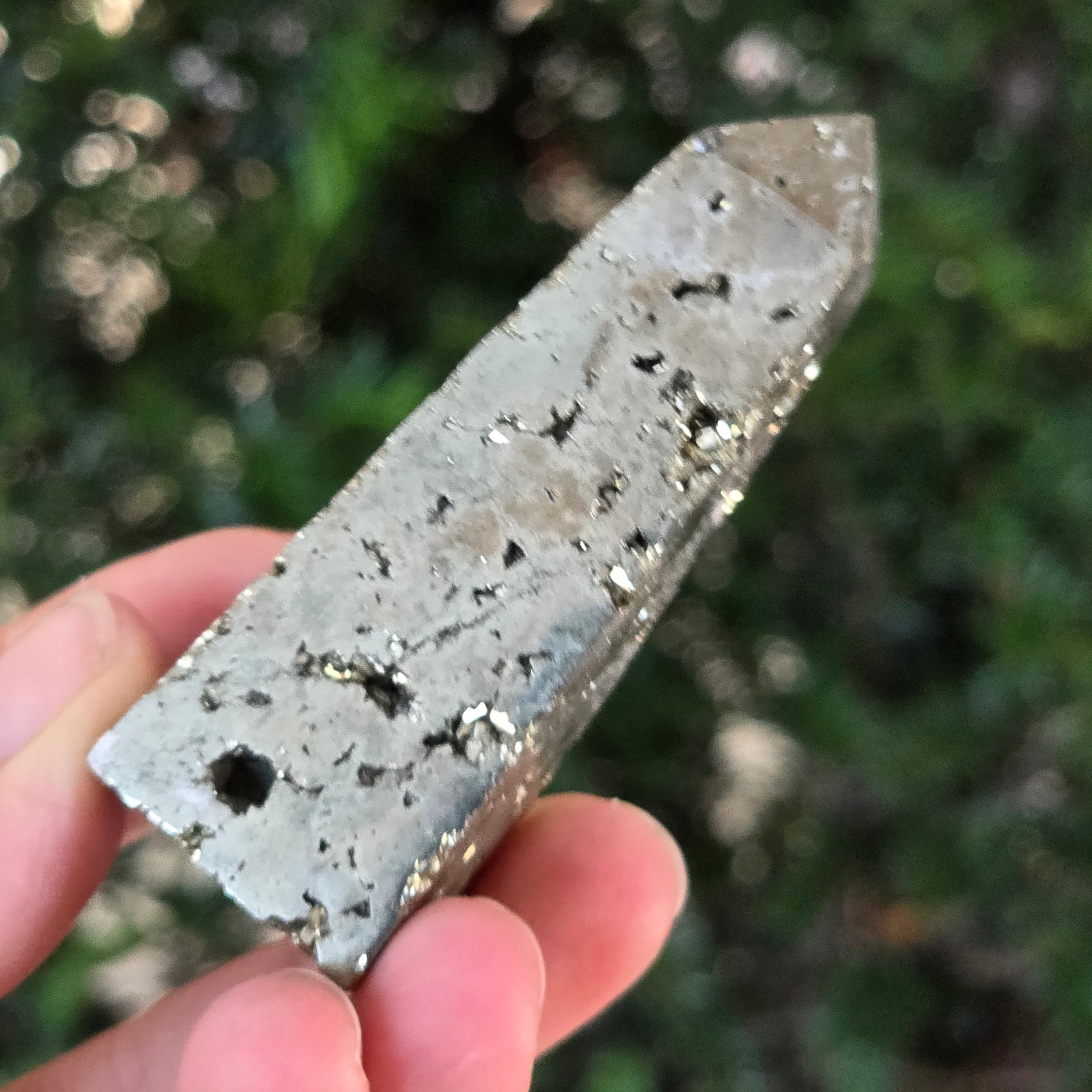 Az obeliszk a perui pirit erőt, bőséget és lelki tisztaságot áraszt. Minden arany tükröződés a tudat fényére és a szándékokat valósággá alakító belső erőre emlékeztet. Látványos darab, gyűjtőknek és vibráló energiájú dekorációs tárgynak egyaránt alkalmas.