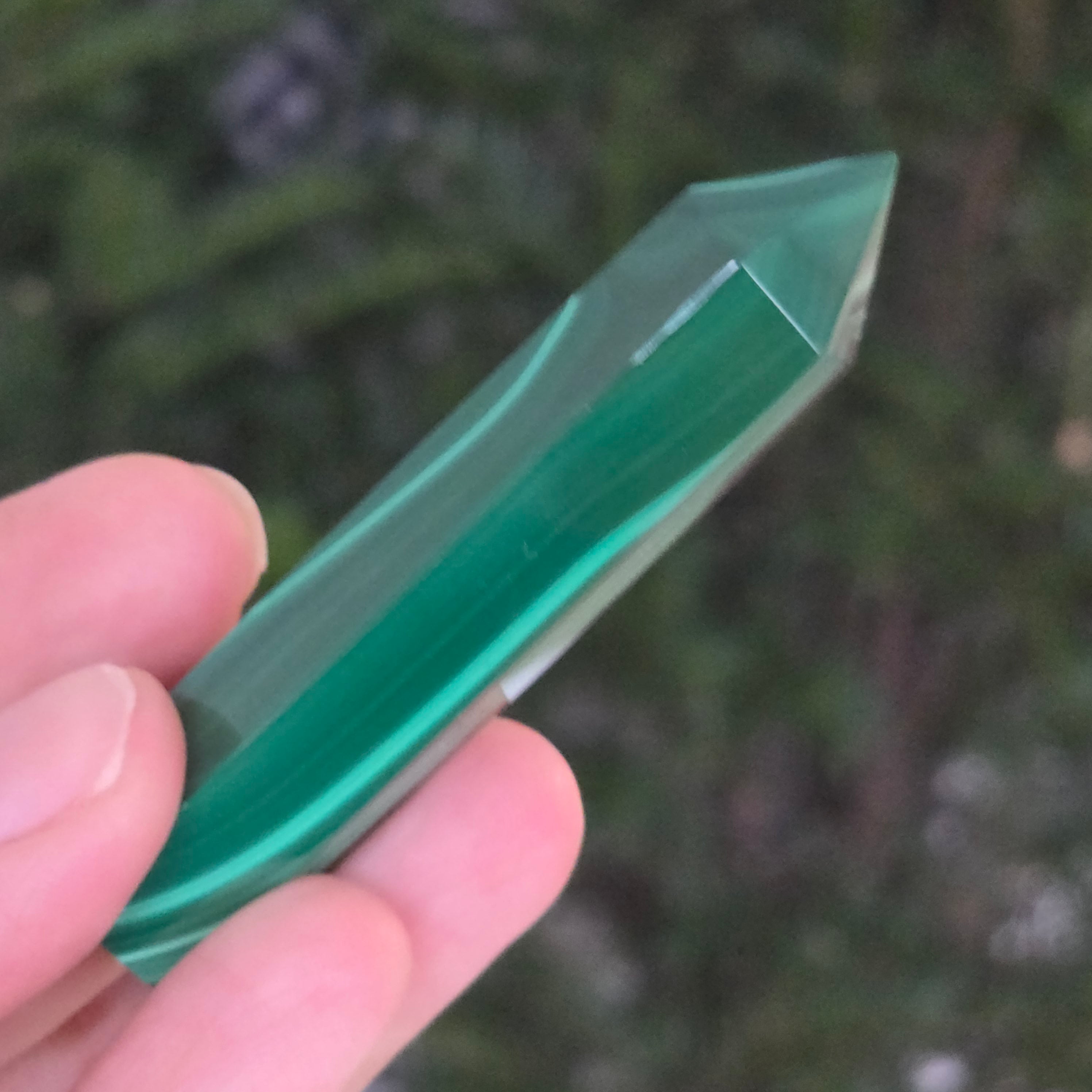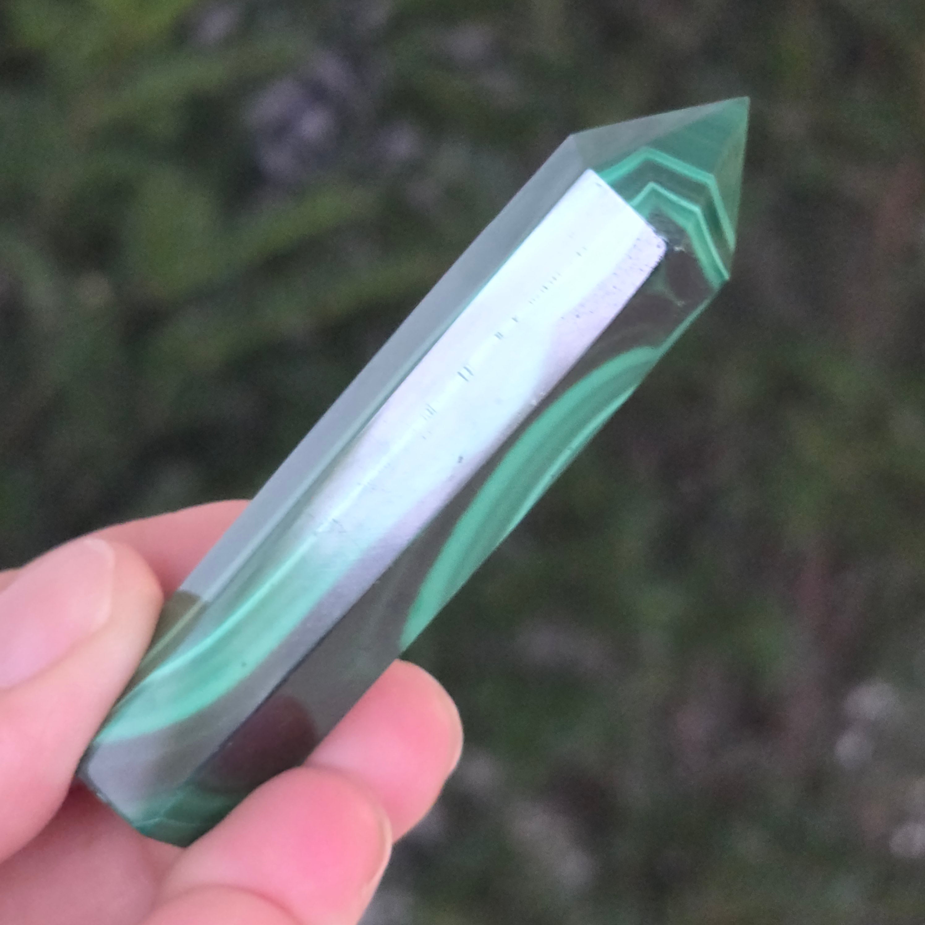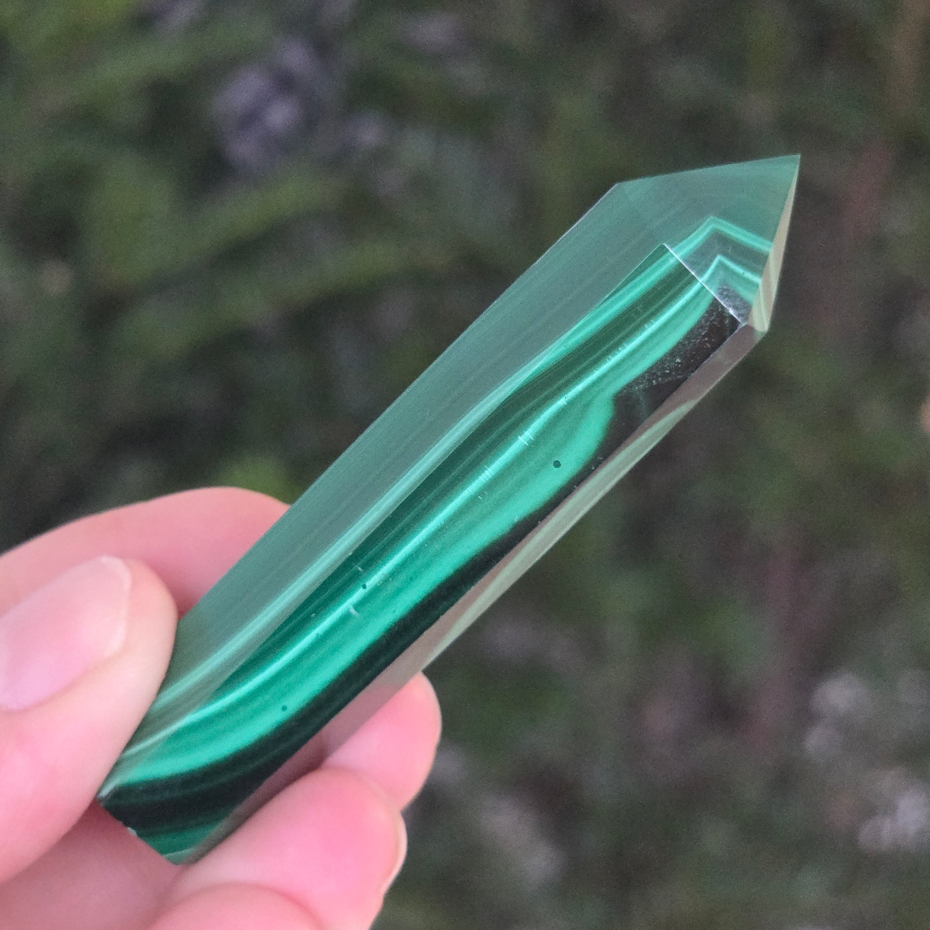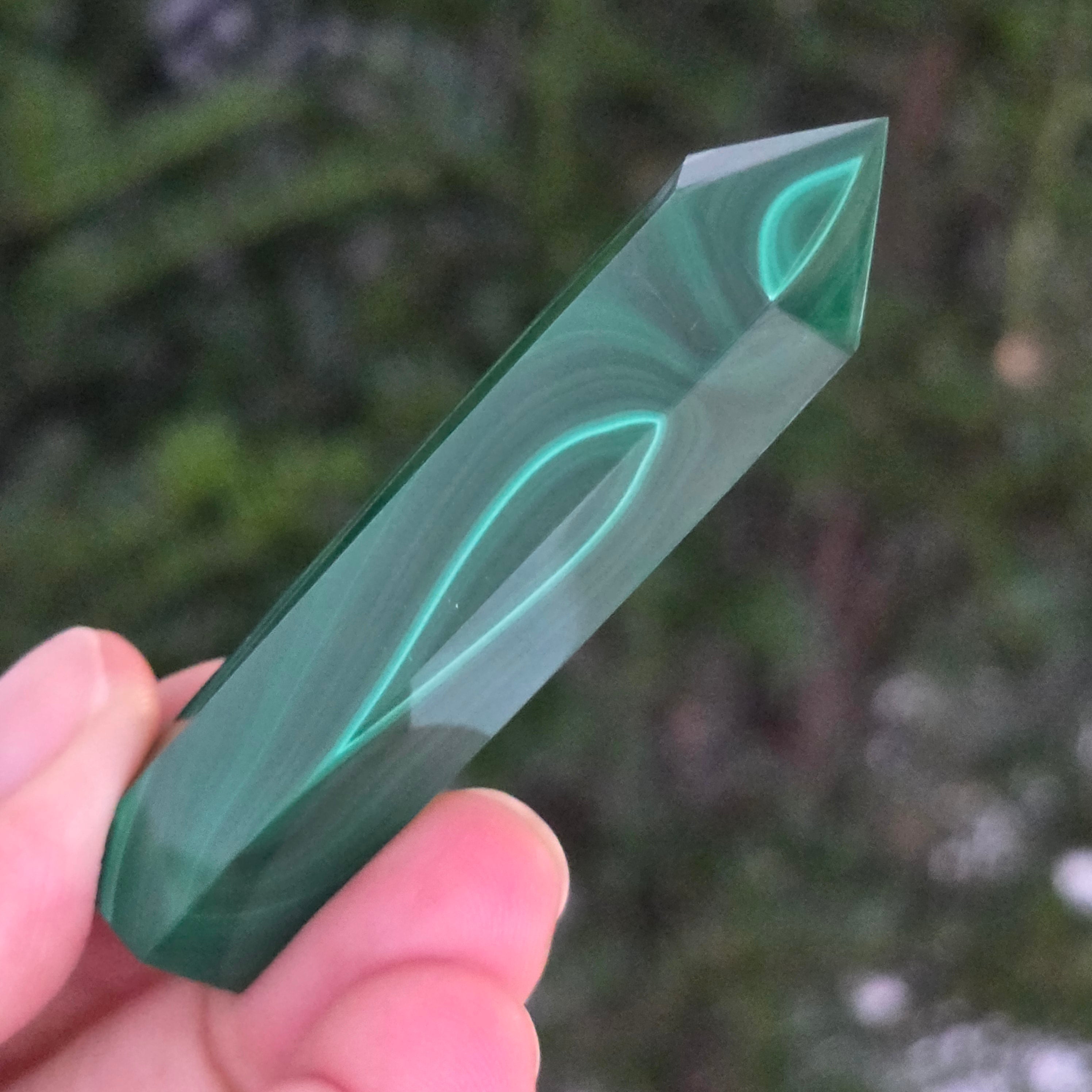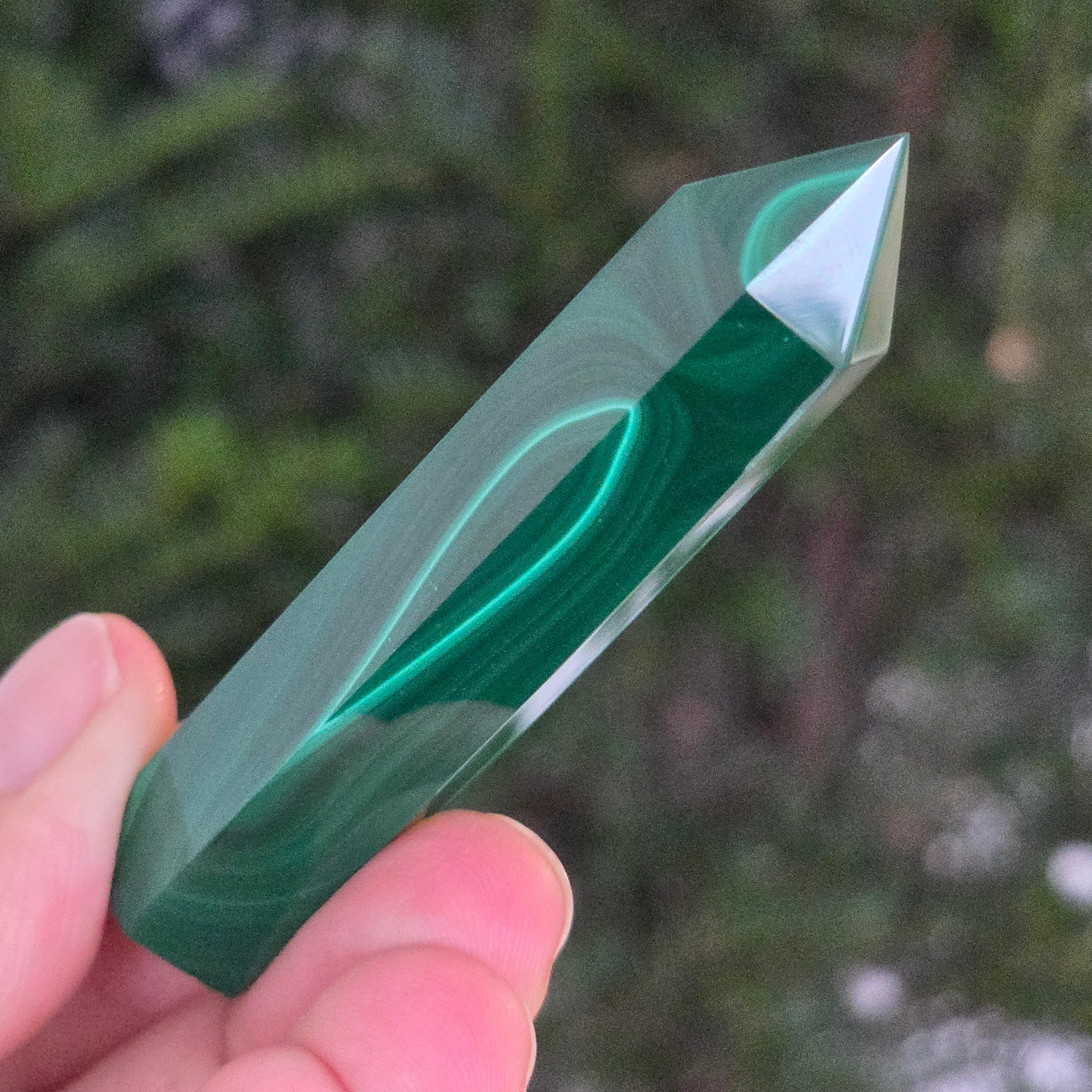Olyan obeliszk, amely mintha életre kelt volna a bolygó zöld mélységeiből. Ez az egyedülálló darab természetes malachitbólelbűvölő smaragd zöld, sötétzöld és selymes jáde árnyalatokat tár fel, amelyek egyedi koncentrikus mintákban rendeződnek, mint a belső energiák térképei. Kézzel polírozva, bársonyos fényűre, az obeliszk mély ásványi eleganciát sugároz.