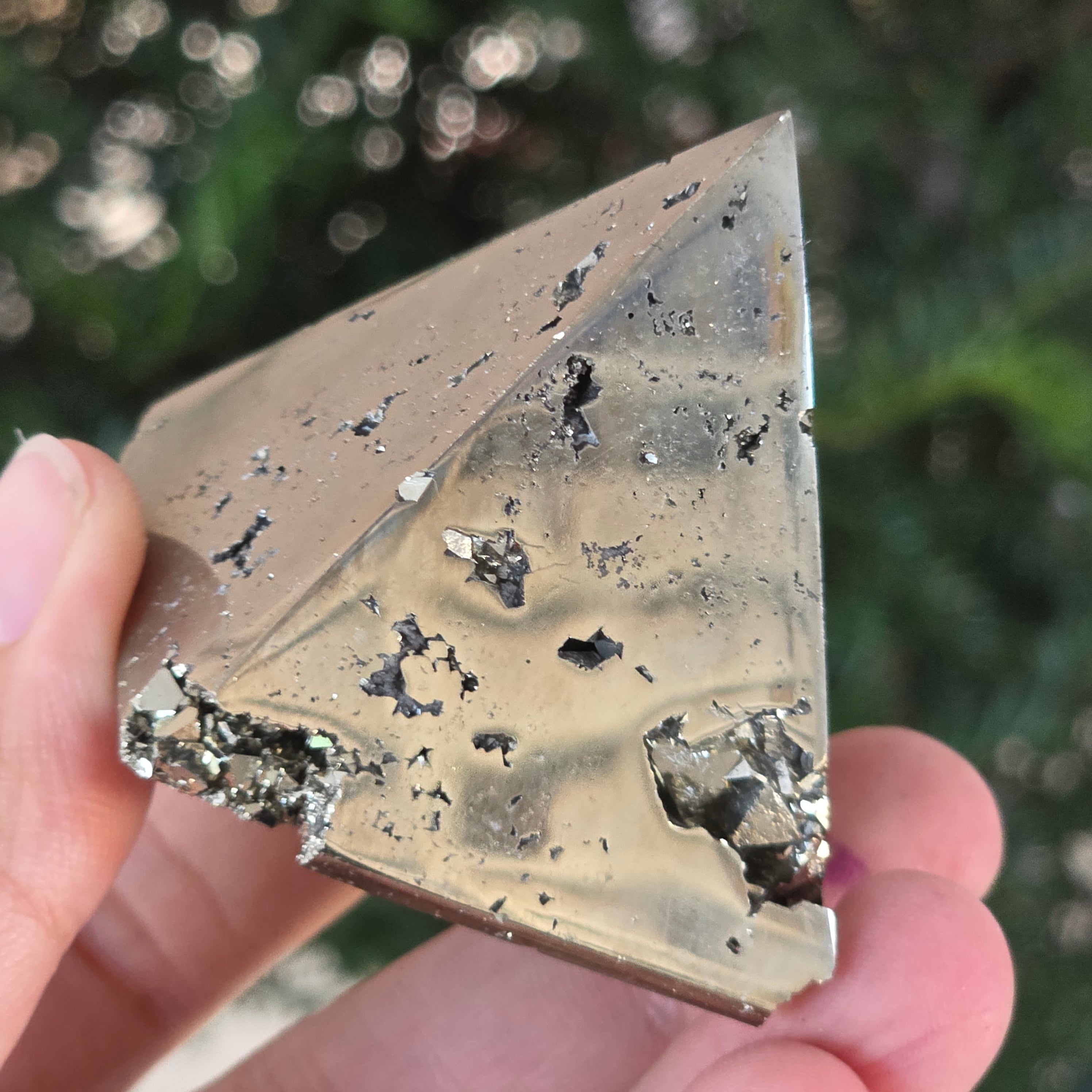 A piramis perui pirit erőt, bőséget és lelki tisztaságot áraszt. Minden arany tükröződés a tudat fényére és a szándékokat valósággá alakító belső erőre emlékeztet. Látványos darab, gyűjtőknek és vibráló energiájú dekorációs tárgynak egyaránt alkalmas.