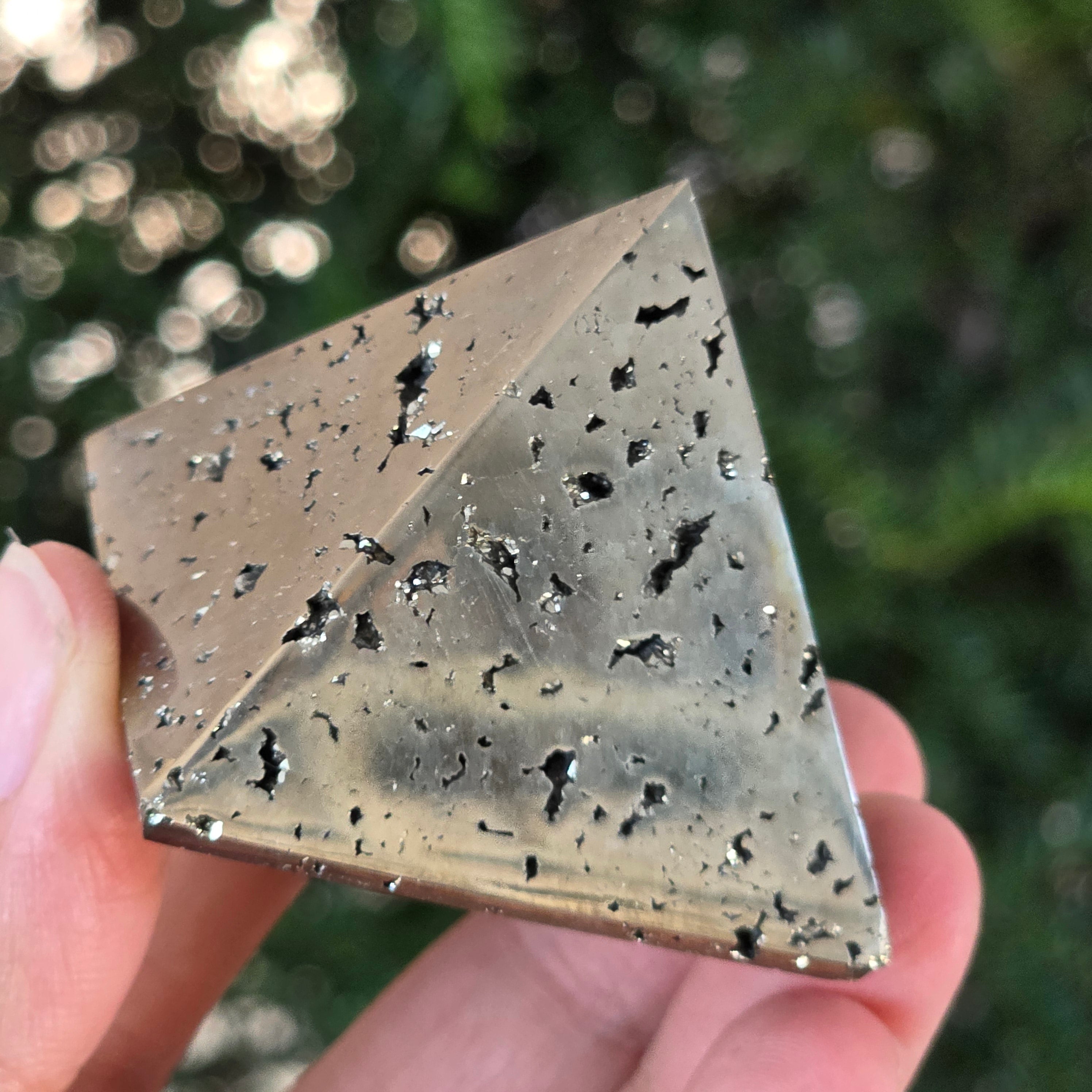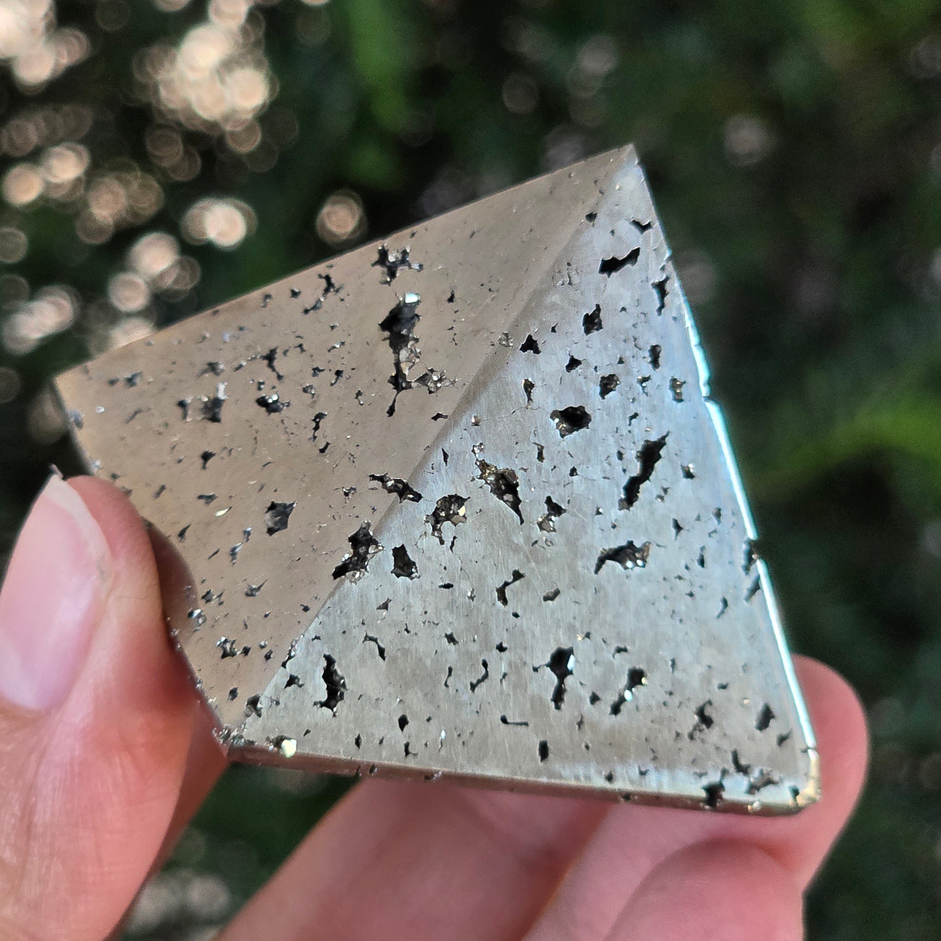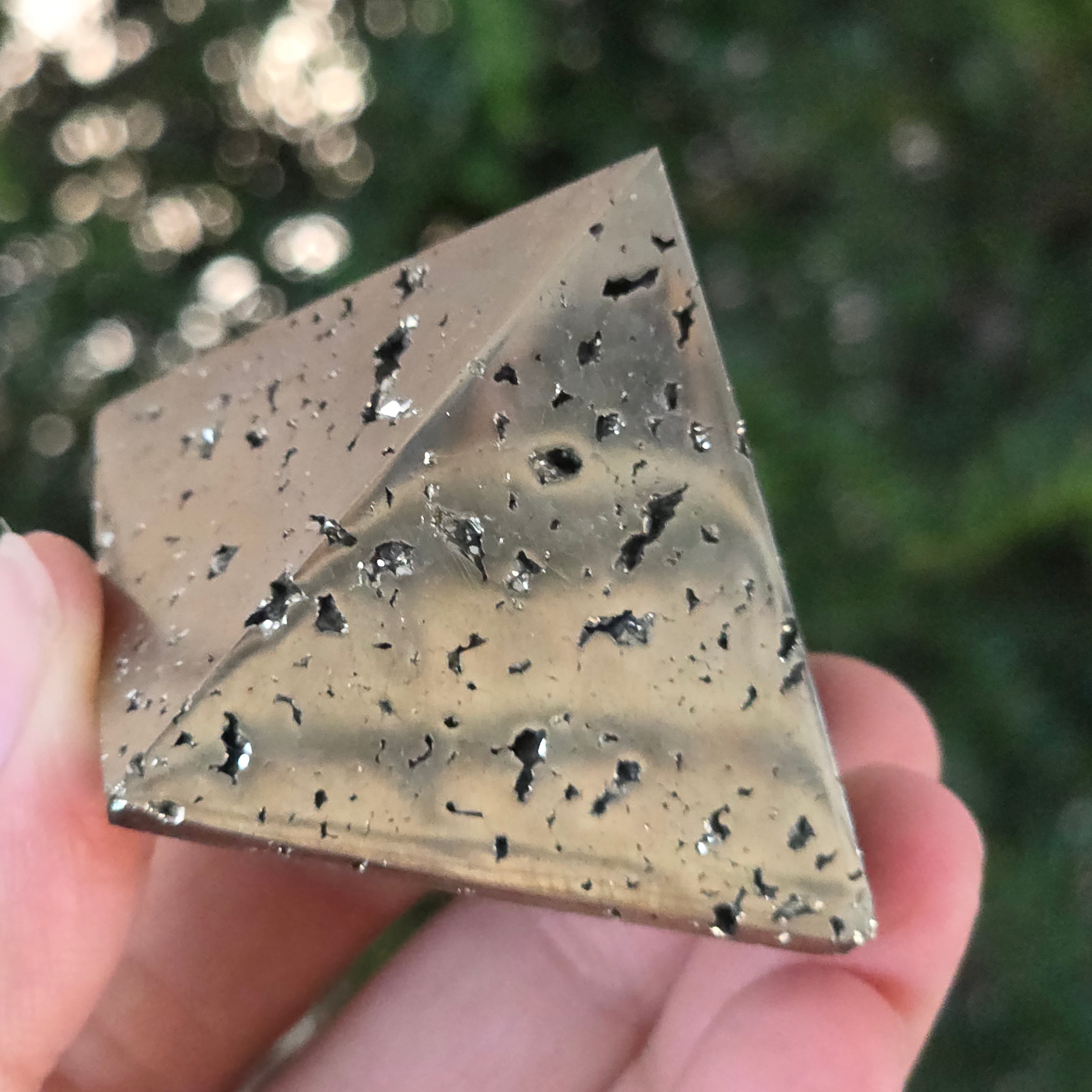 A piramis perui pirit erőt, bőséget és lelki tisztaságot áraszt. Minden arany tükröződés a tudat fényére és a szándékokat valósággá alakító belső erőre emlékeztet. Látványos darab, gyűjtőknek és vibráló energiájú dekorációs tárgynak egyaránt alkalmas.
