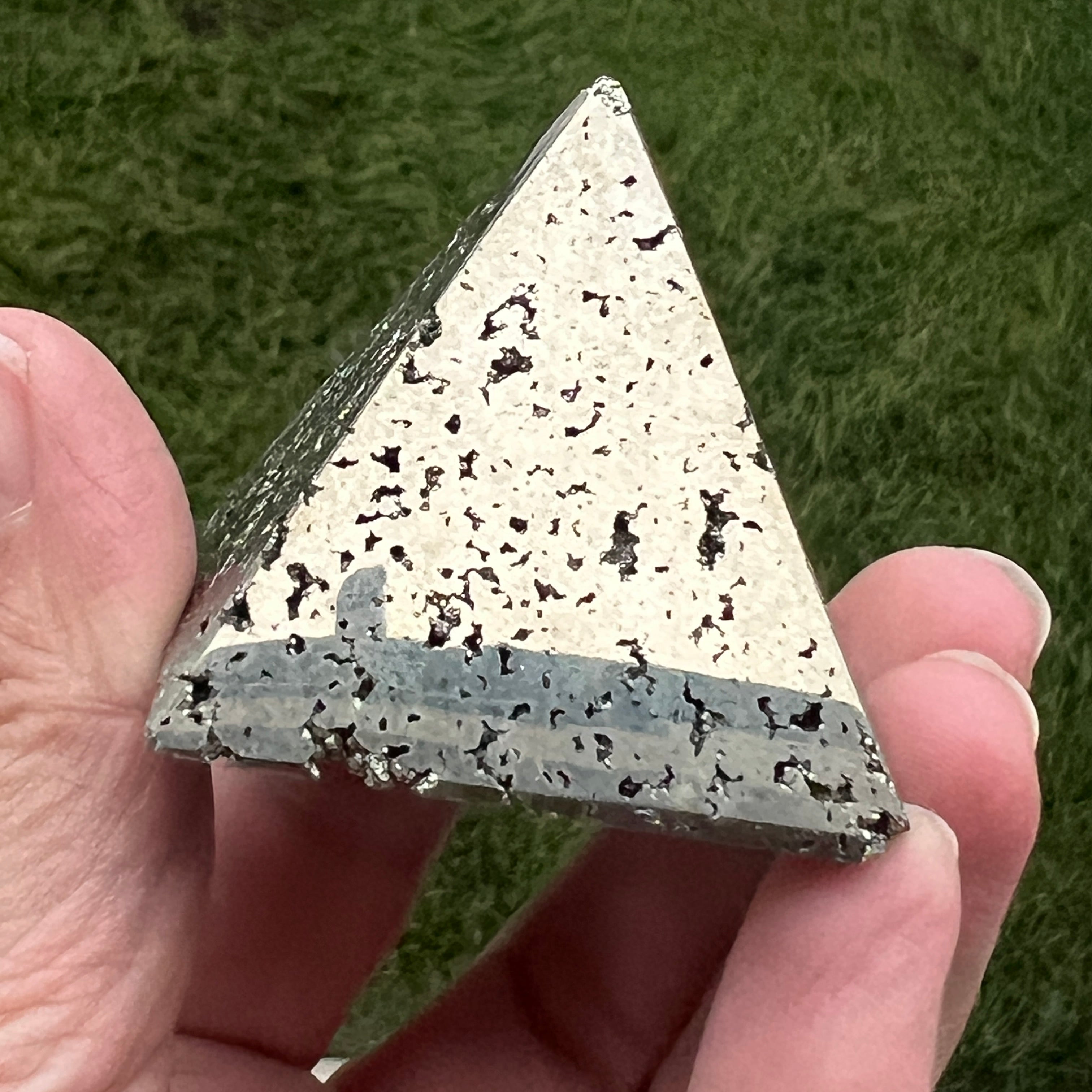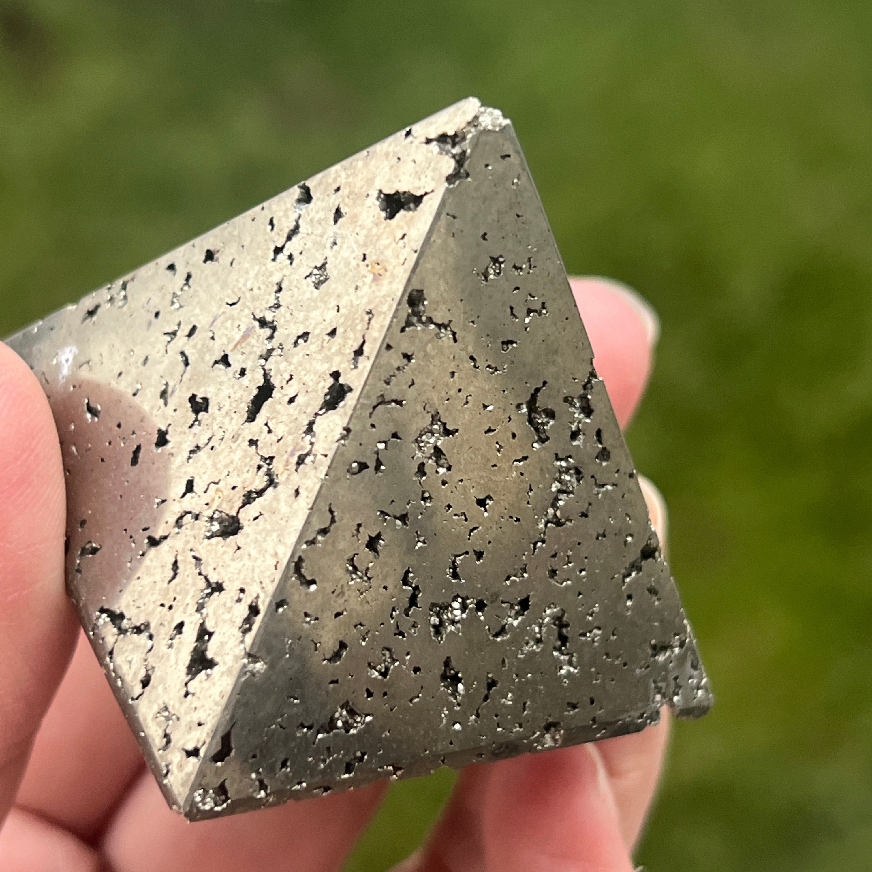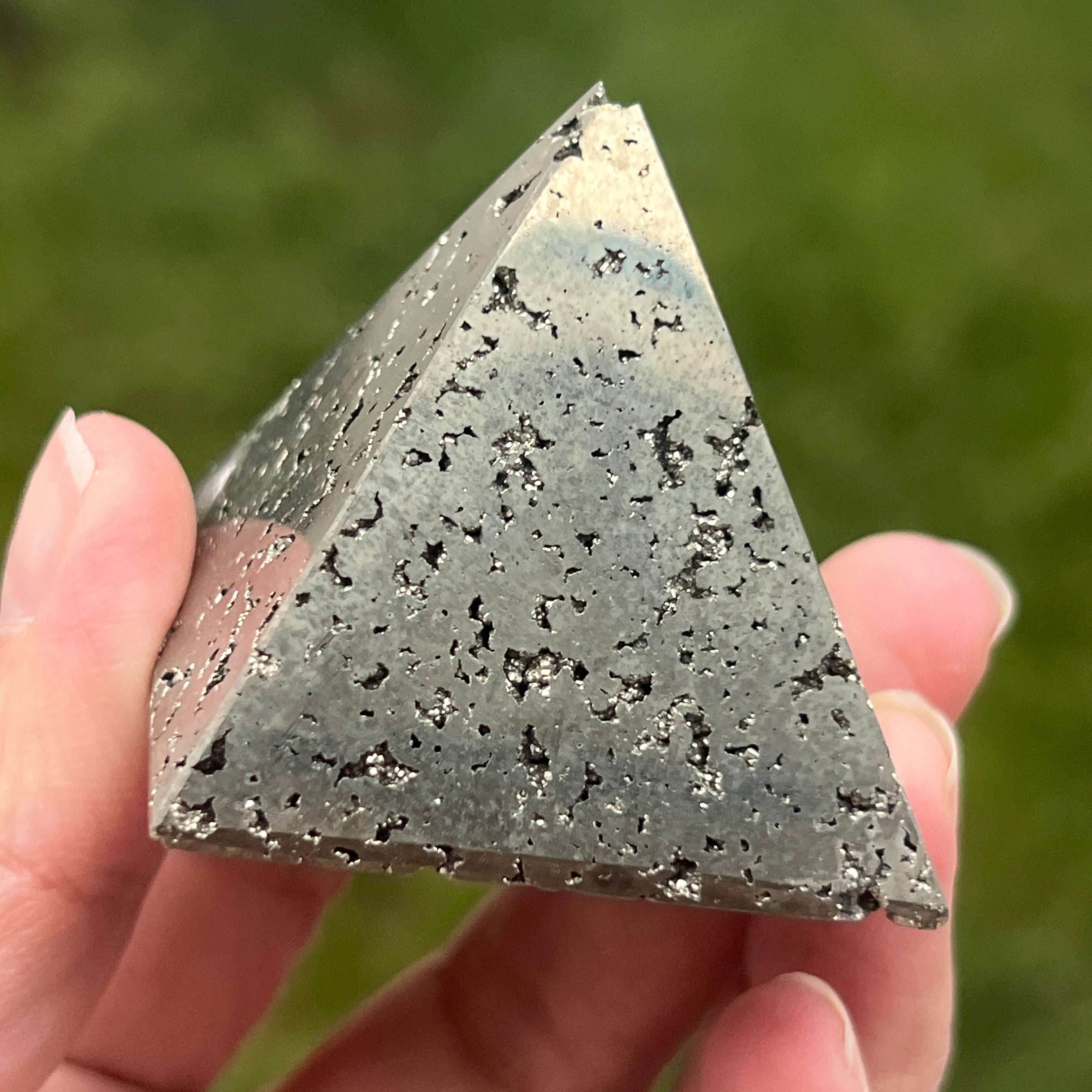A piramis perui pirit erőt, bőséget és lelki tisztaságot áraszt. Minden arany tükröződés a tudat fényére és a szándékokat valósággá alakító belső erőre emlékeztet. Látványos darab, gyűjtőknek és vibráló energiájú dekorációs tárgynak egyaránt alkalmas.