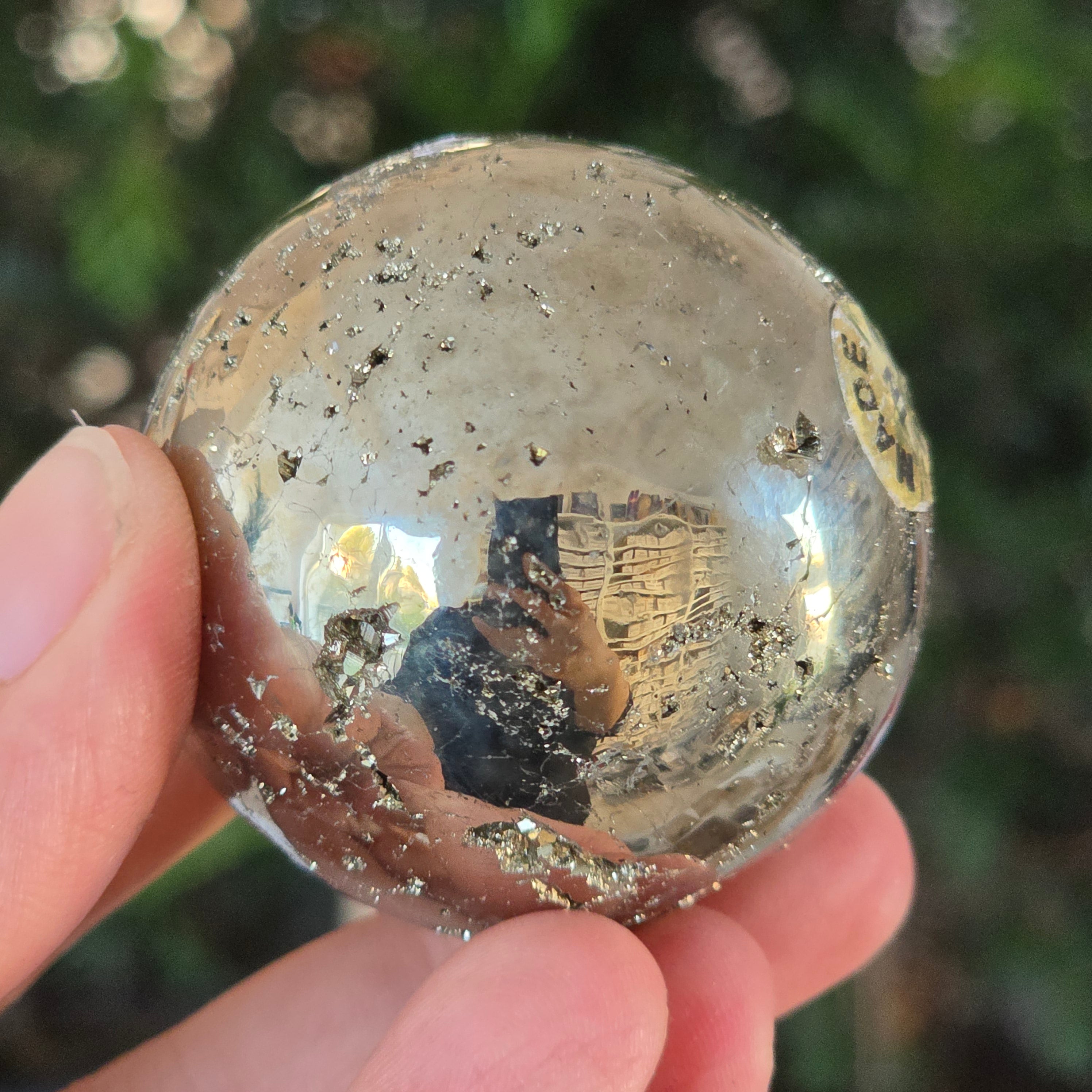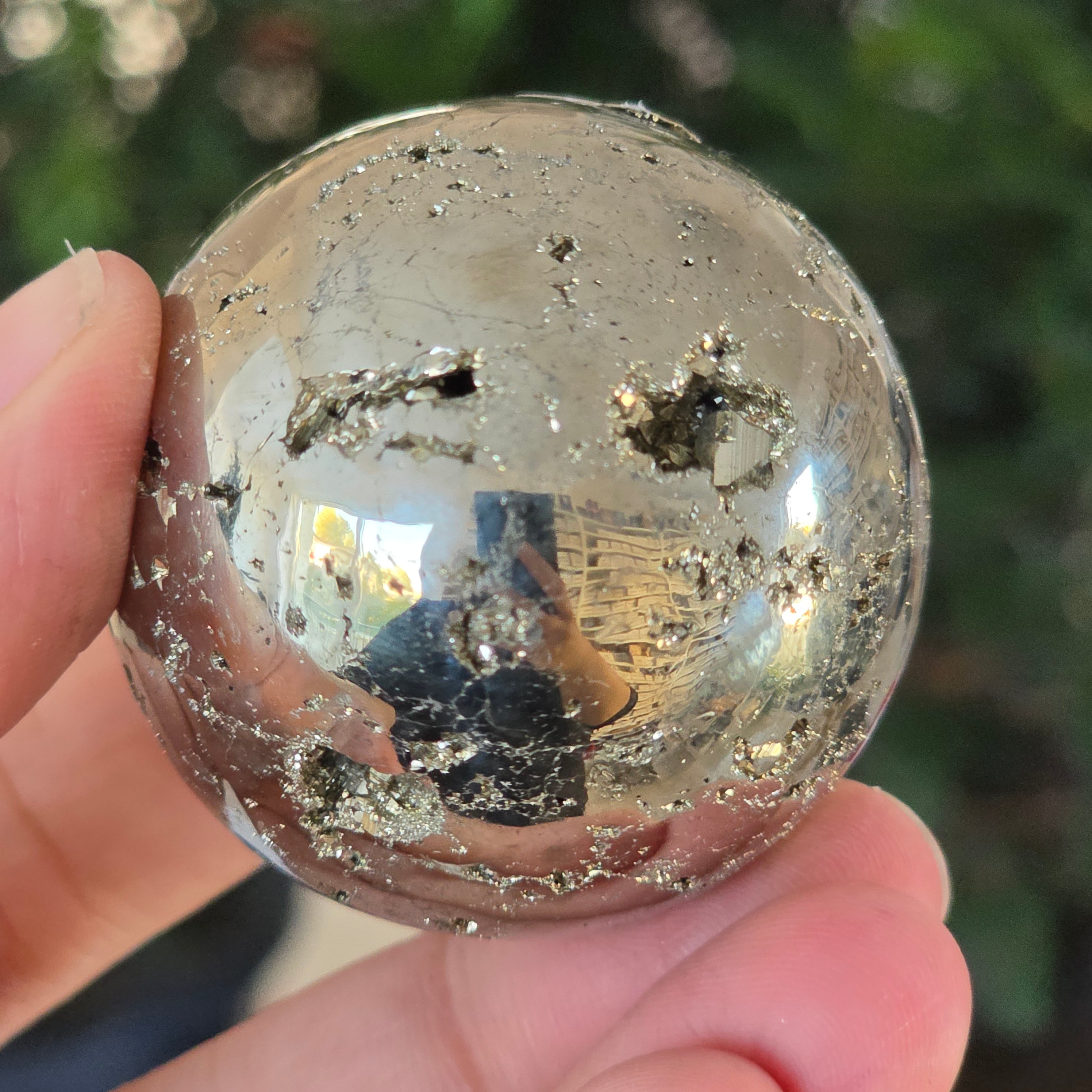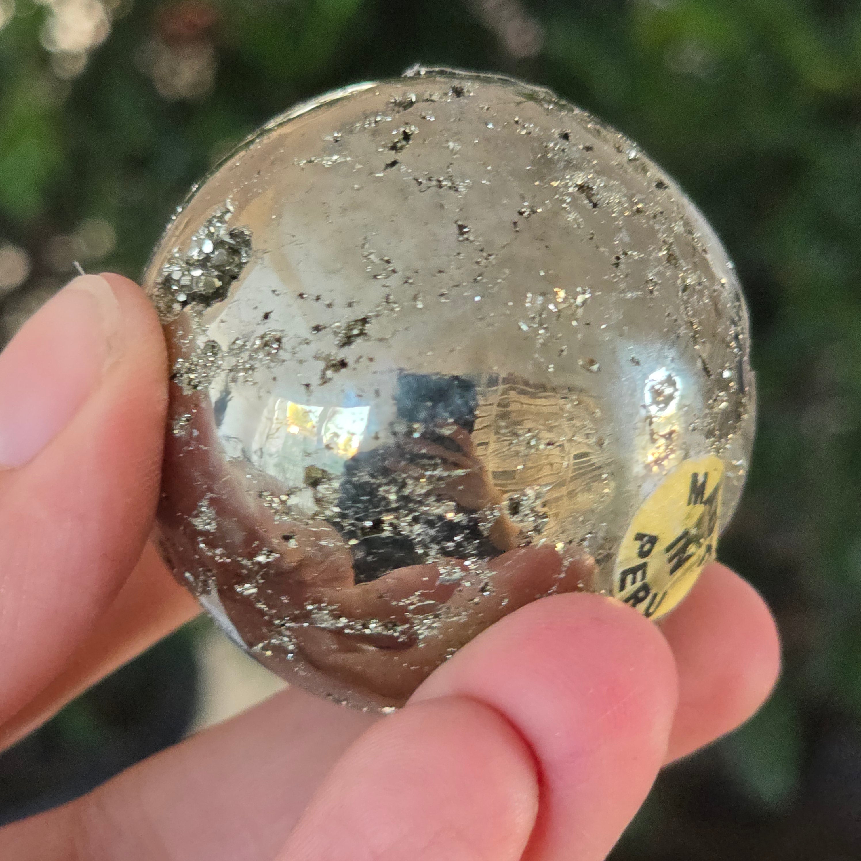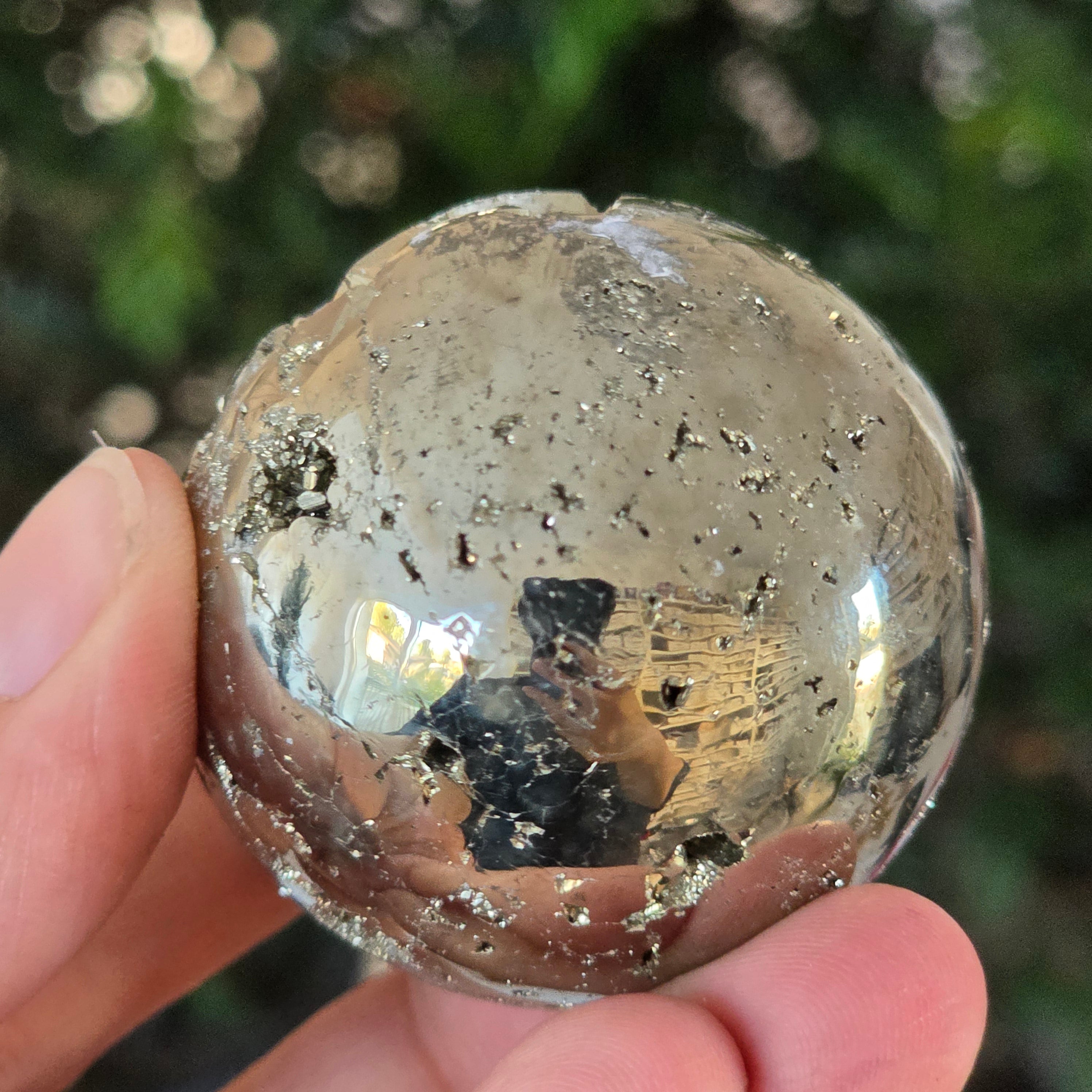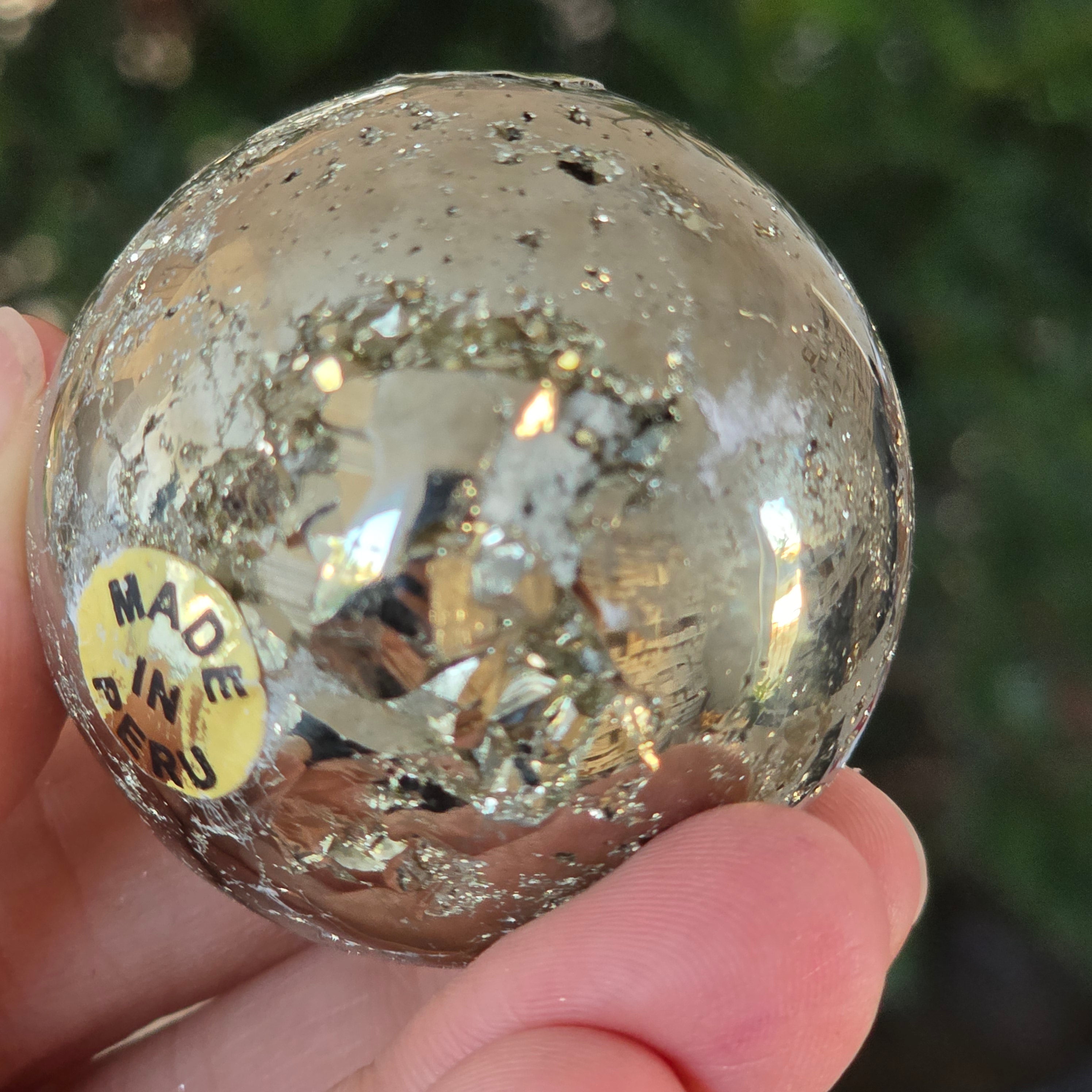 Sphere from perui pirit erőt, bőséget és lelki tisztaságot áraszt. Minden arany tükröződés a tudat fényére és a szándékokat valósággá alakító belső erőre emlékeztet. Látványos darab, gyűjtőknek és vibráló energiájú dekorációs tárgynak egyaránt alkalmas.