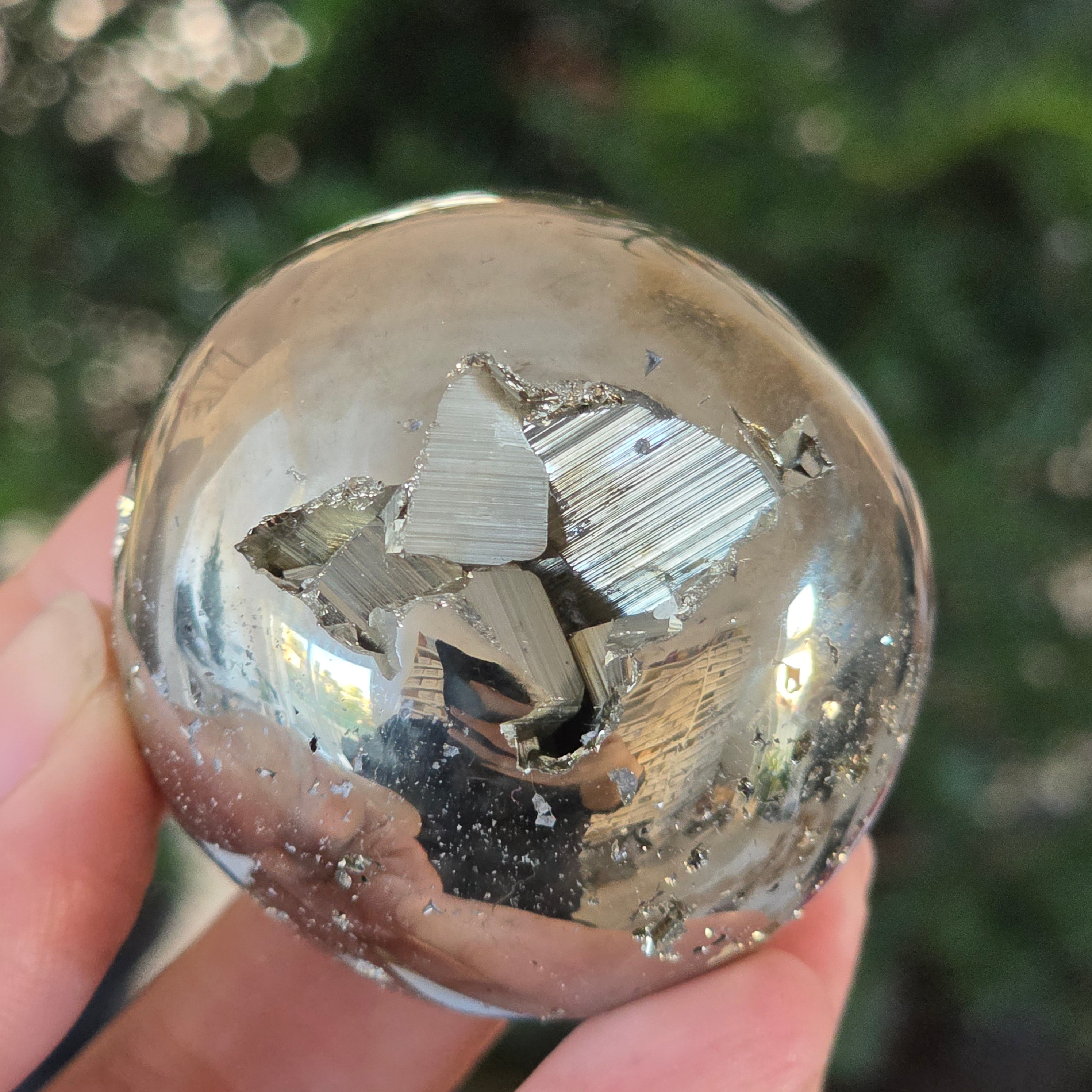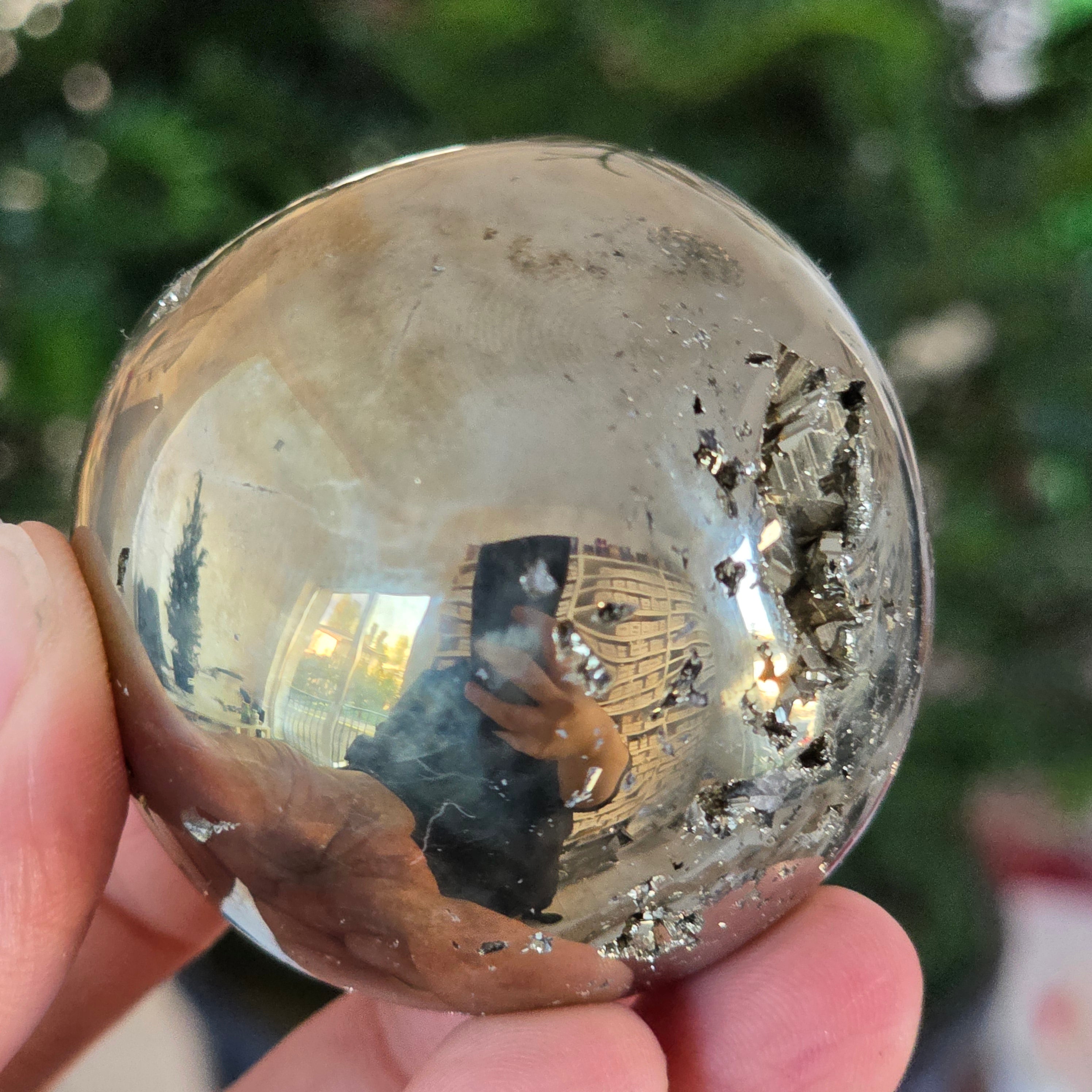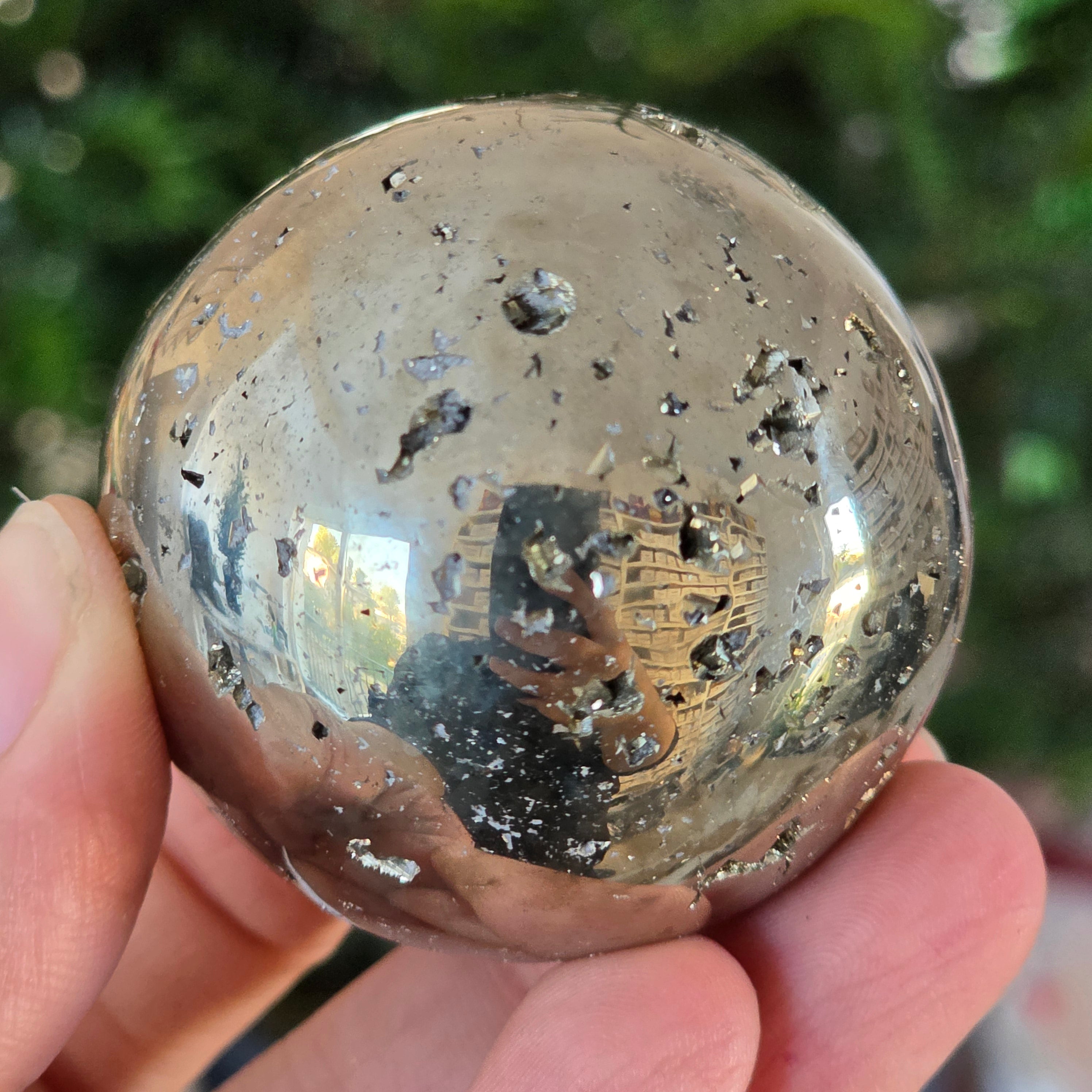 Sphere from perui pirit erőt, bőséget és lelki tisztaságot áraszt. Minden arany tükröződés a tudat fényére és a szándékokat valósággá alakító belső erőre emlékeztet. Látványos darab, gyűjtőknek és vibráló energiájú dekorációs tárgynak egyaránt alkalmas.