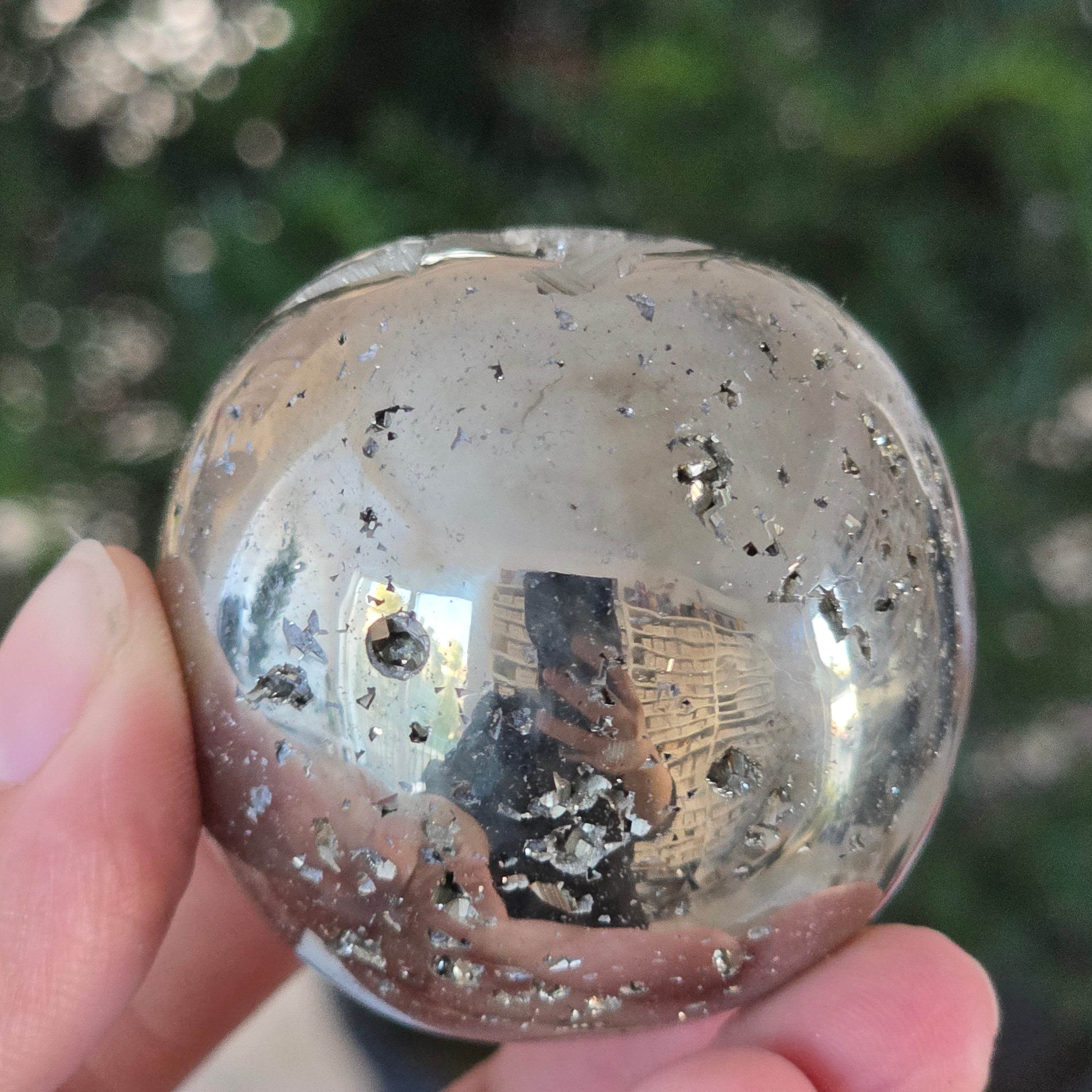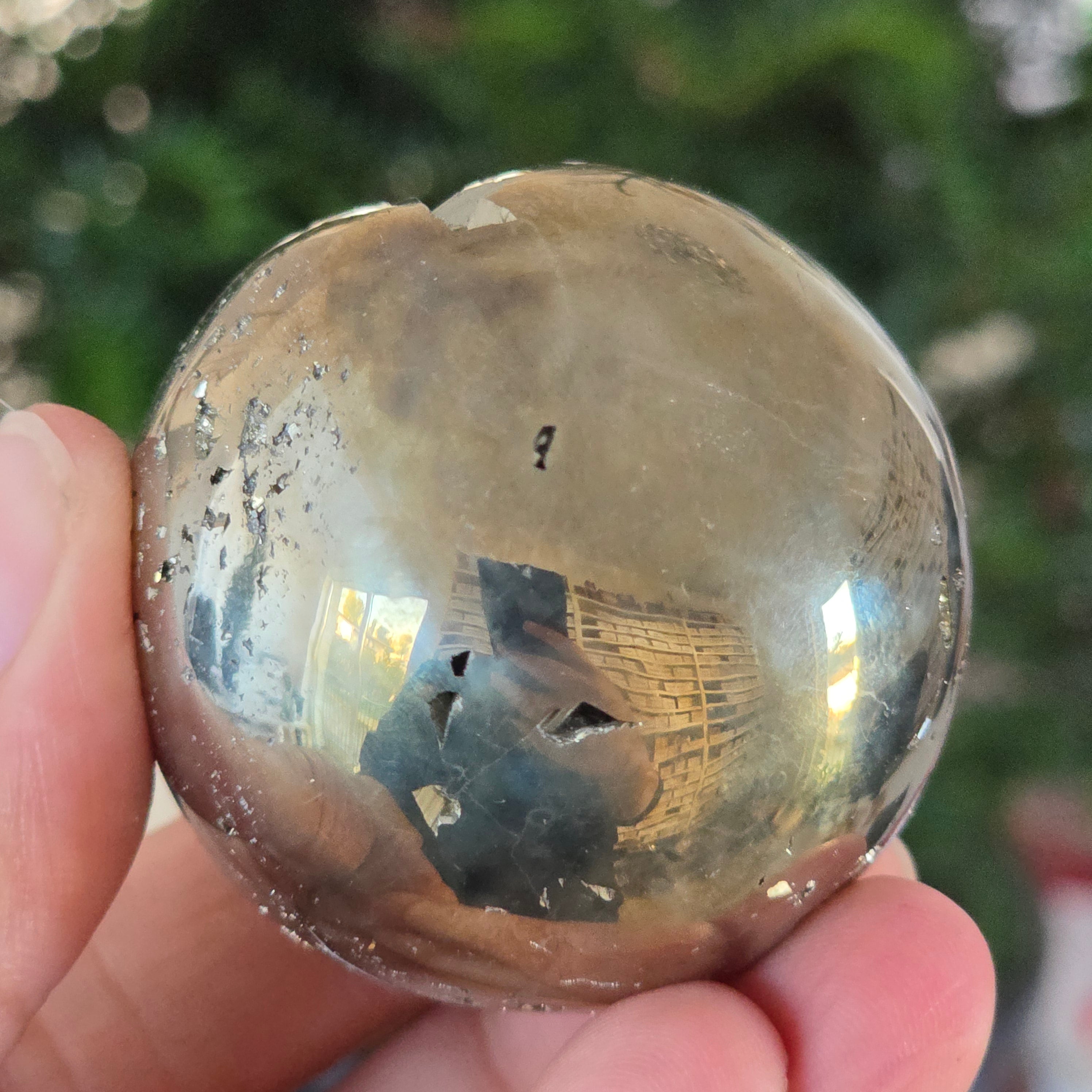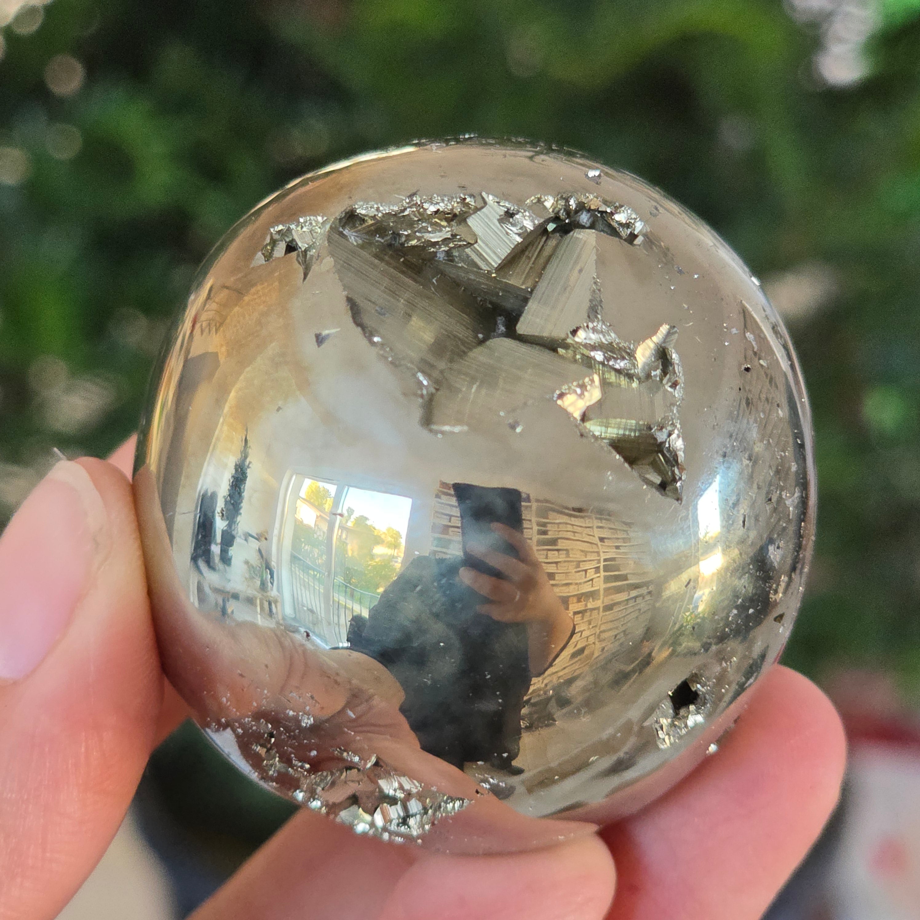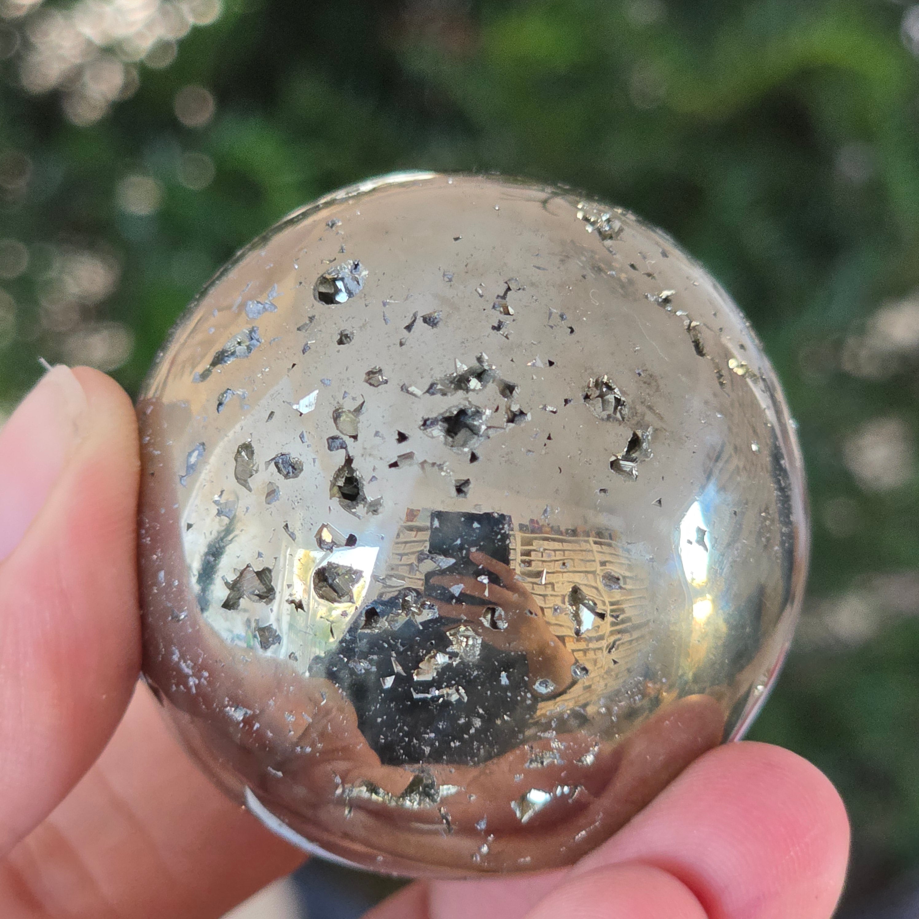 Sphere from perui pirit erőt, bőséget és lelki tisztaságot áraszt. Minden arany tükröződés a tudat fényére és a szándékokat valósággá alakító belső erőre emlékeztet. Látványos darab, gyűjtőknek és vibráló energiájú dekorációs tárgynak egyaránt alkalmas.