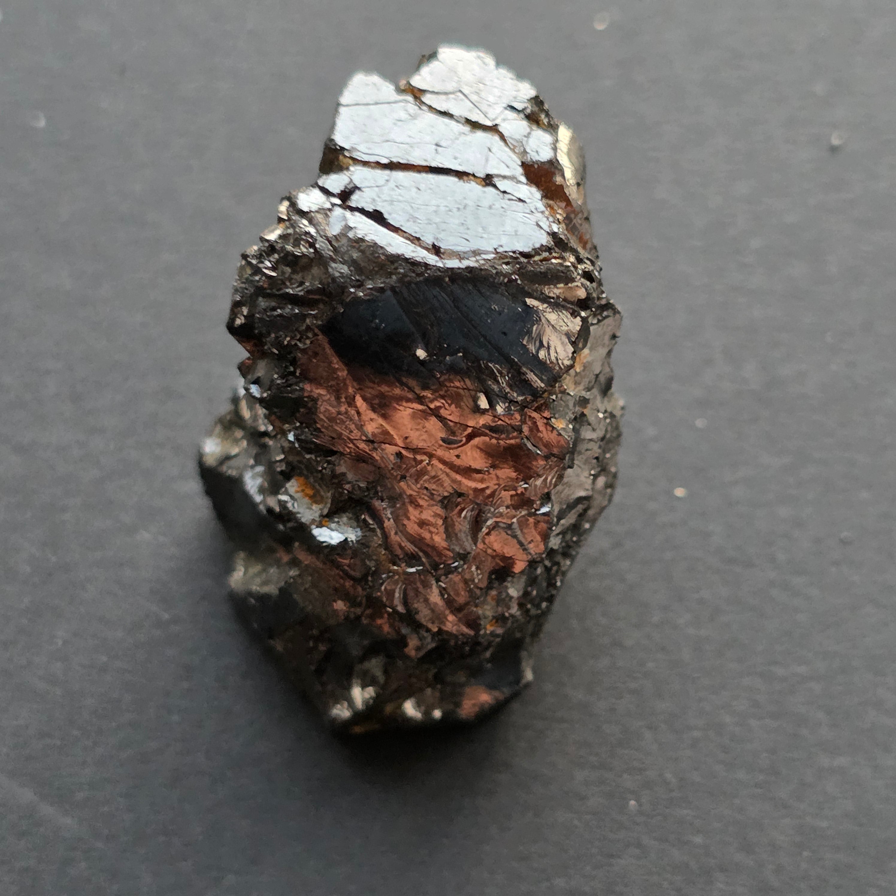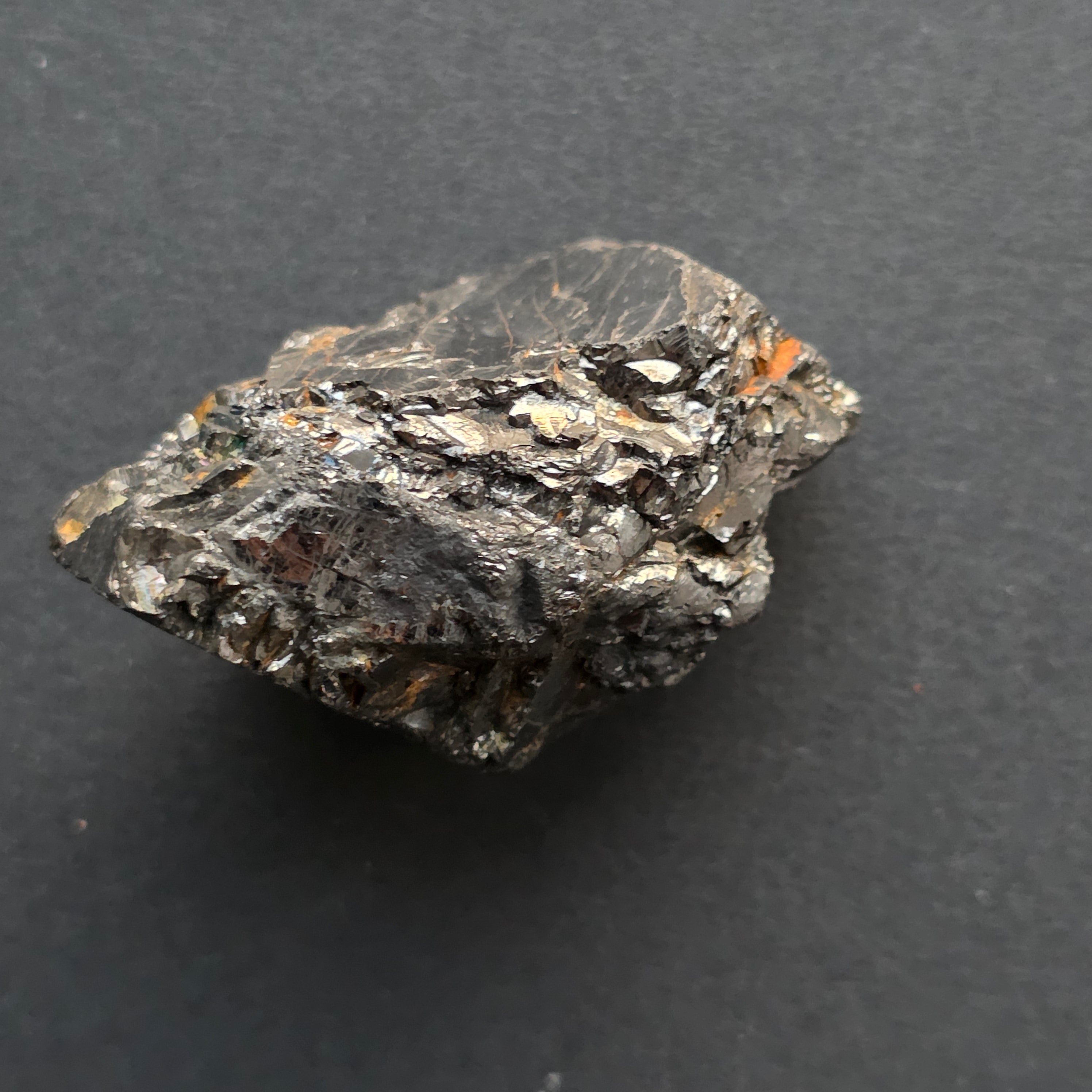 - Felület: kristályos, természetes fémes fényű