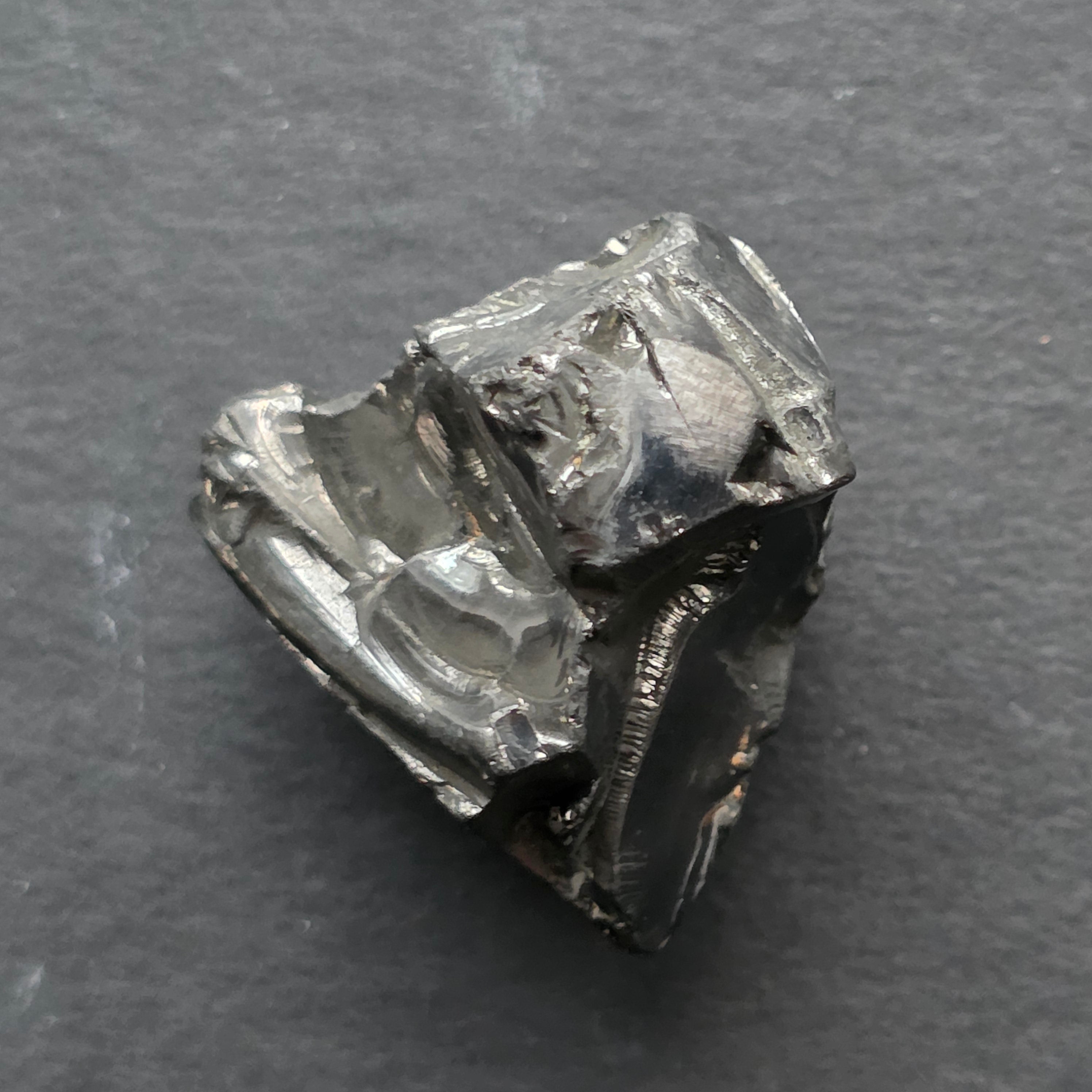 Intenzív, ezüstös, fémes fényével egy ősi világ visszhangját hordozza, ahol a tiszta anyag harmóniában rezgett az élettel.