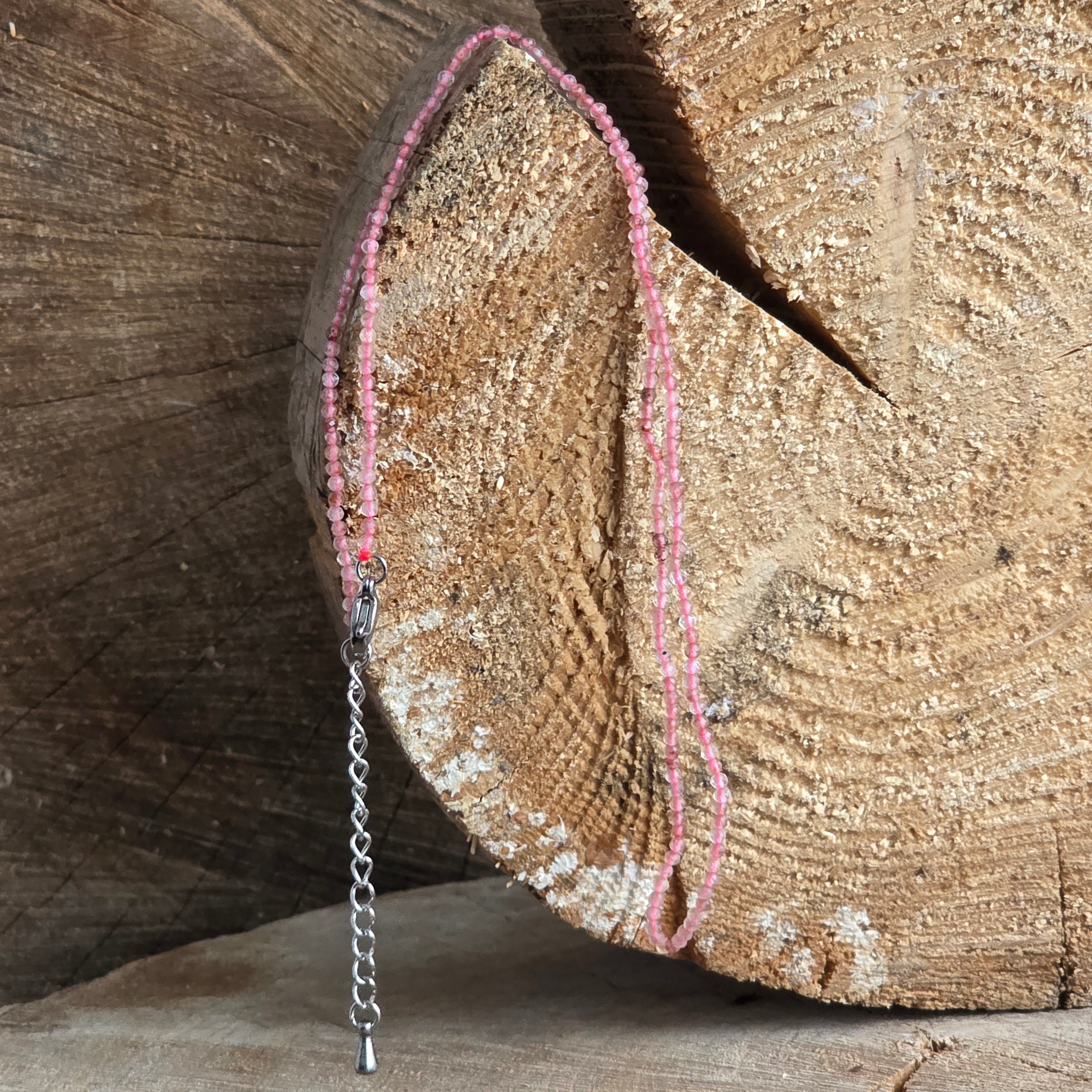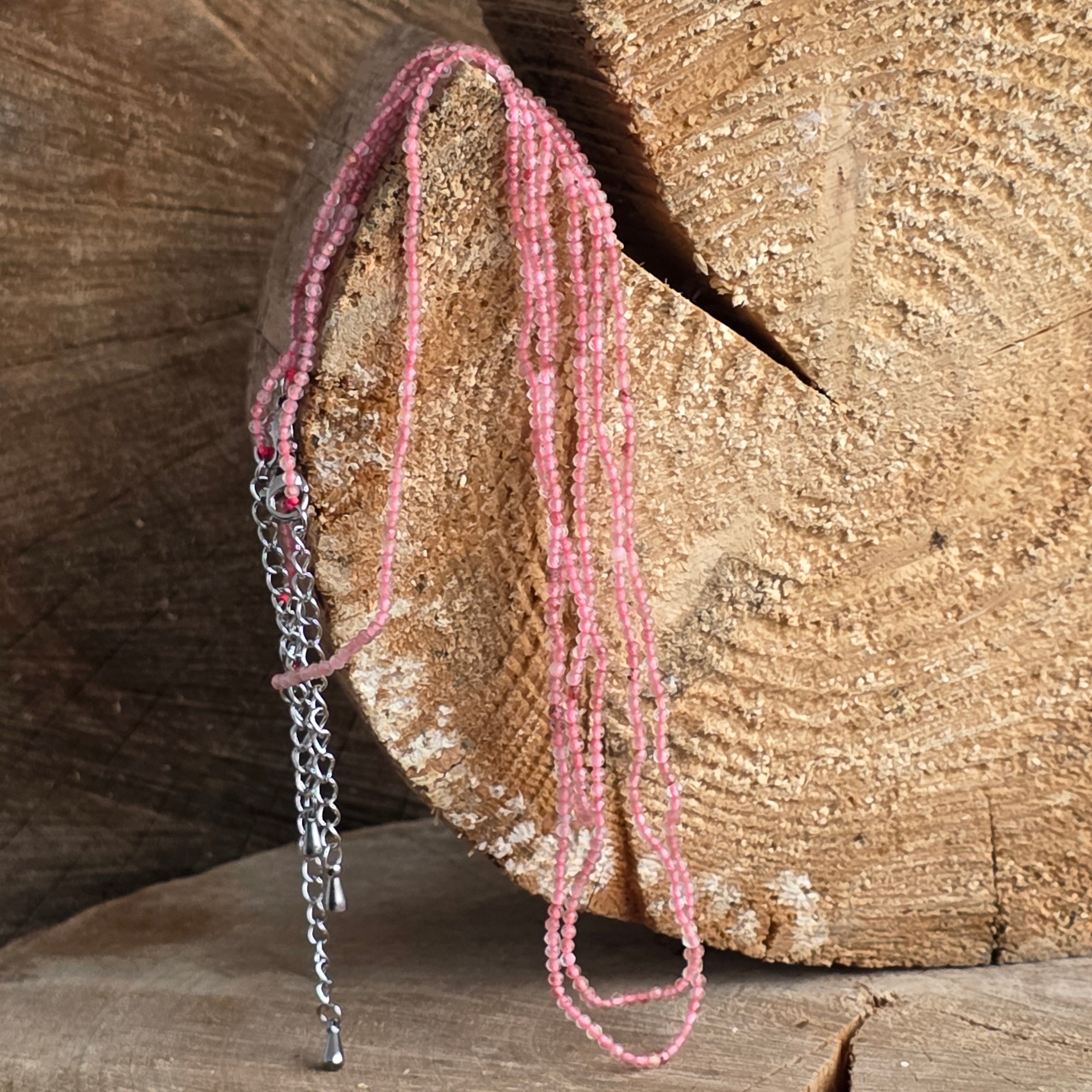 Eper kvarc nyaklánc, golyók 2-3 mm, méret: 38 + 5 cm (hosszabbító lánc)