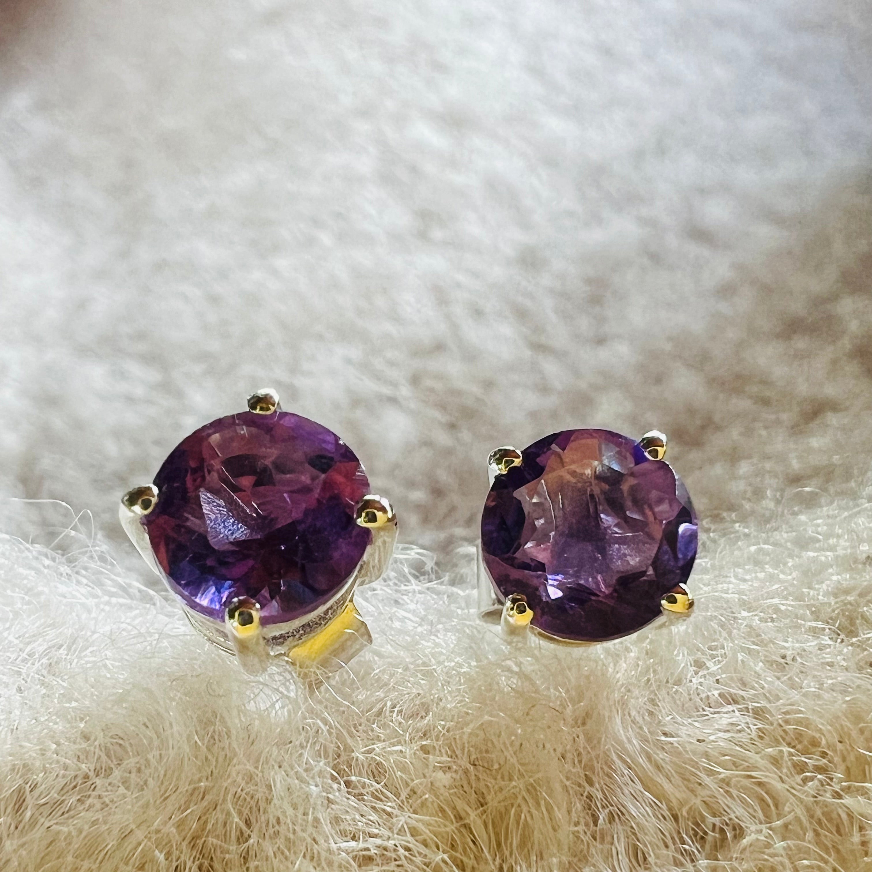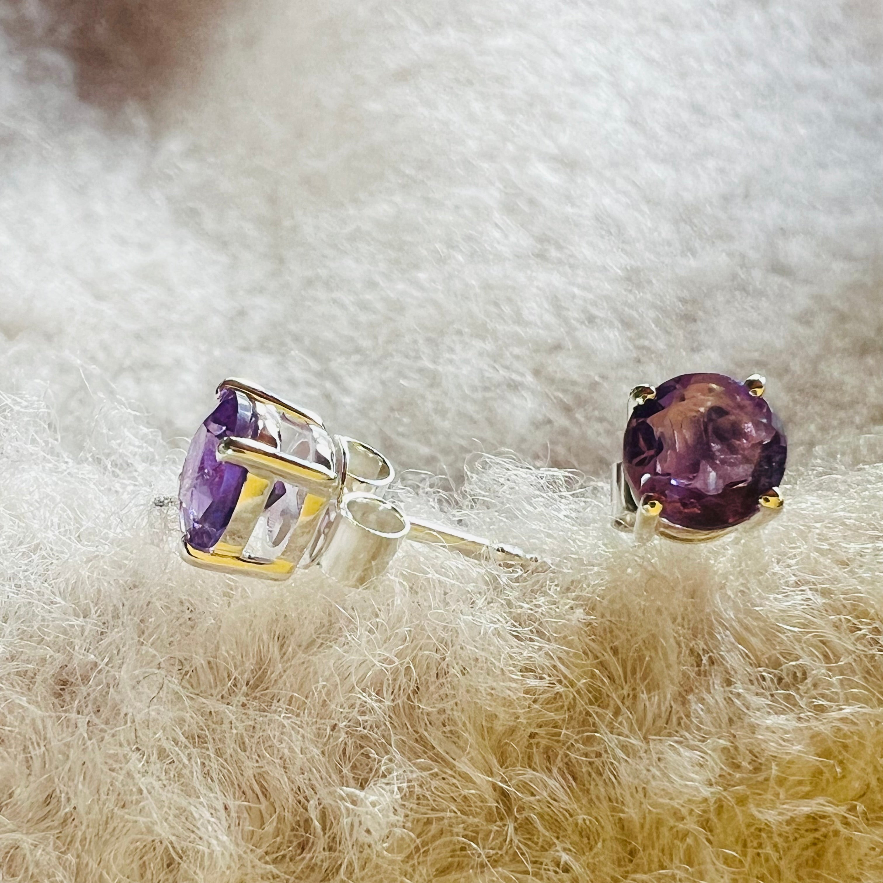 Ezüst ametiszt fülbevaló 6 mm kerek