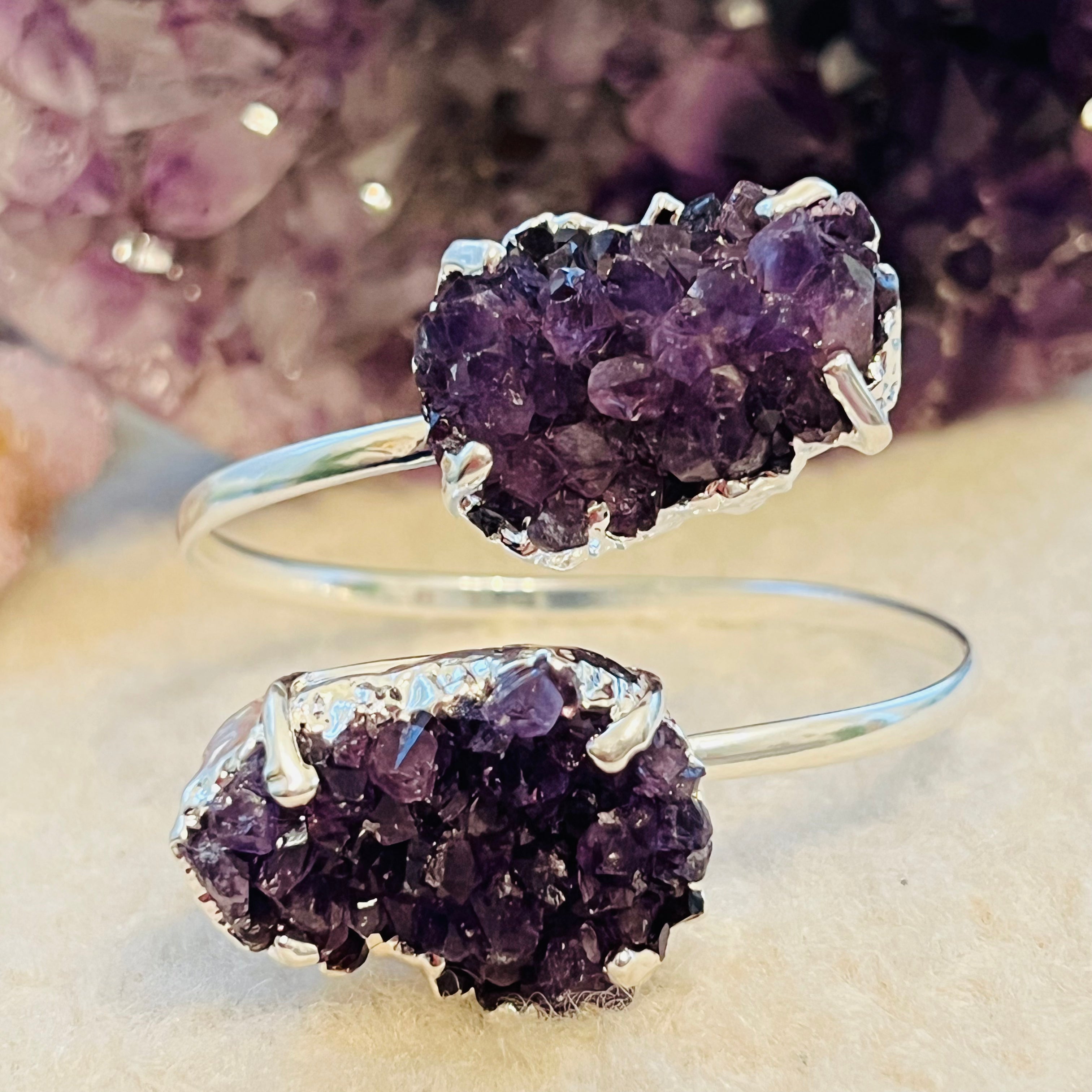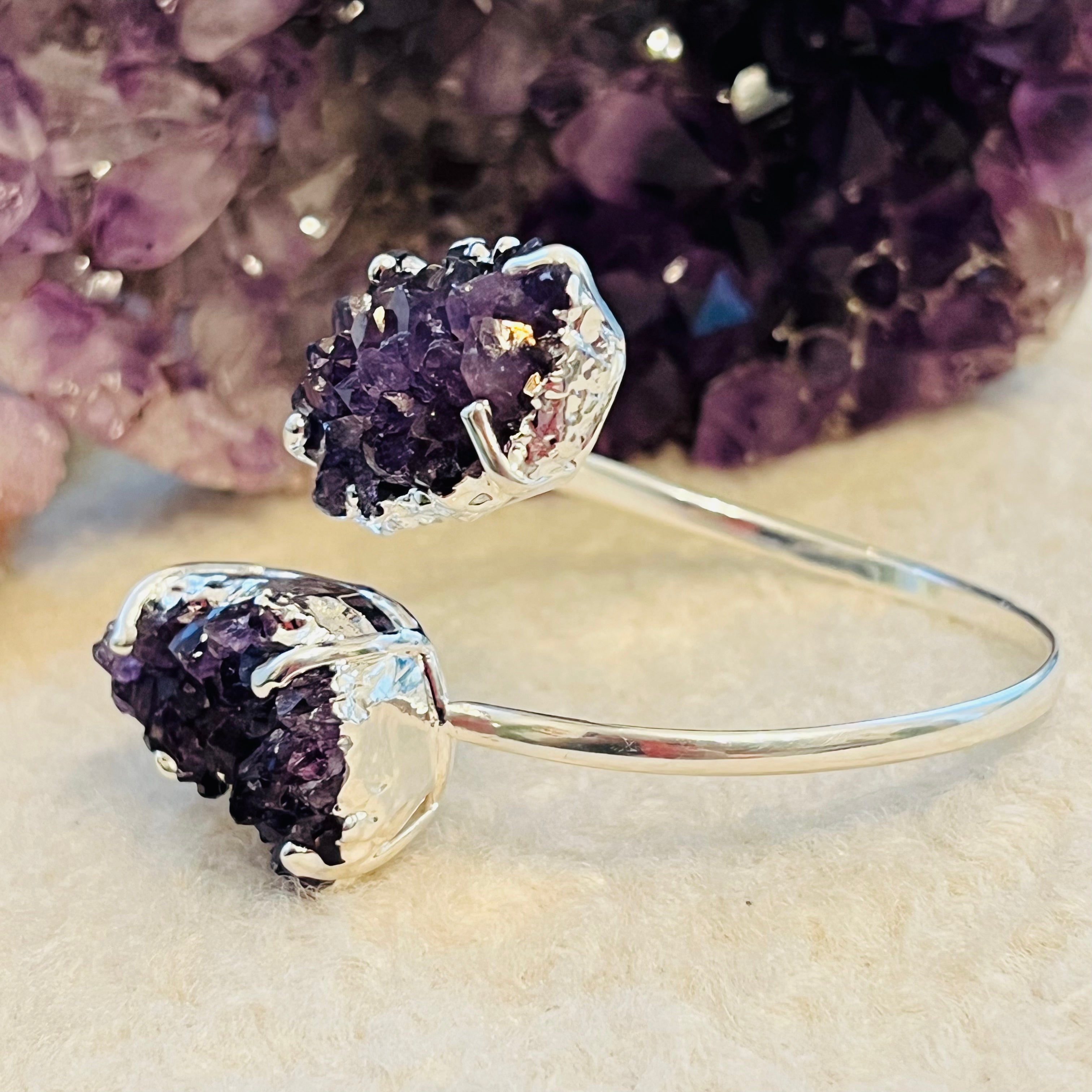Ezüst ametiszttel fújt állítható karkötő druzy Brazil model 2