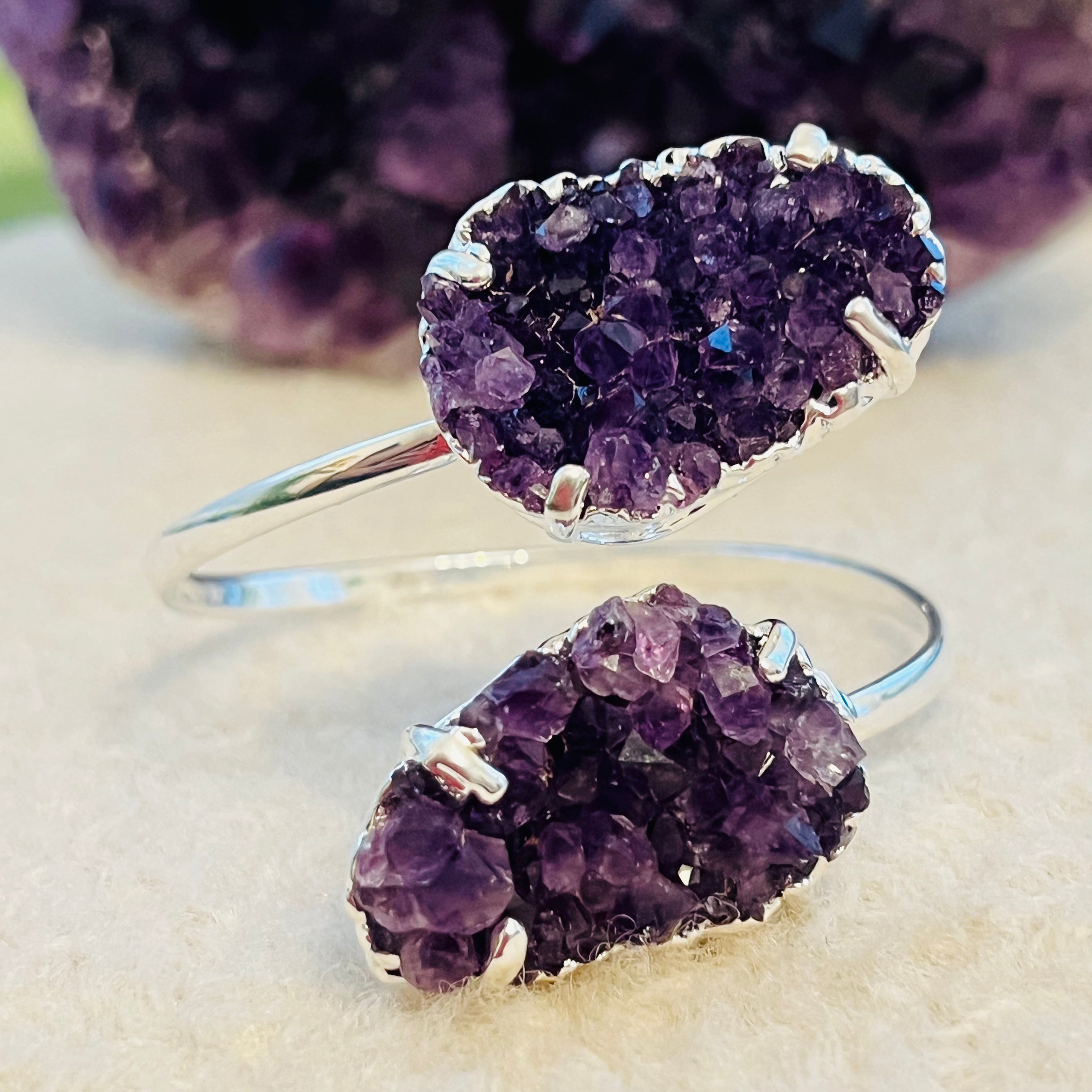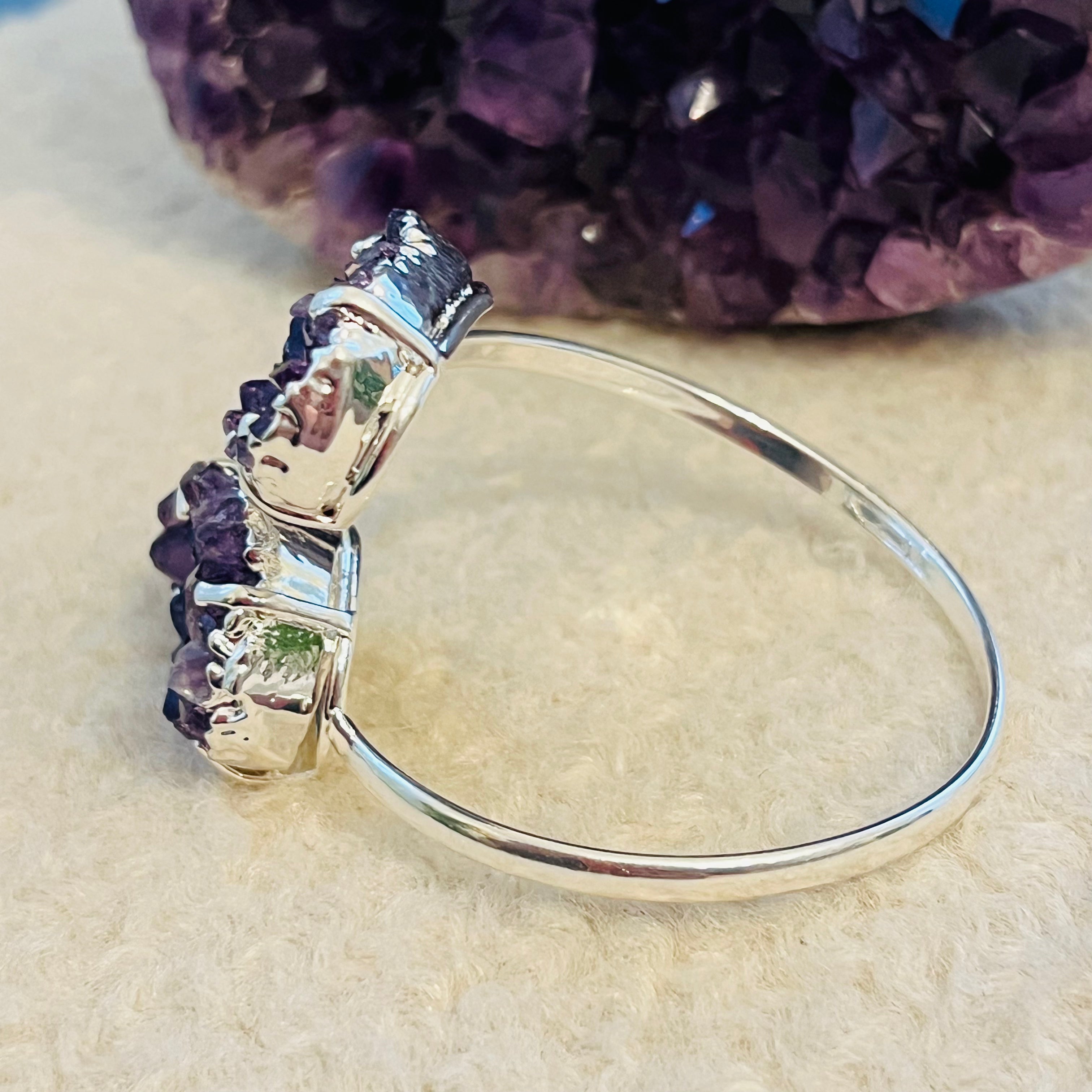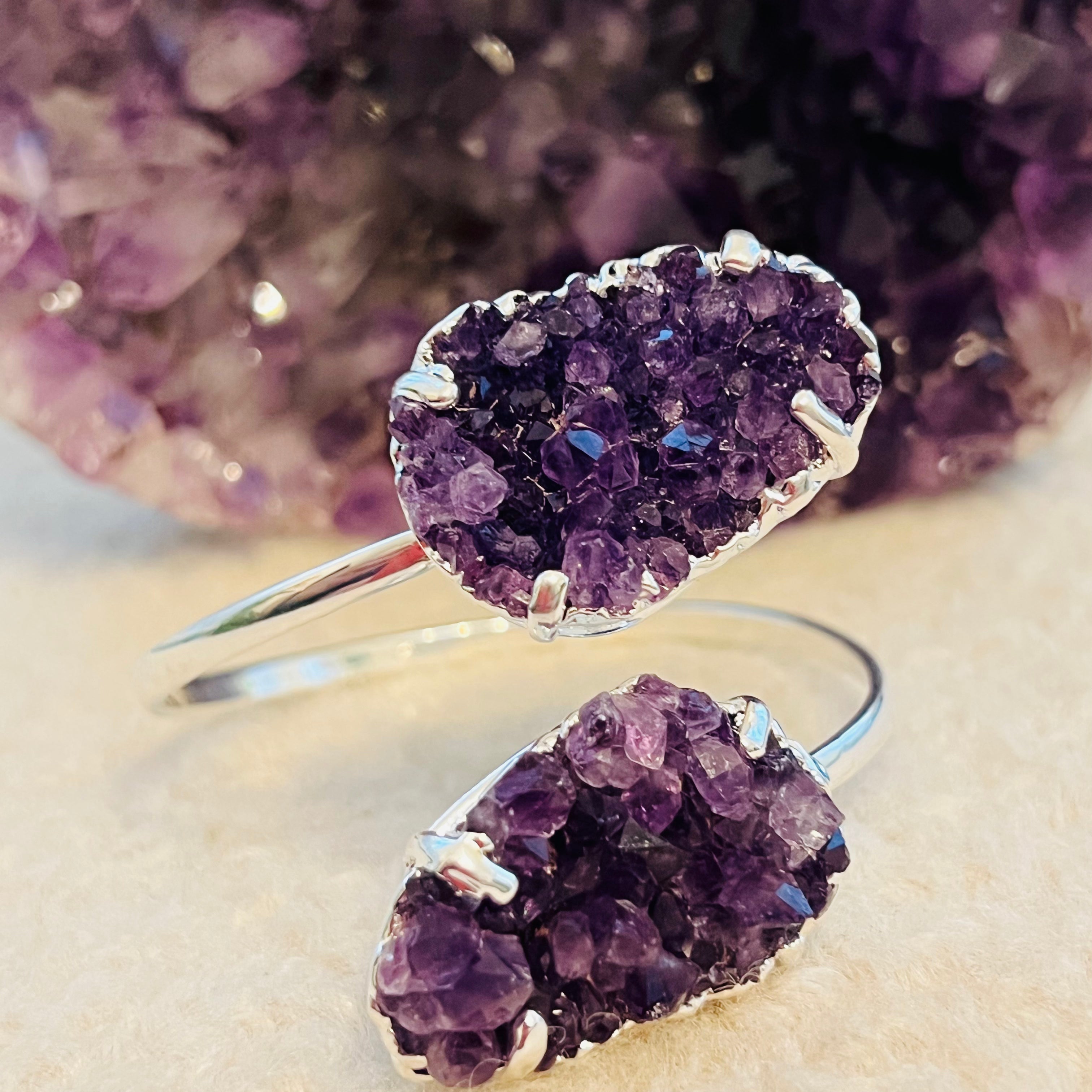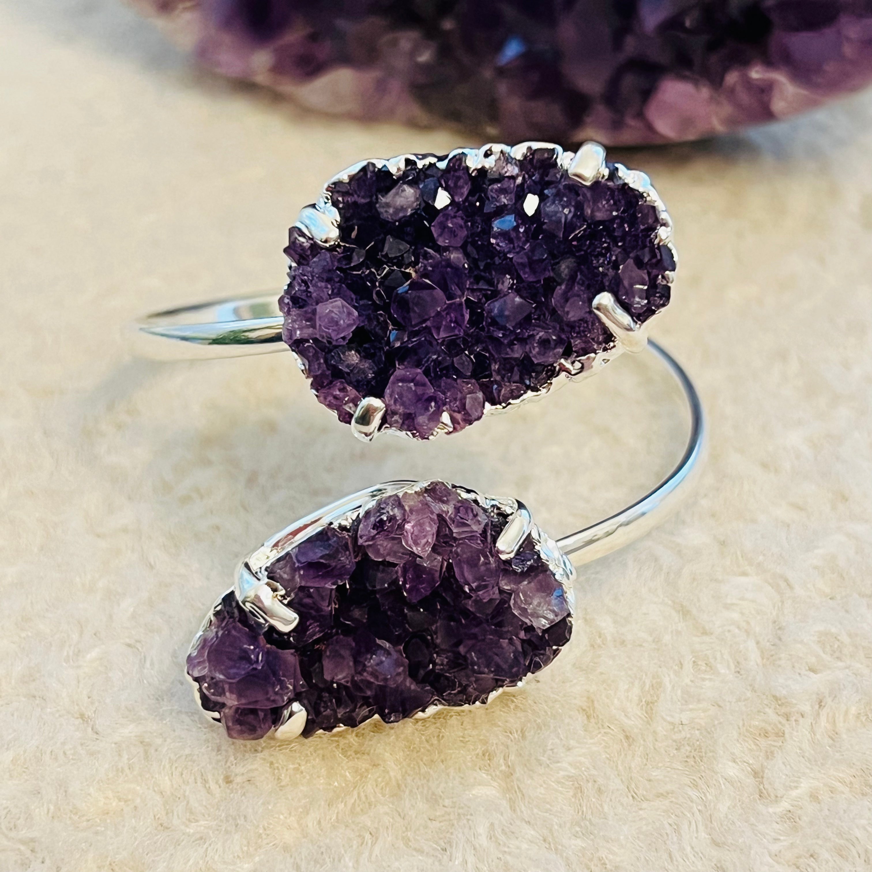 Leírás - Ezüst ametiszttel fújt állítható karkötő druzy Brazil modell 1