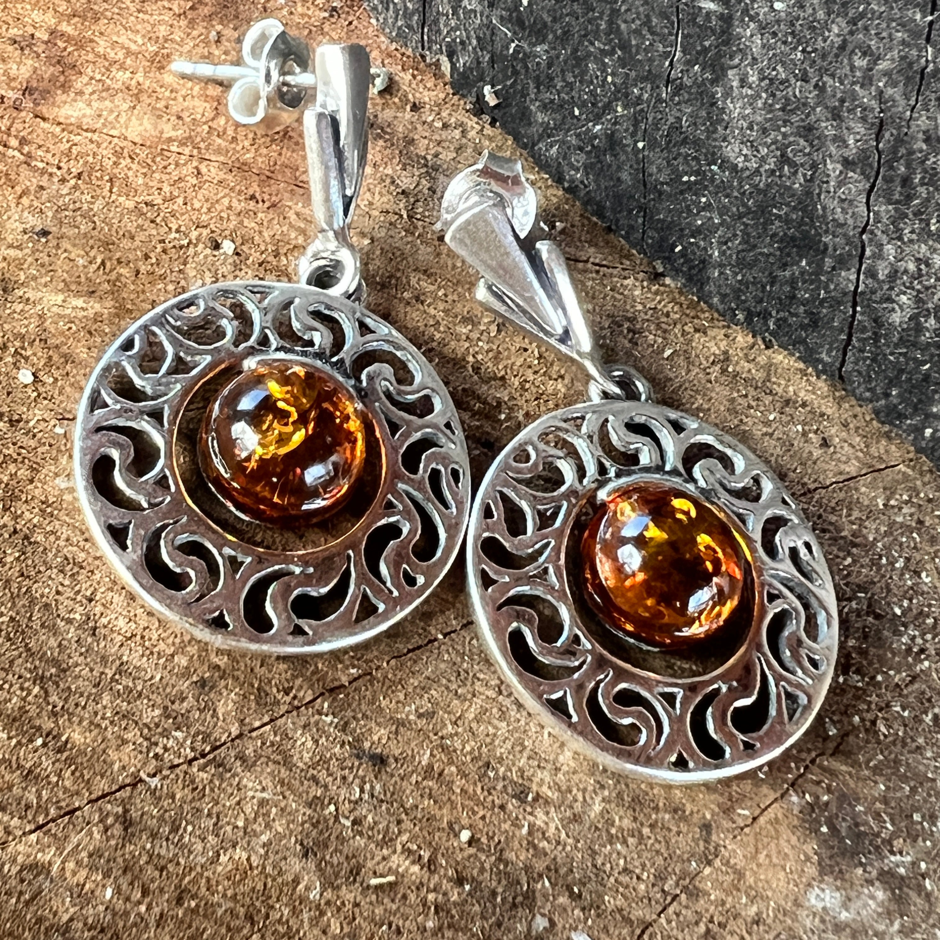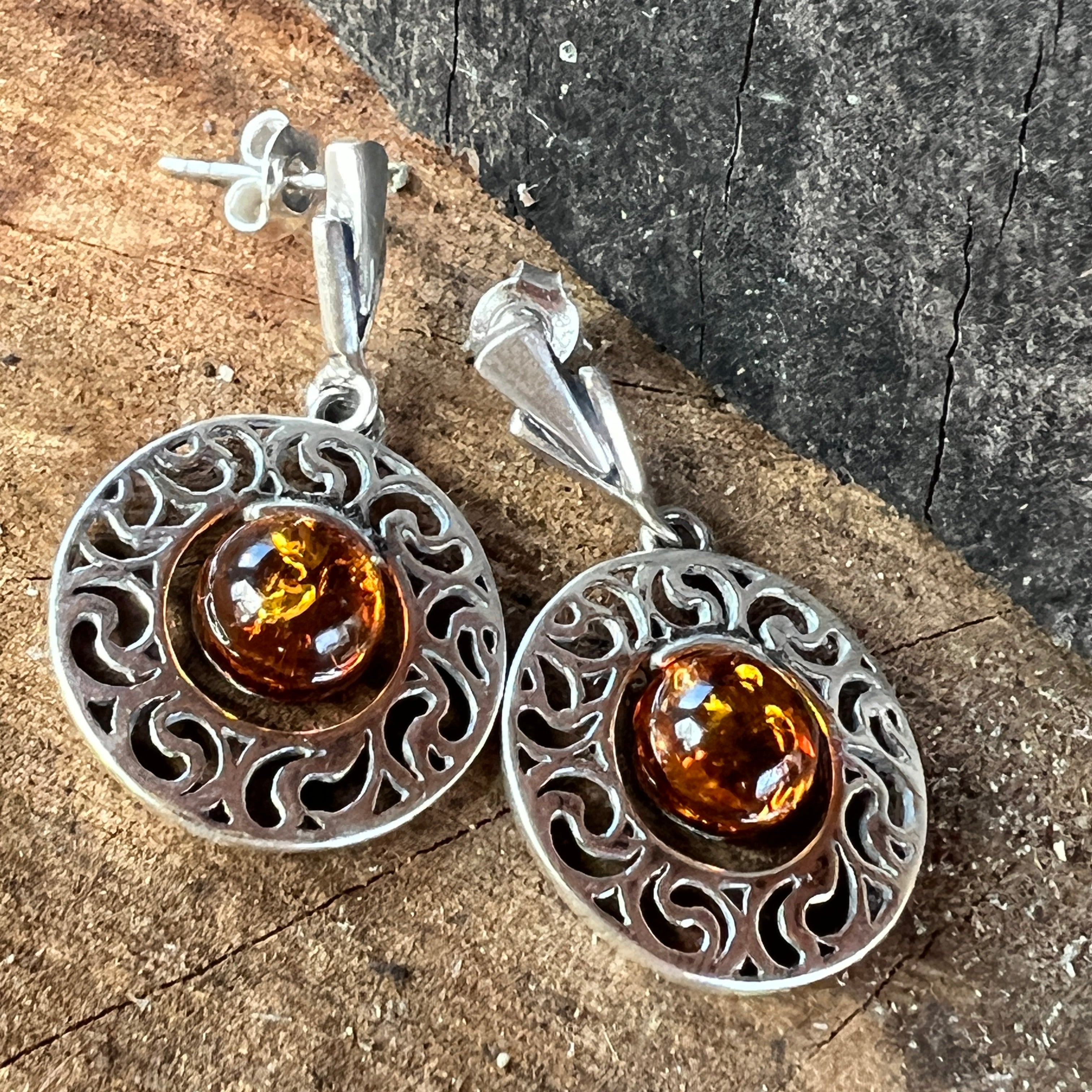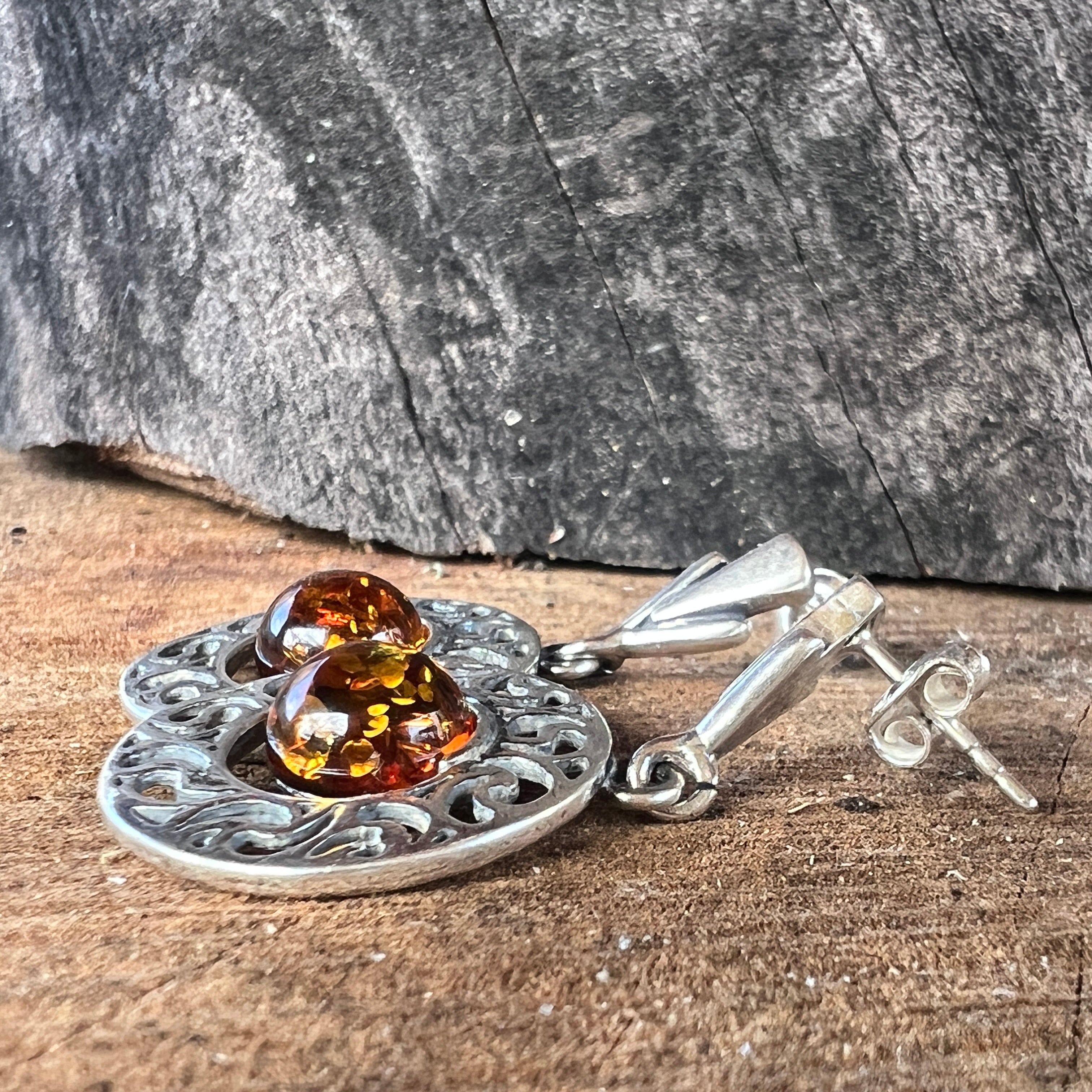 Descriere - Ezüst borostyán fülbevalók Borostyán12