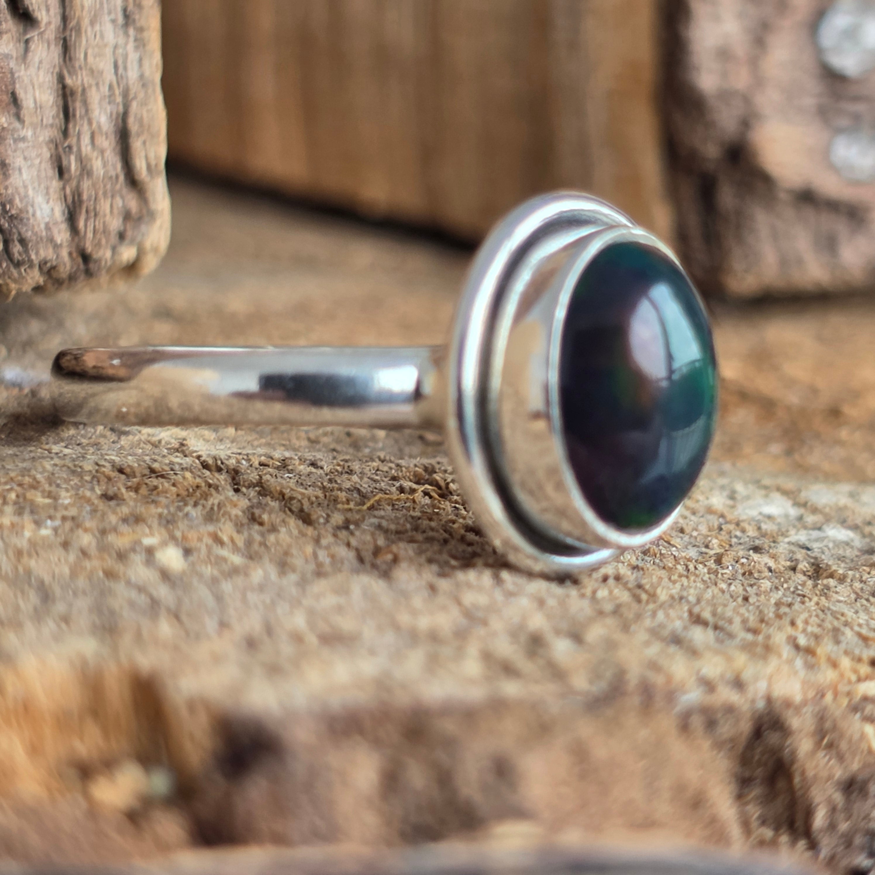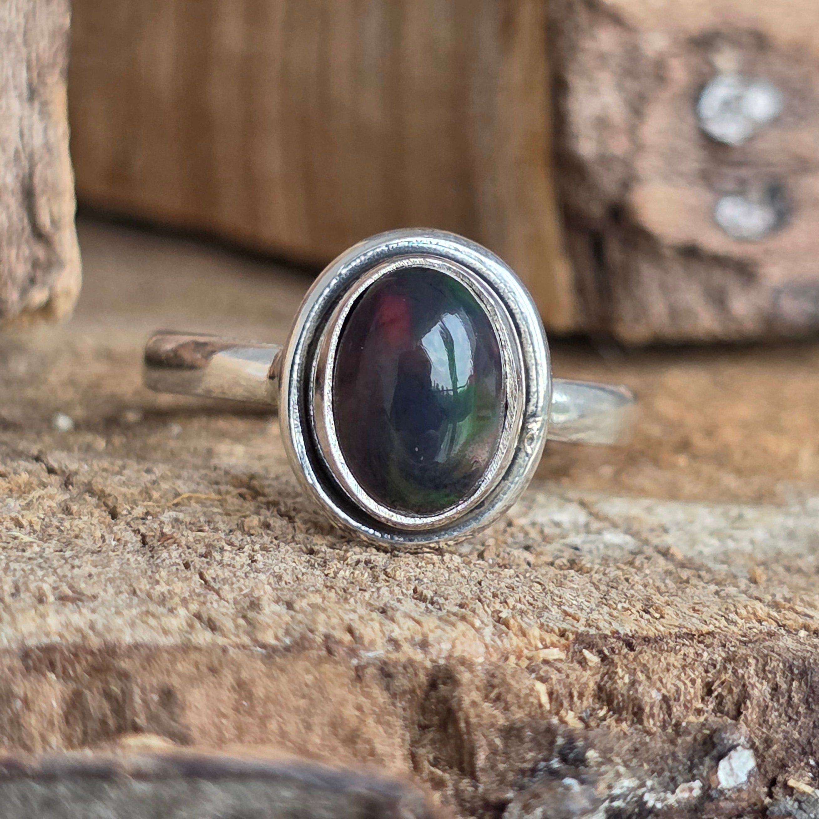 Egy elegáns és kifinomult gyűrű, Silver 925, természetes kővel Etióp opál, amelyet zöld, piros és kék árnyalatokban sugárzó tükröződéseiről ismertek. Minimalista dizájn Egyszerű vezeték beállítás Lehetővé teszi, hogy a kő legyen a figyelem középpontja, és bármilyen szögből megfogja a fényt.