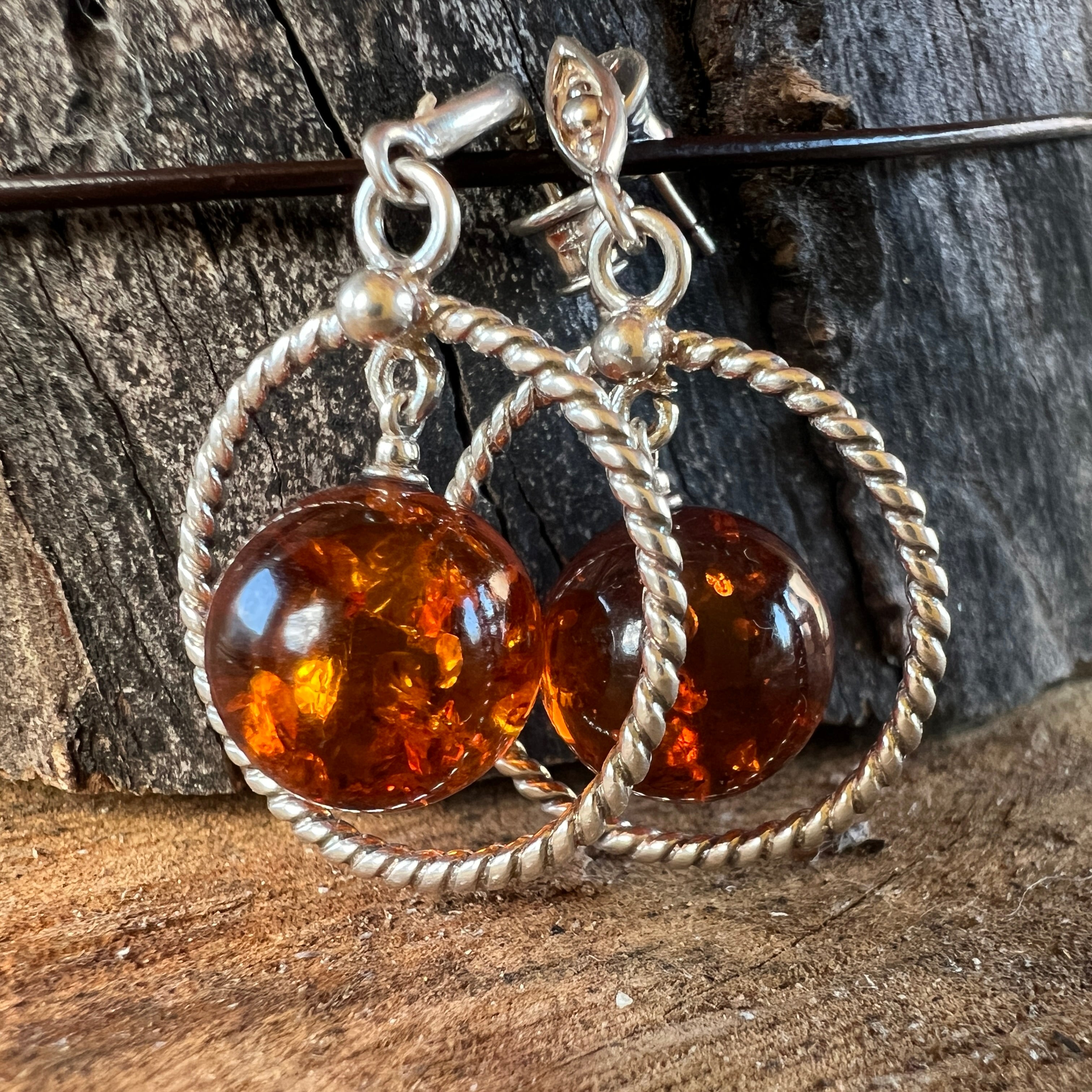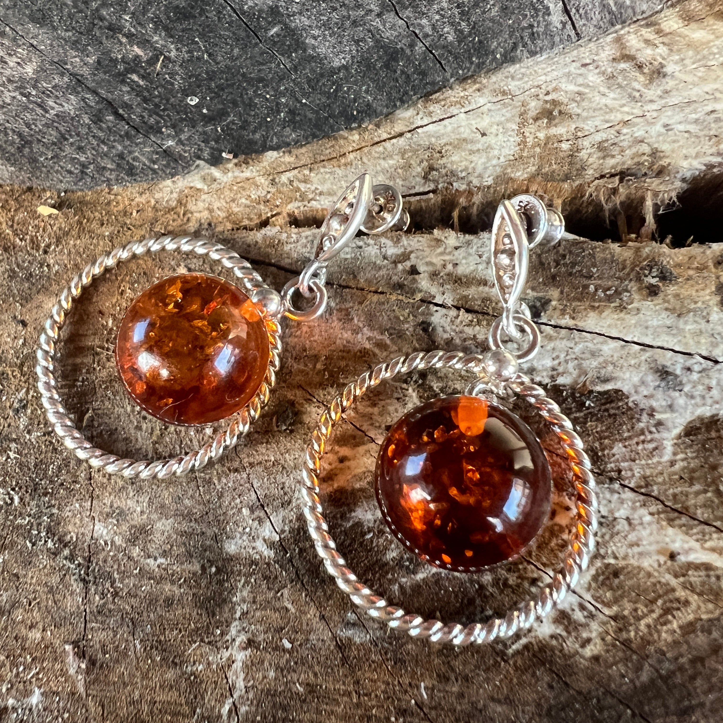 Ezüst fülbevaló borostyánnal Amber1