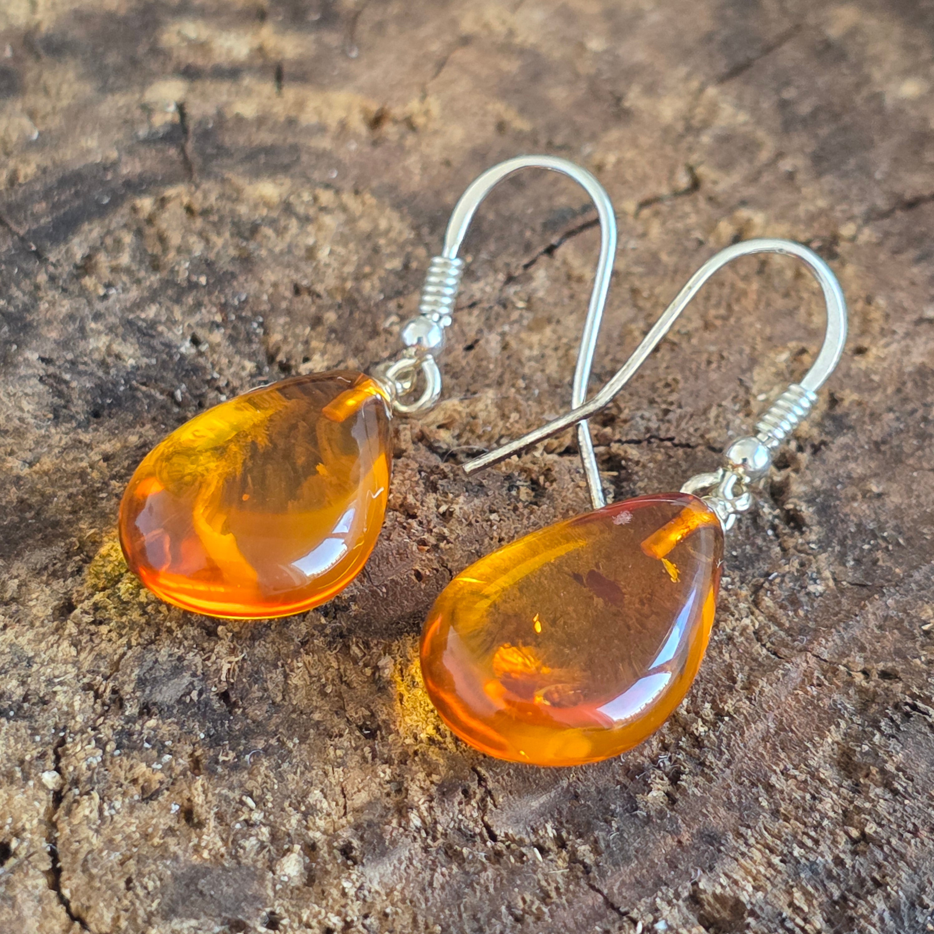 Elegáns és ragyogó, ezek az ezüst fülbevalók természetes borostyánnal megragadják a balti nap esszenciáját egy finom és időtlen formában.