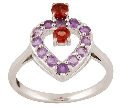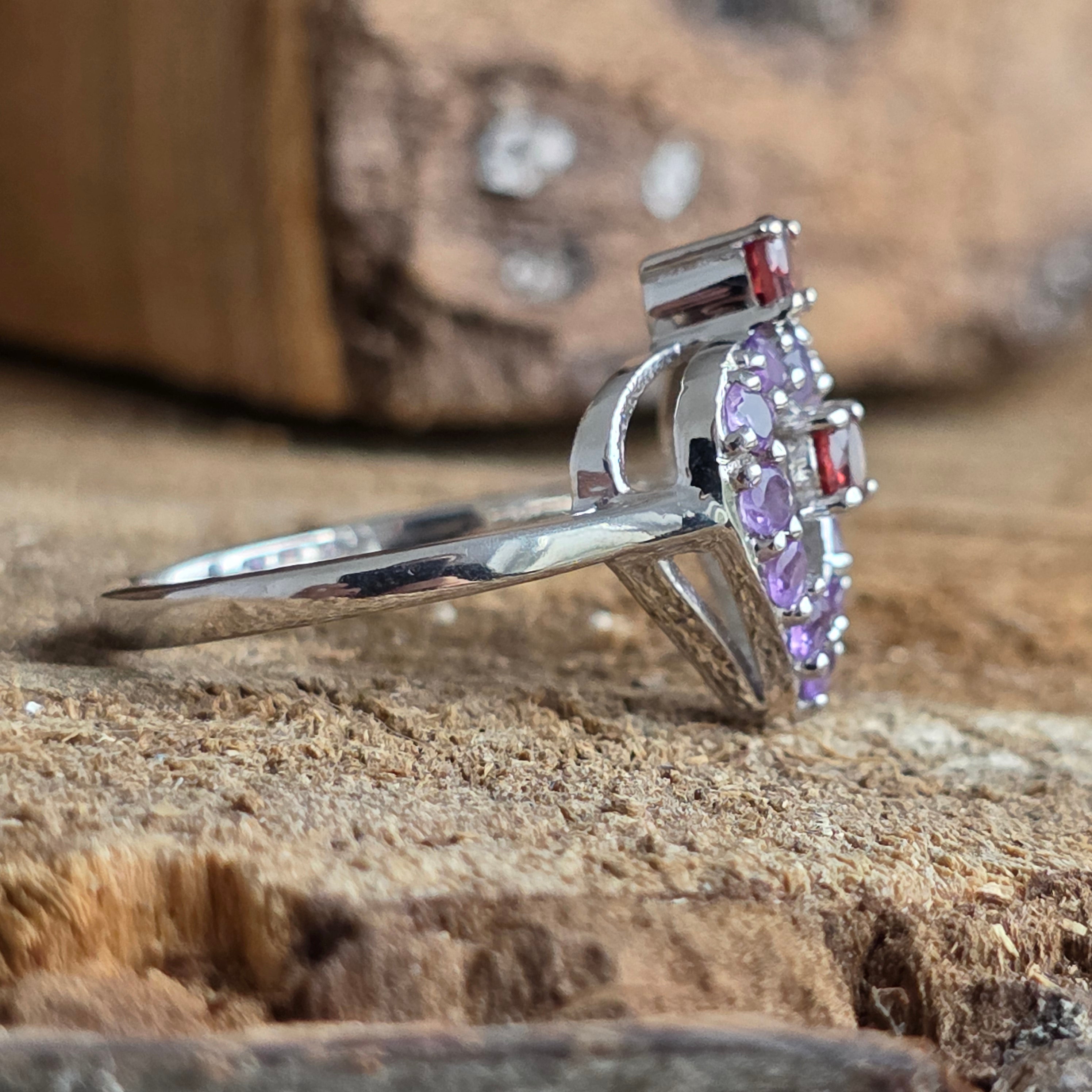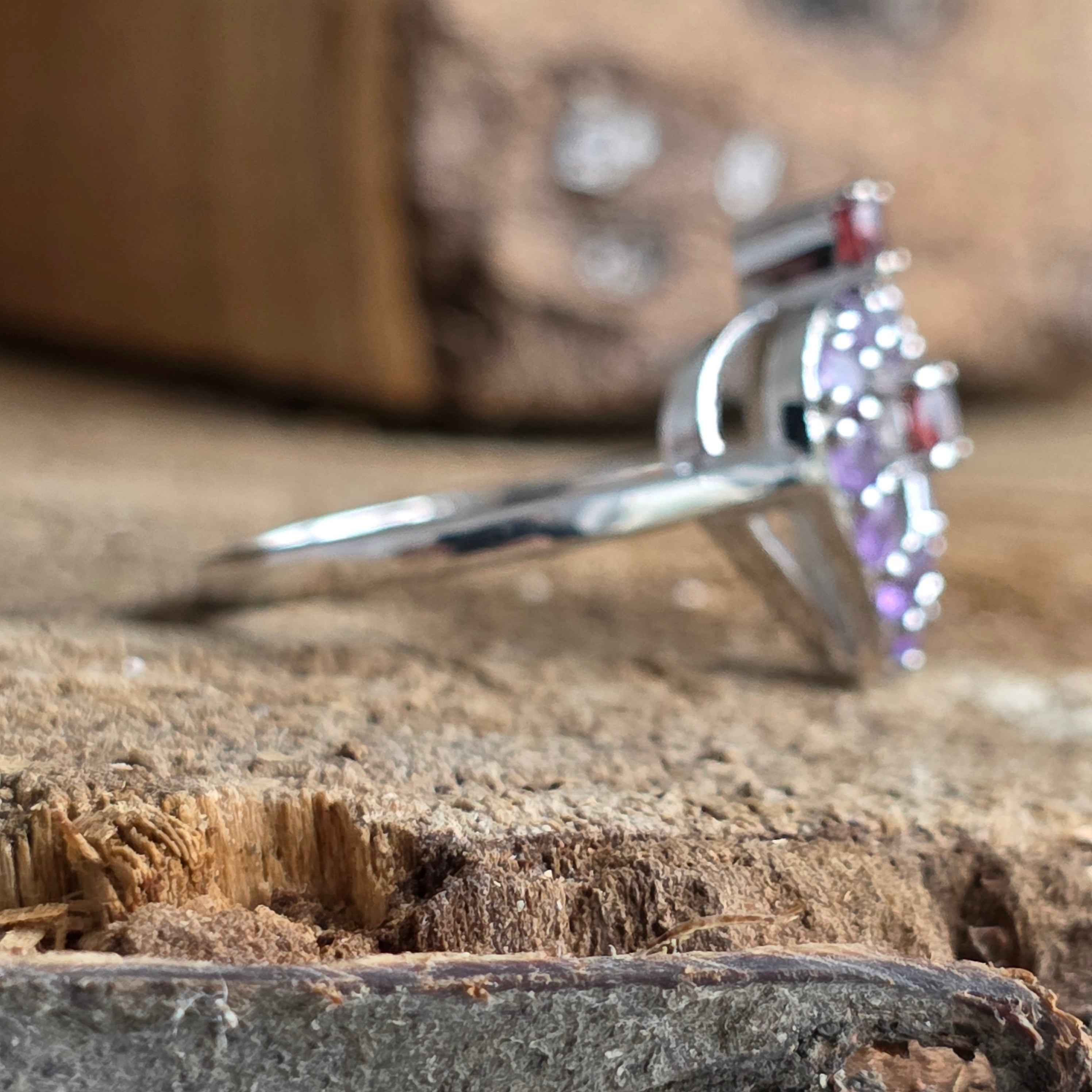 Ezüst gyűrű ametiszttel, gránáttal | DUO