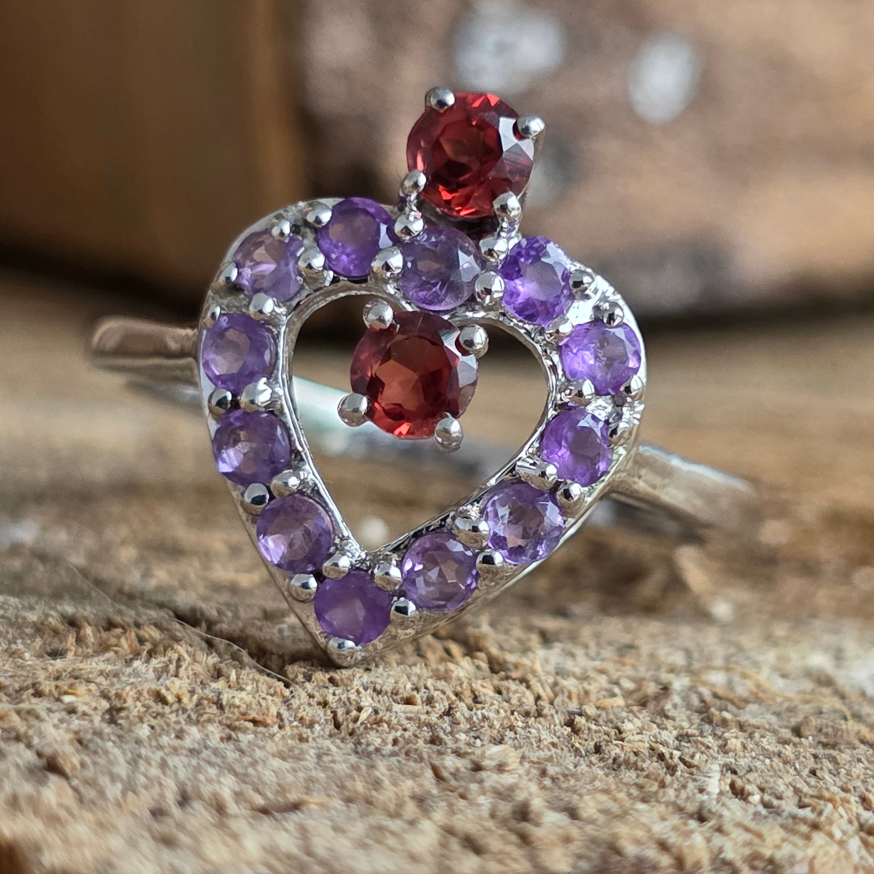 Egy gyűrű, amely a szeretetről, az egyensúlyról és az élő energiáról mesél. Az ametiszt világosságot és nyugalmat hoz, míg a Gránát lángra lobbantja a szenvedélyt és a bátorságot – együtt tökéletes harmóniát teremtenek a szív és az elme között.