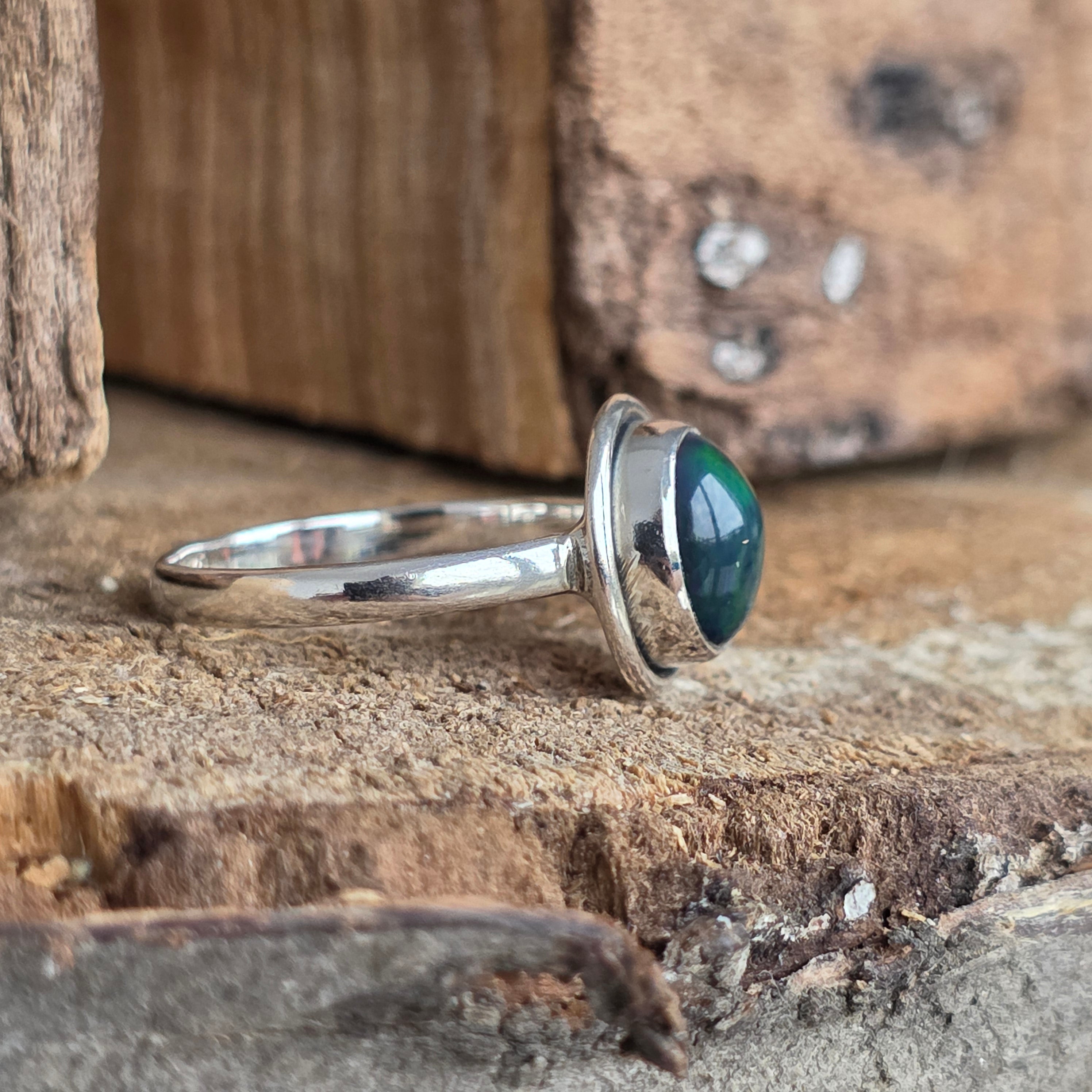 Egy elegáns és kifinomult gyűrű, Silver 925, természetes kővel Etióp opál, amelyet zöld, piros és kék árnyalatokban sugárzó tükröződéseiről ismertek. Minimalista dizájn Egyszerű vezeték beállítás Lehetővé teszi, hogy a kő legyen a figyelem középpontja, és bármilyen szögből megfogja a fényt.