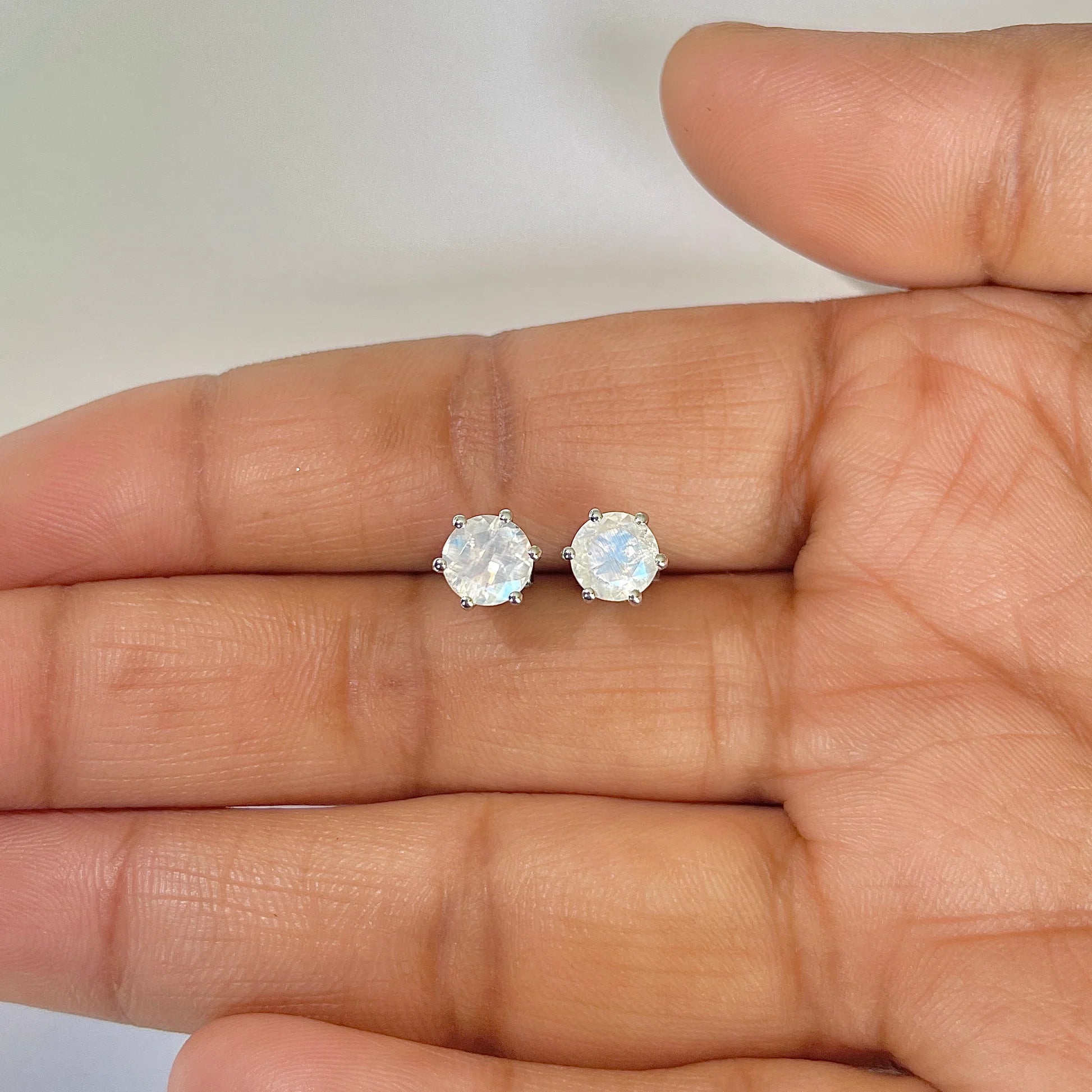 Ezek a fülbevalók ezüst csap természetes holdkővel elegáns és diszkrét választás minden alkalomra. Klasszikus kialakításuk kiemeli a kő finom szépségét, amely természetes fényben felfedi kék irizáló hatását.