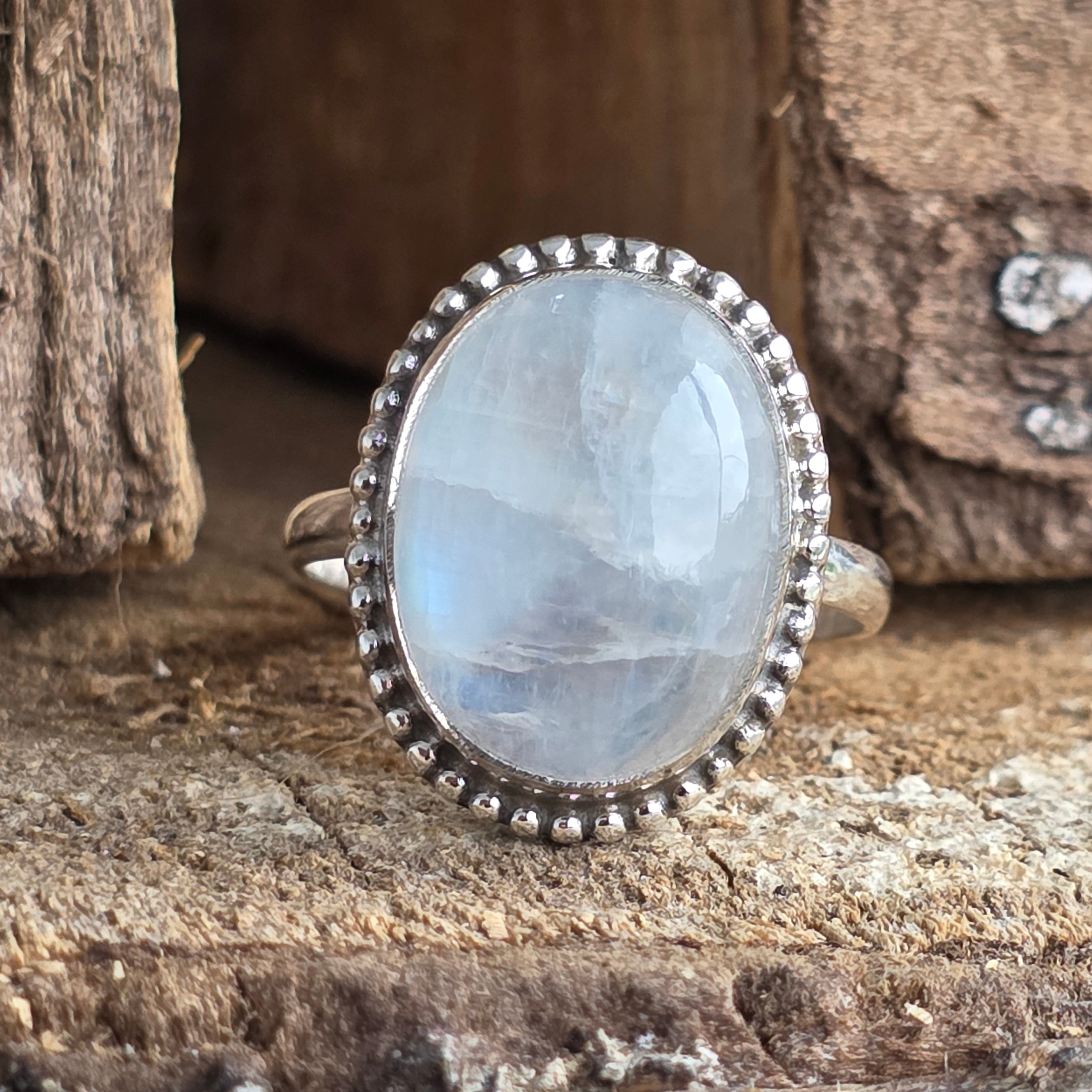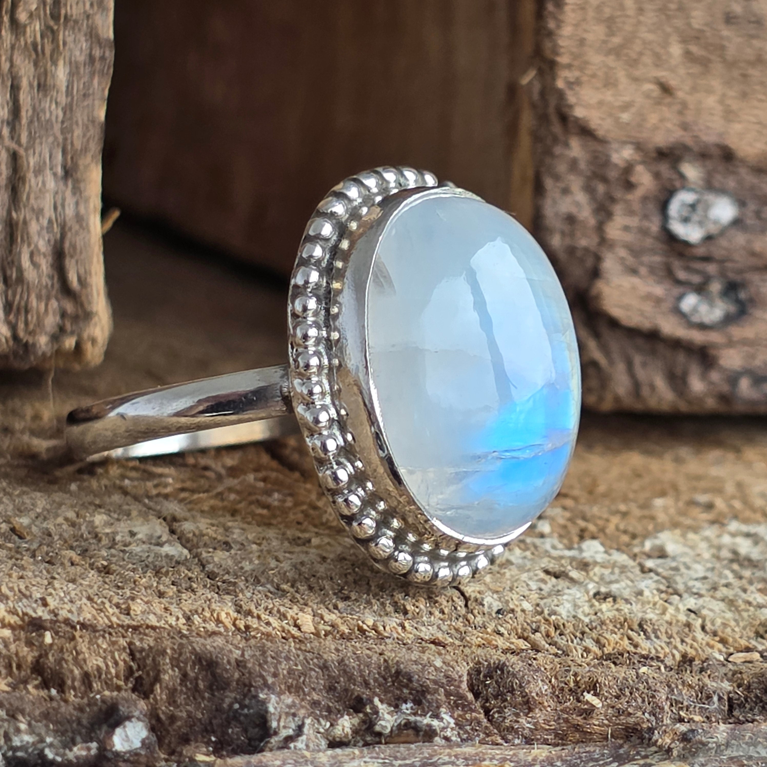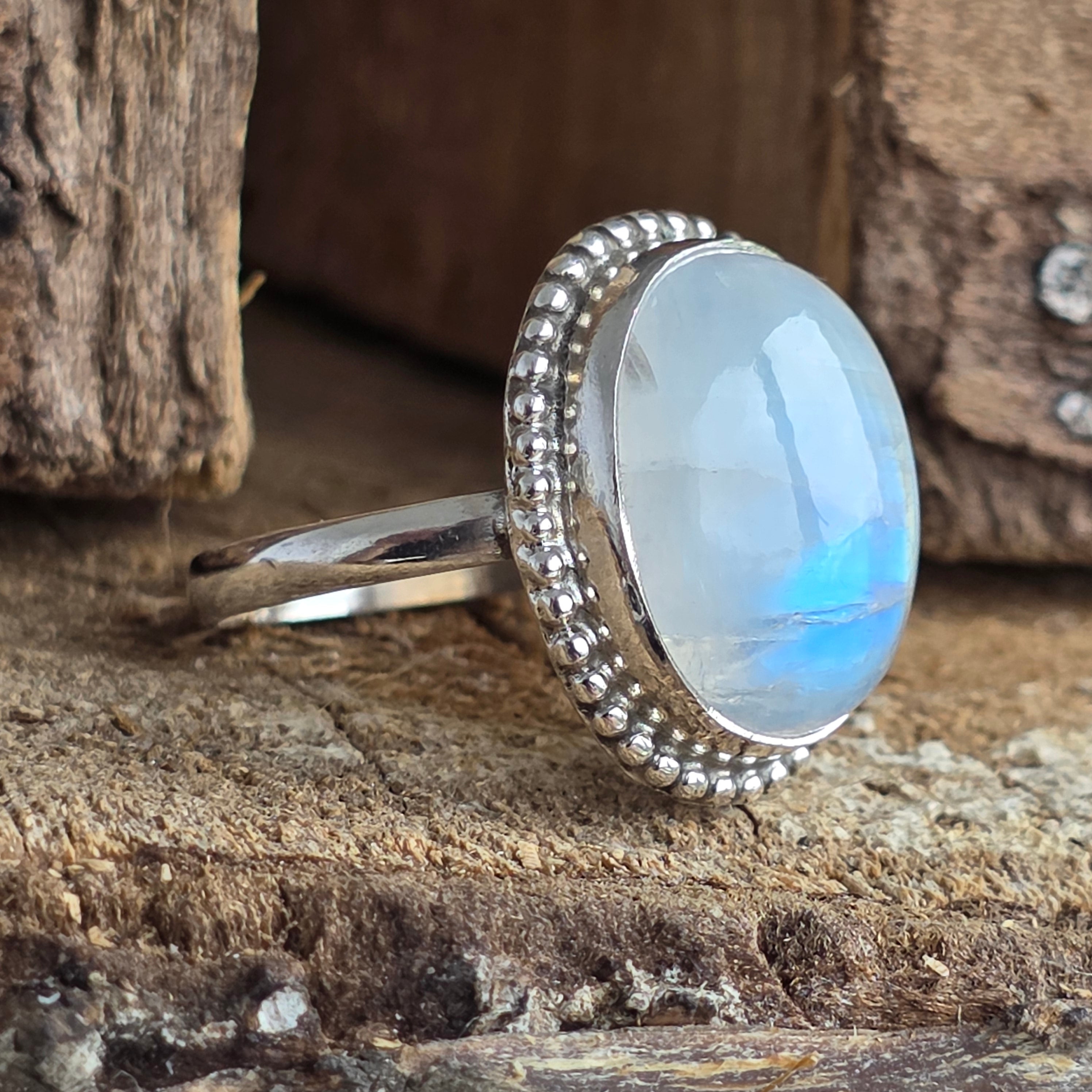 • Kő: természetes szivárvány holdkő (rainbow moonstone), ovális csiszolás (oval shape)
