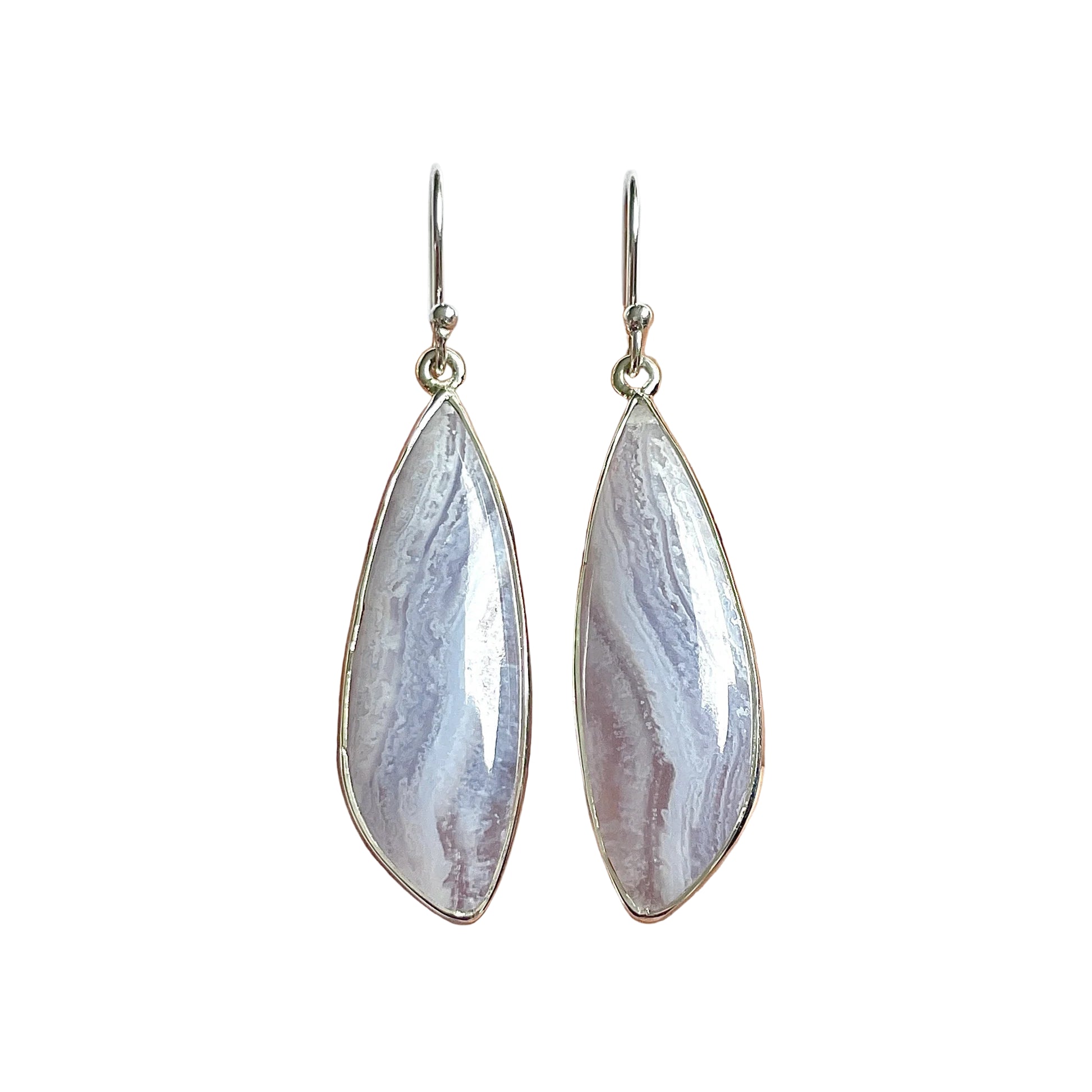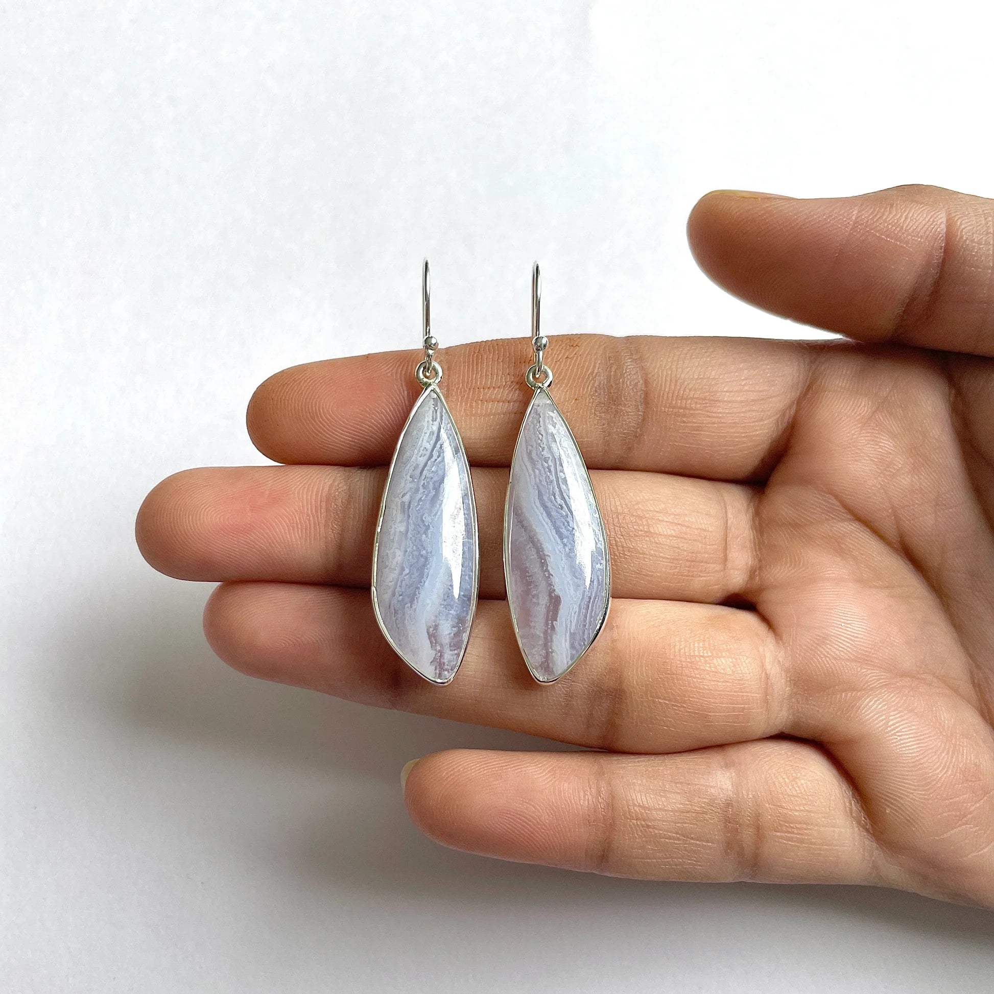 Ezüst kalcedon/kék csipke fülbevaló | 1. modell