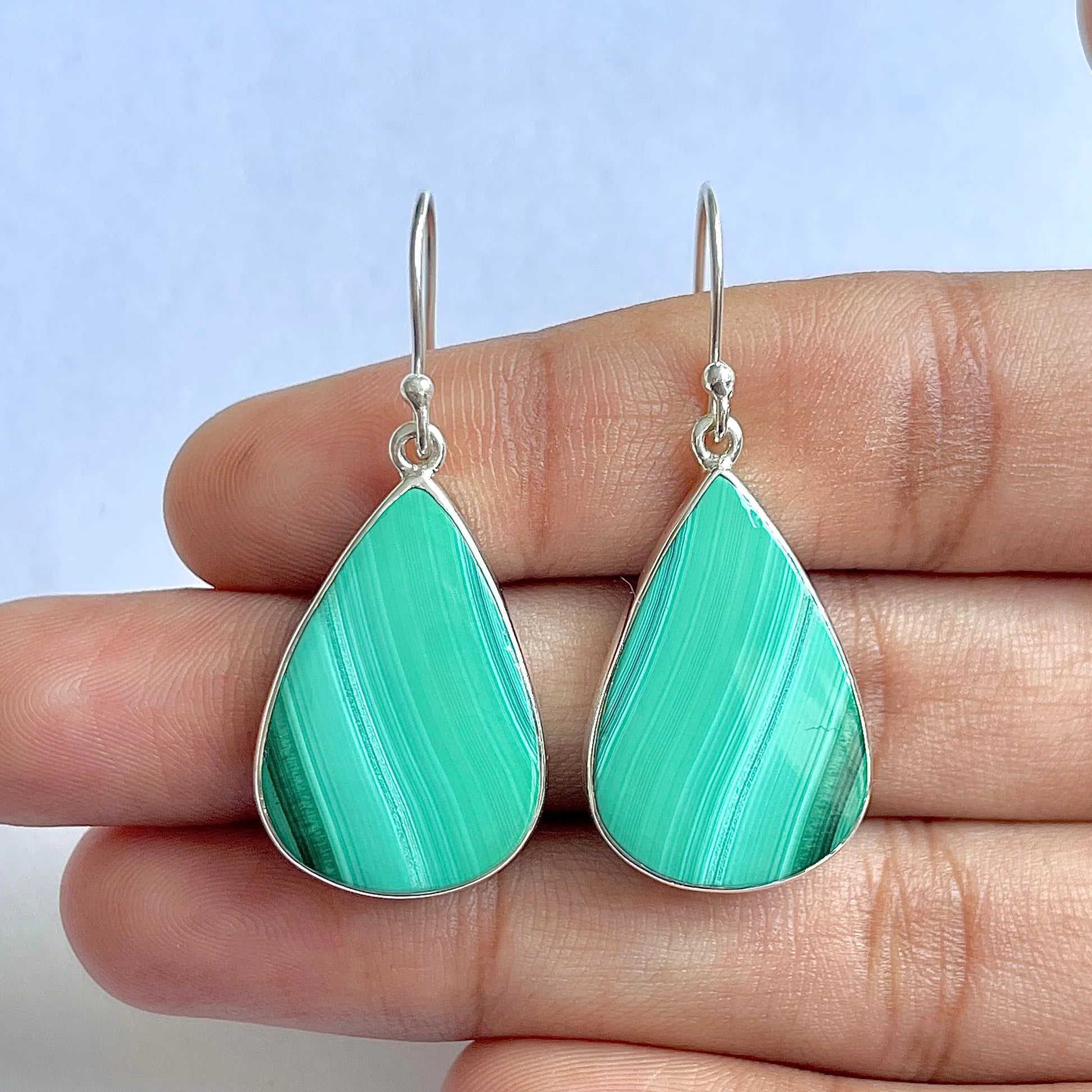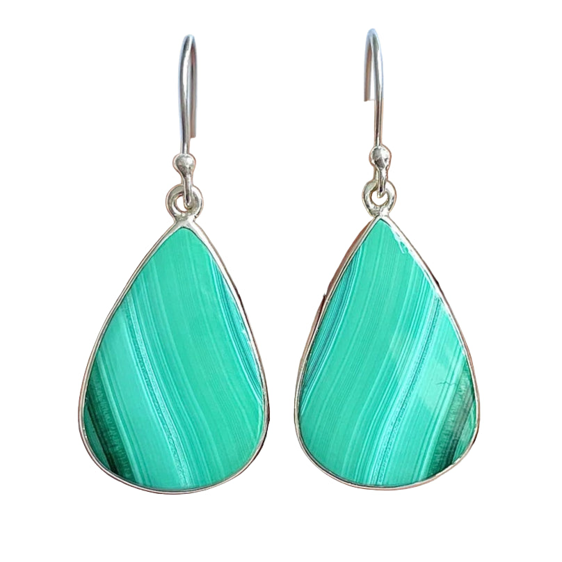Descriere - Ezüst malachit fülbevaló | 2. modell