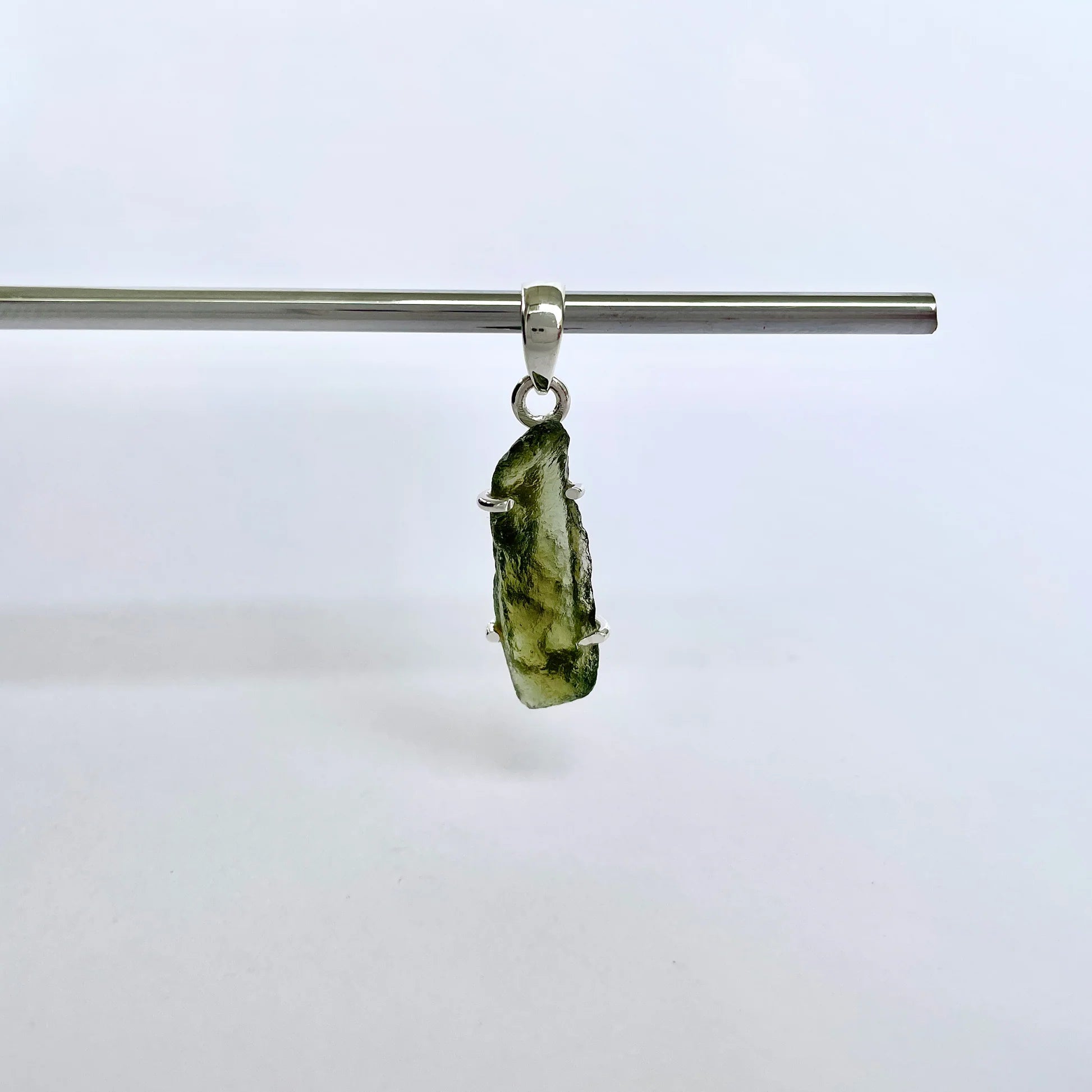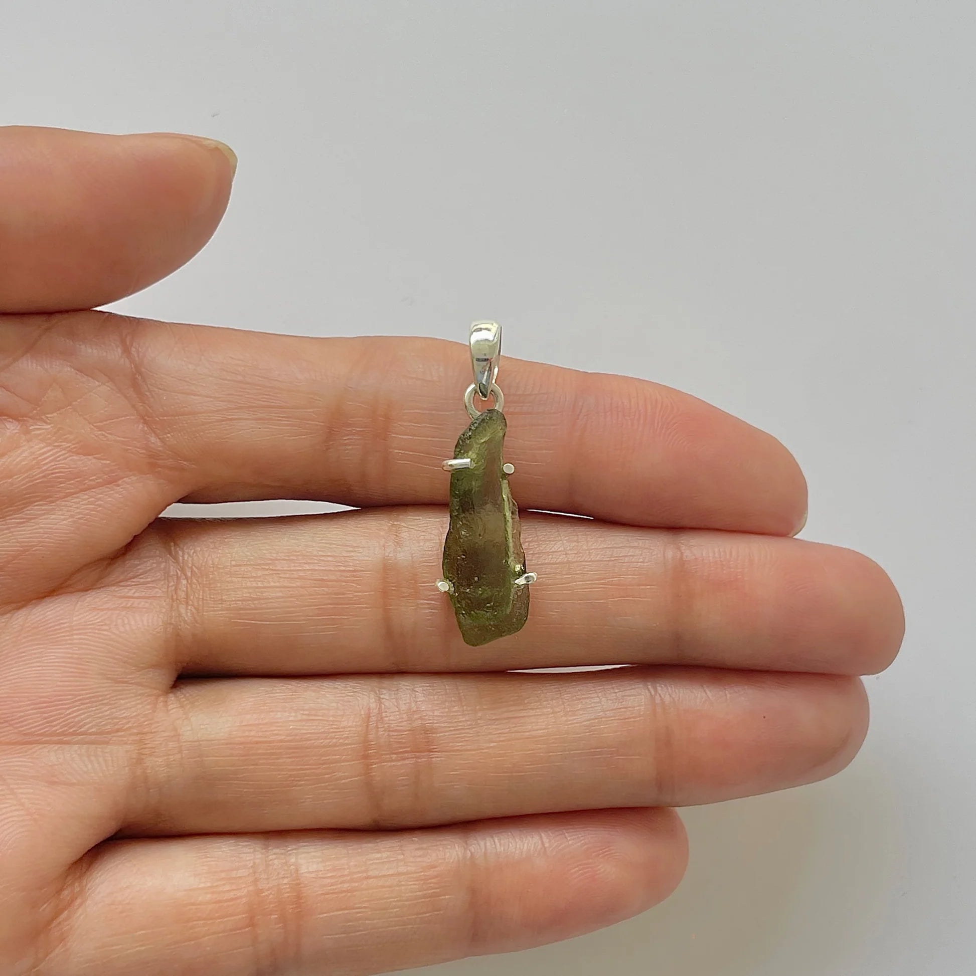 Ritka és hiteles medál nyers moldavit, minimalista beépítve 925 ezüst hogy kiemelje természetes formáját.