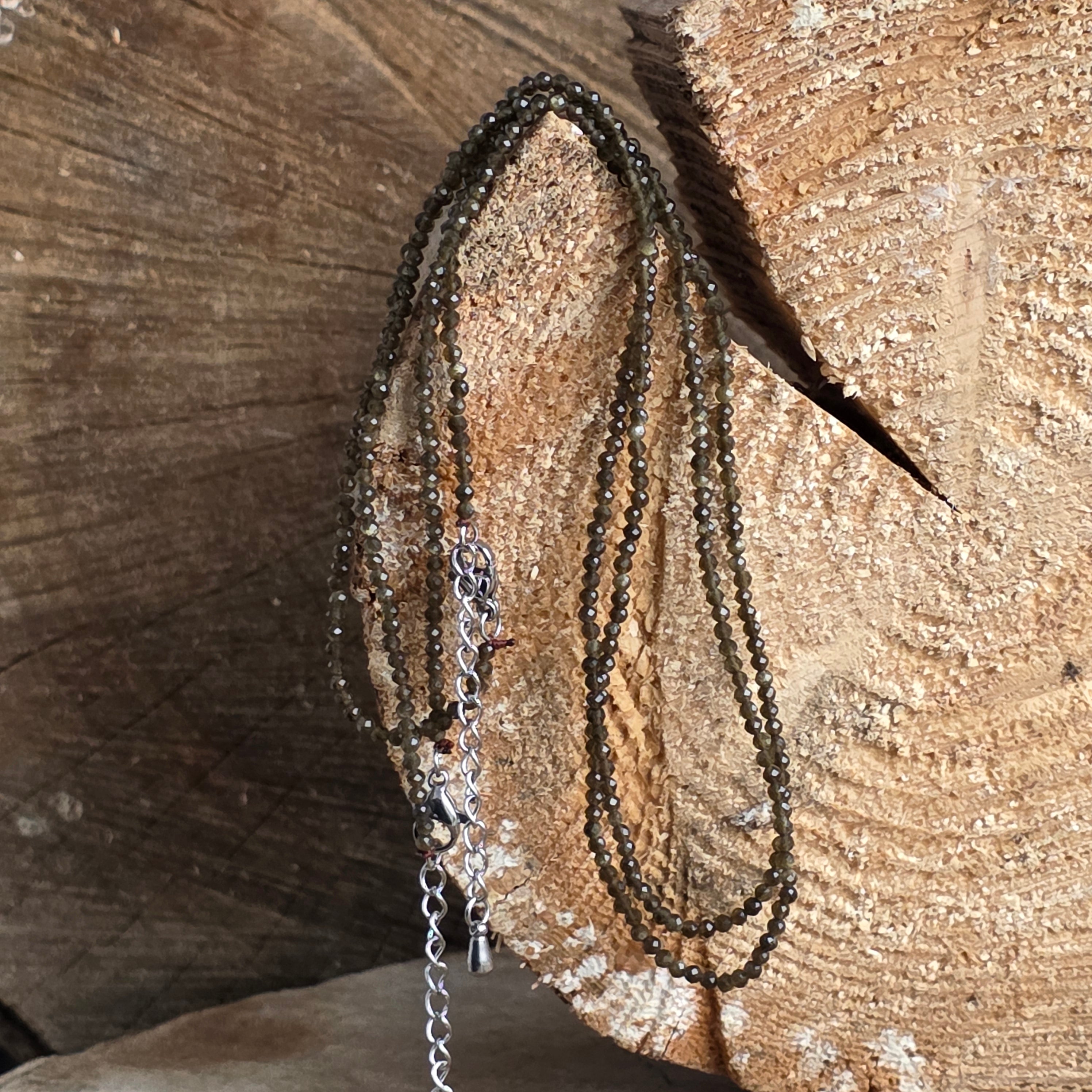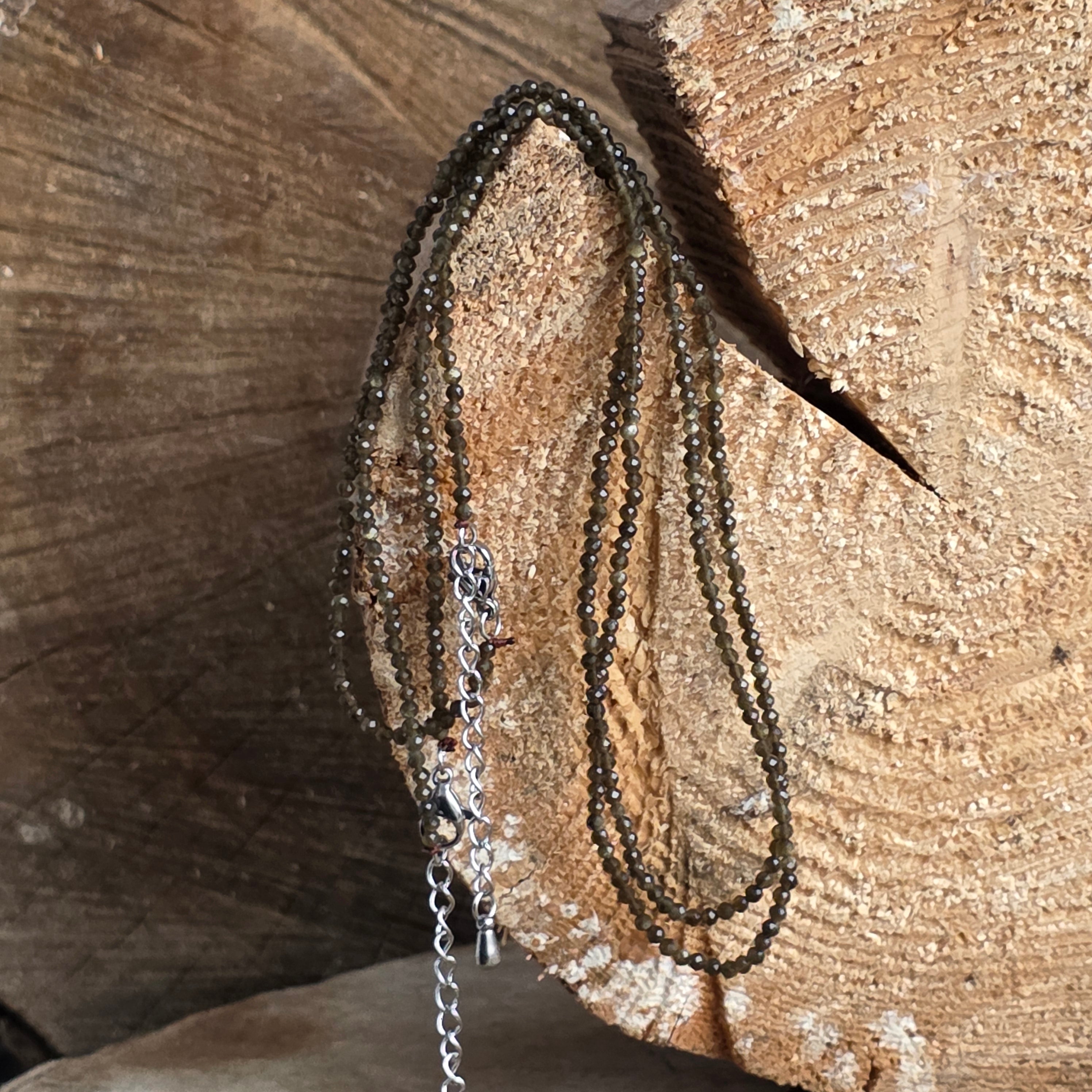Descriere - Ezüst obszidián gyöngyös nyaklánc 2 mm