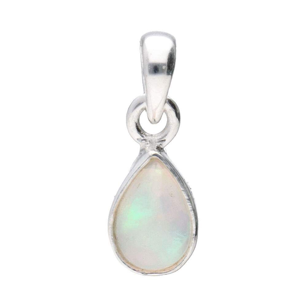 Finom medál alakú csepp, dolgozott 925 ezüst és kirakva a Ausztrál természetes opál, a kőről ismert varázslatos irizálója és opálos színei víz- és égtükrözésre emlékeztet.