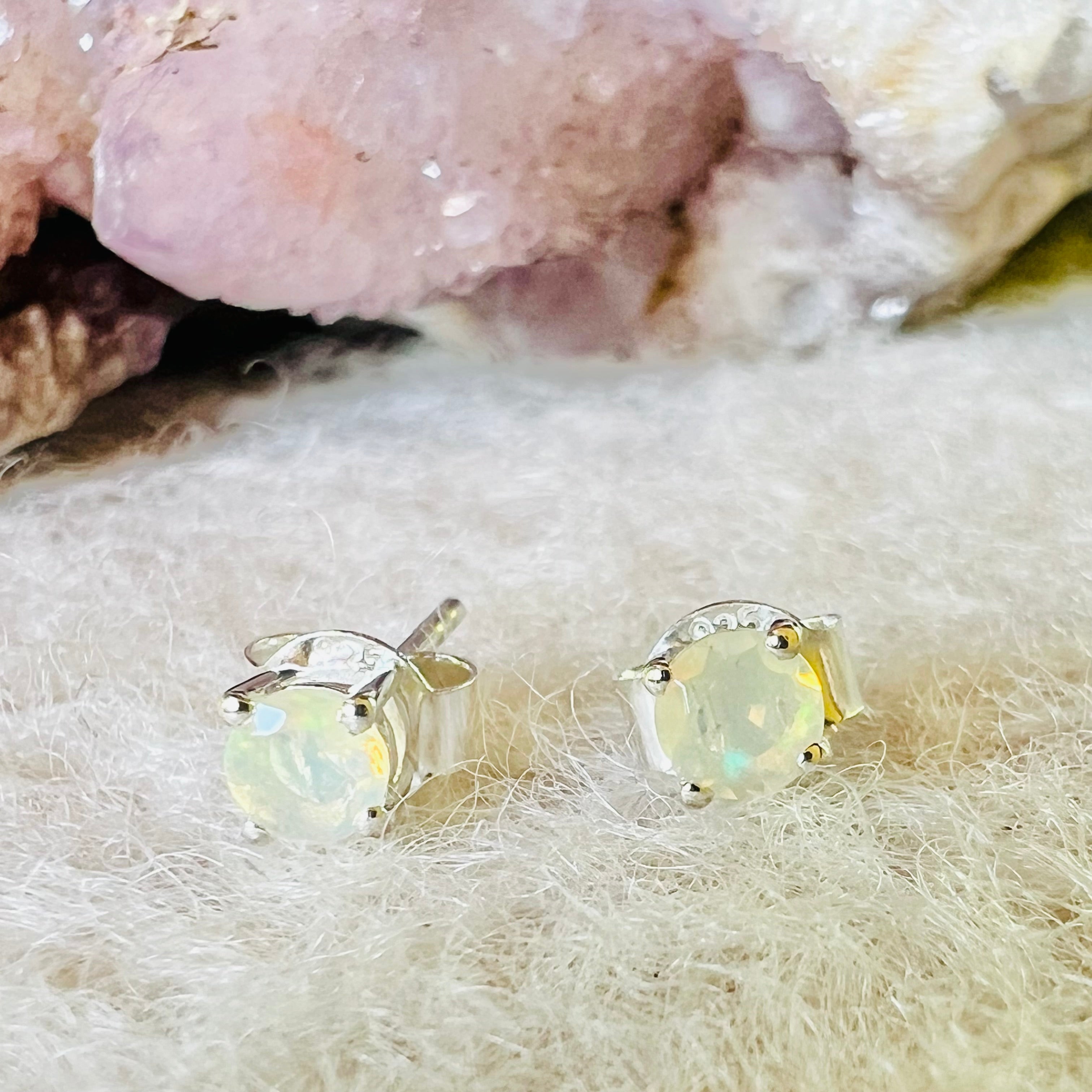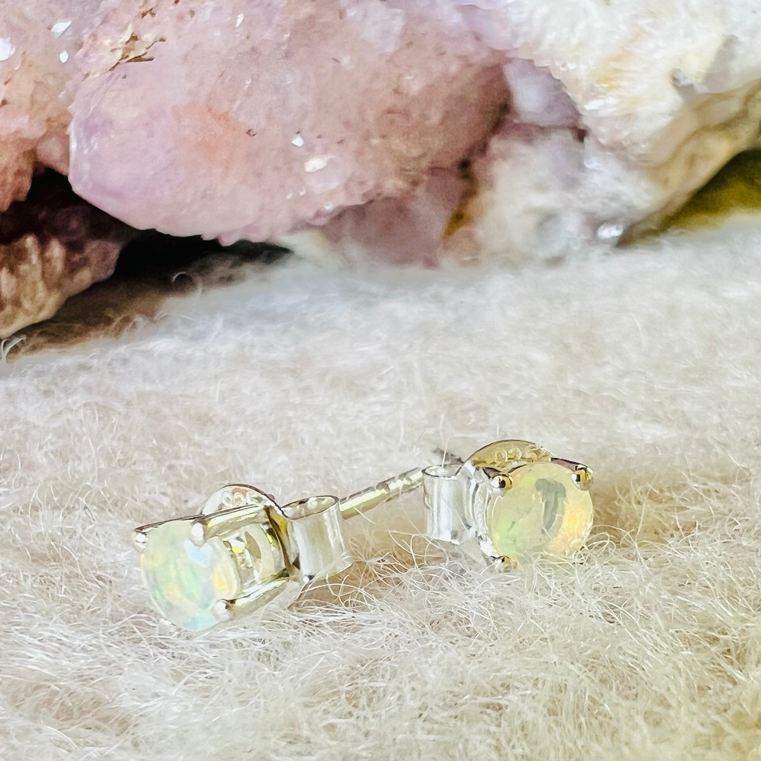 Ezüst opál stud fülbevalók 4 mm kerek