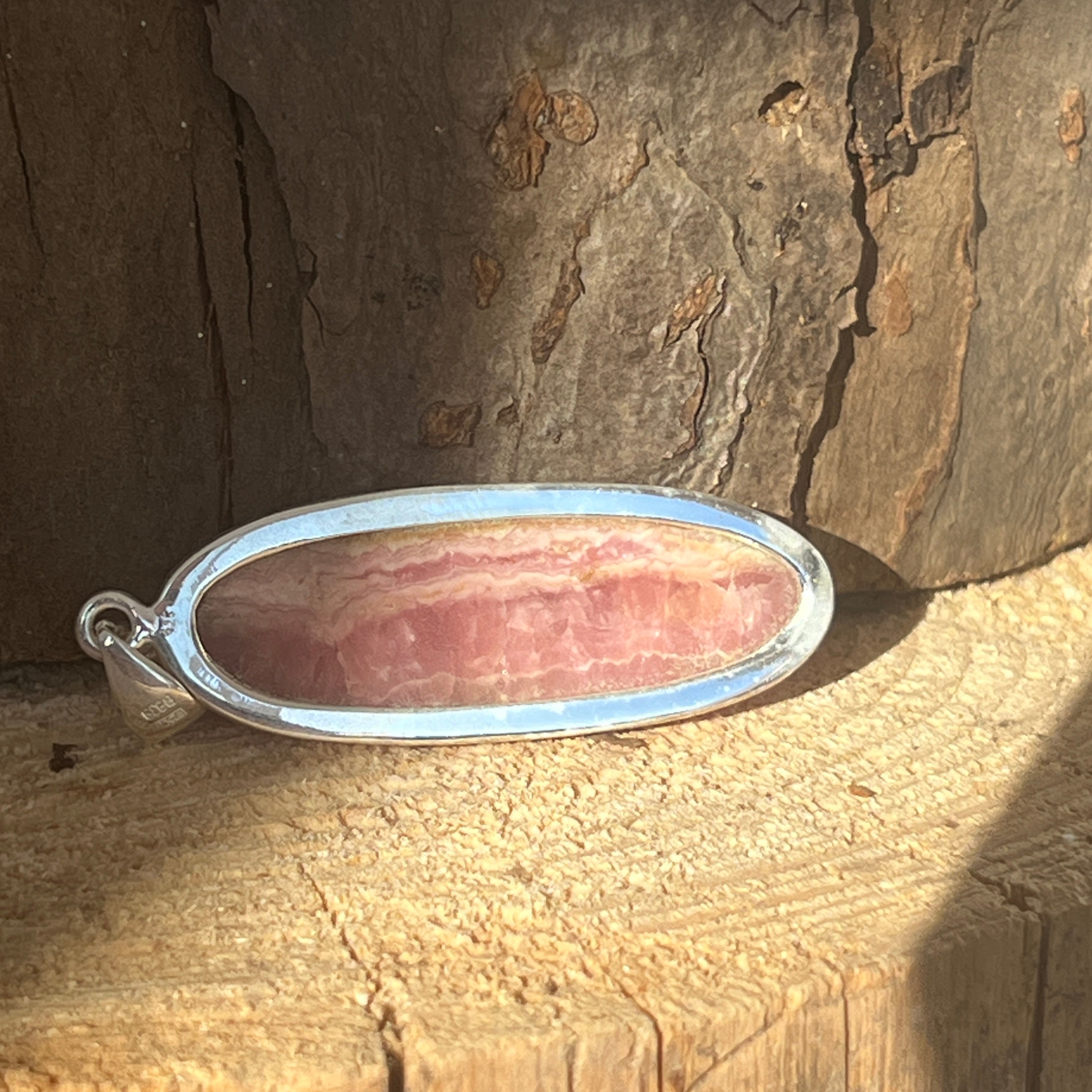 Egy medál, amely ötvözi az argentinai rodokrozit ritka szépségét a nemes ezüsttel, azok számára készítve, akik igazán különleges ékszereket értékelnek.