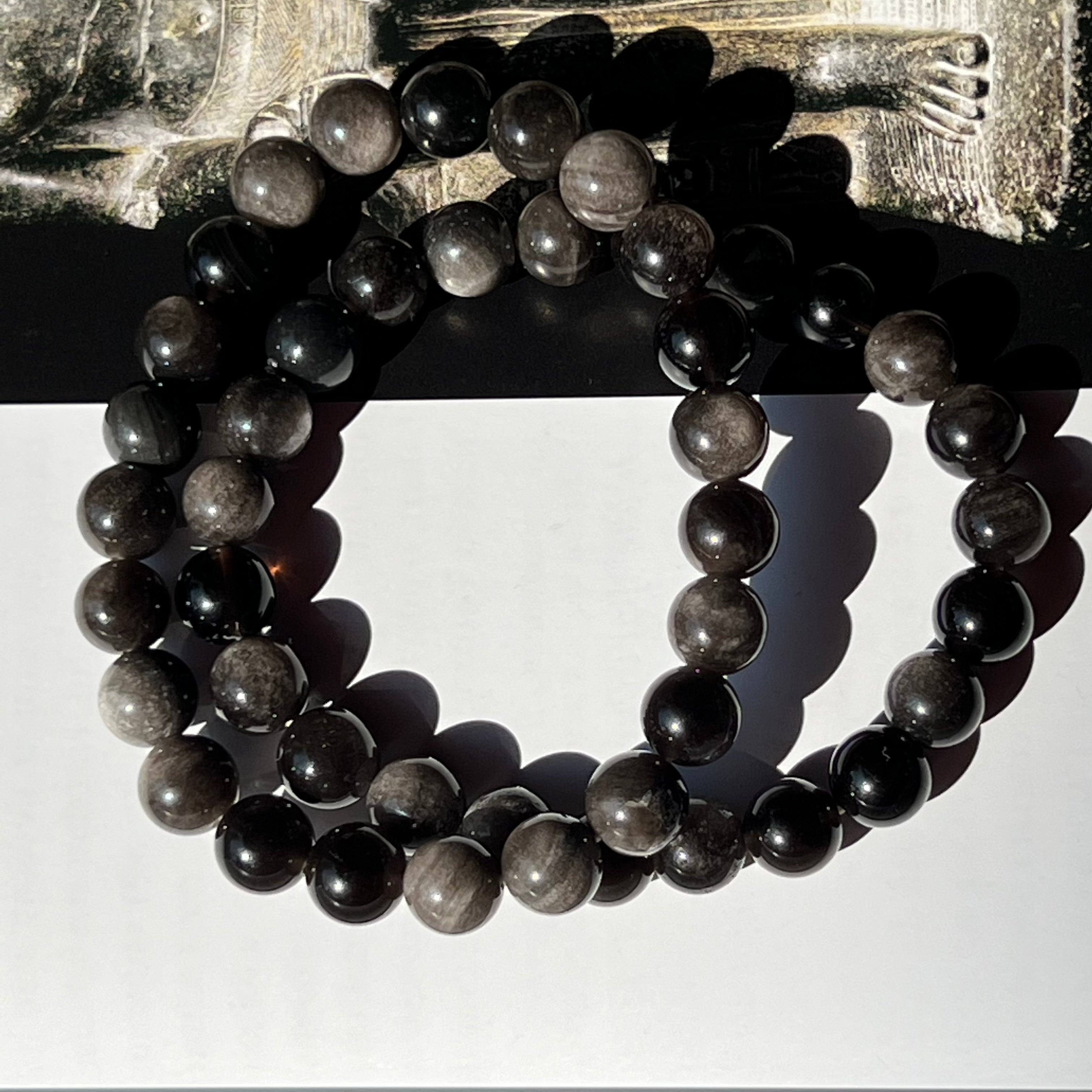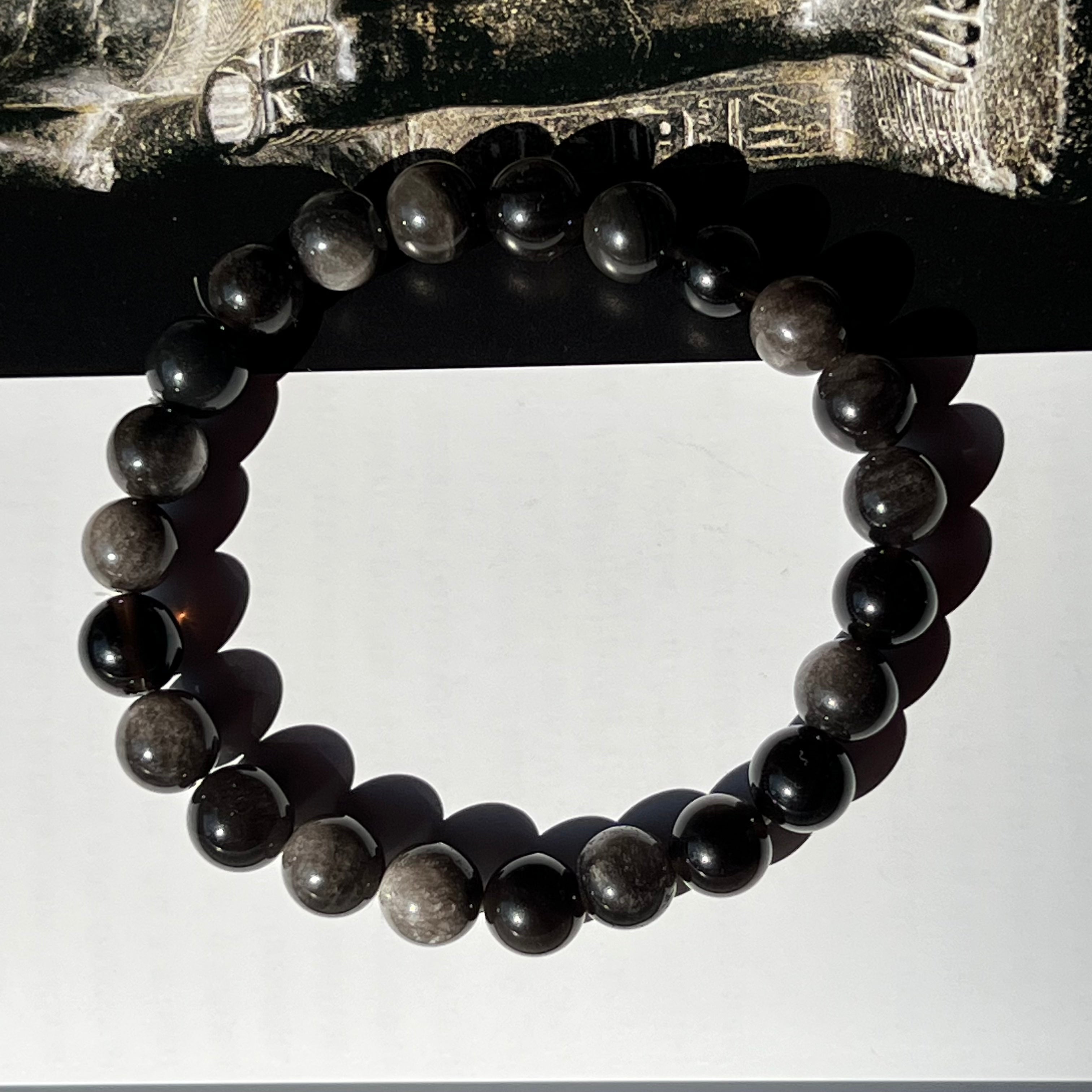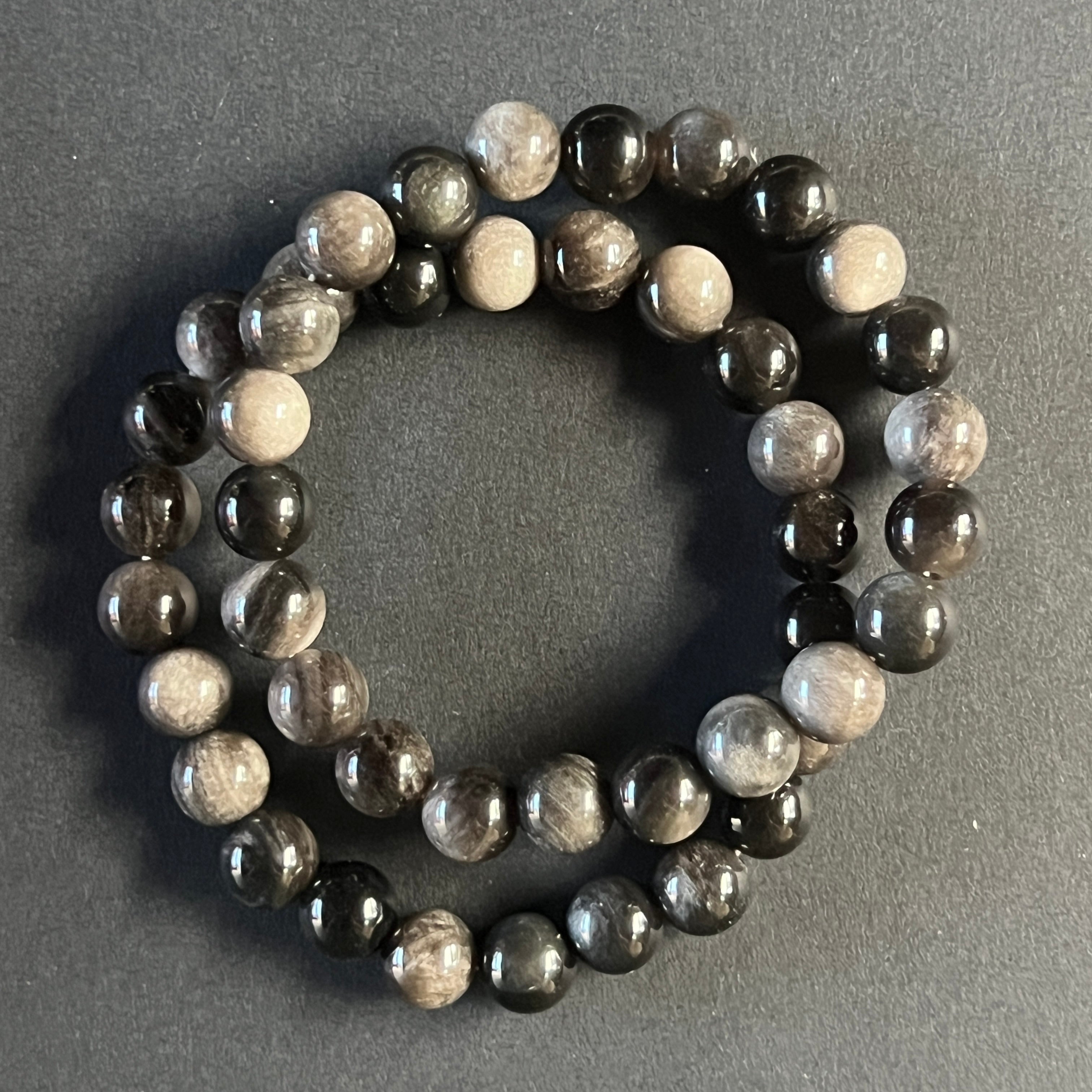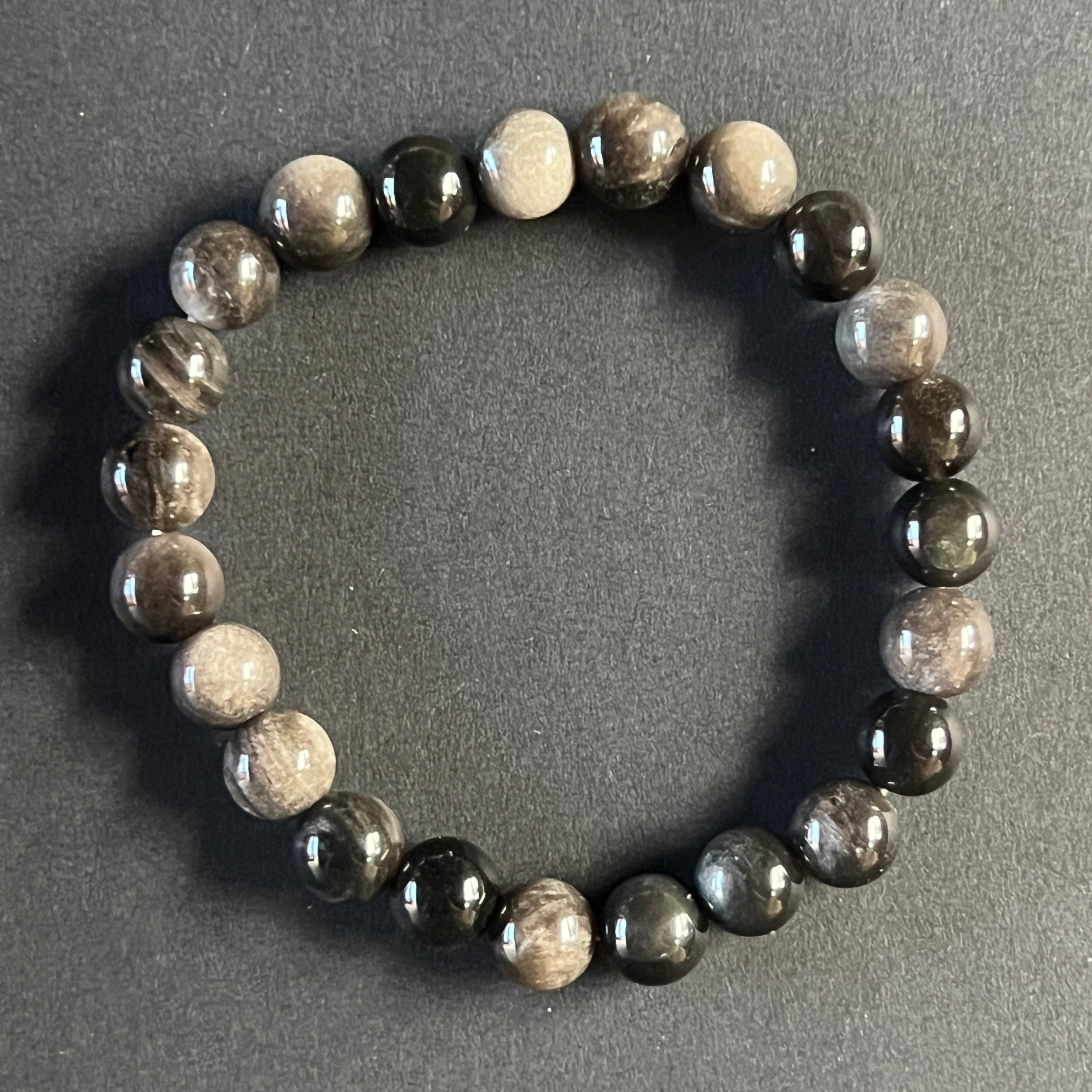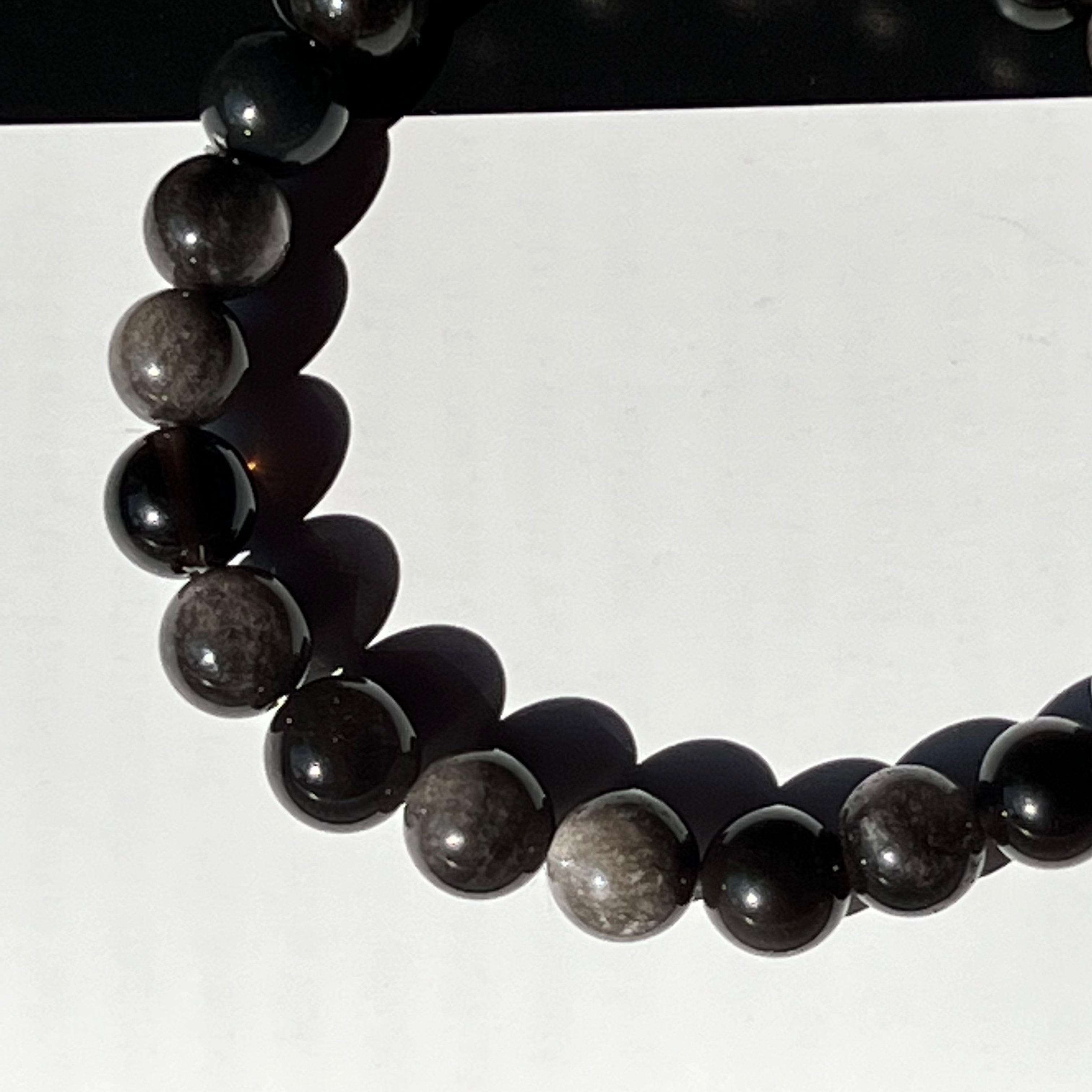 Descriere - Ezüst szivárvány obszidián karkötő 8 mm