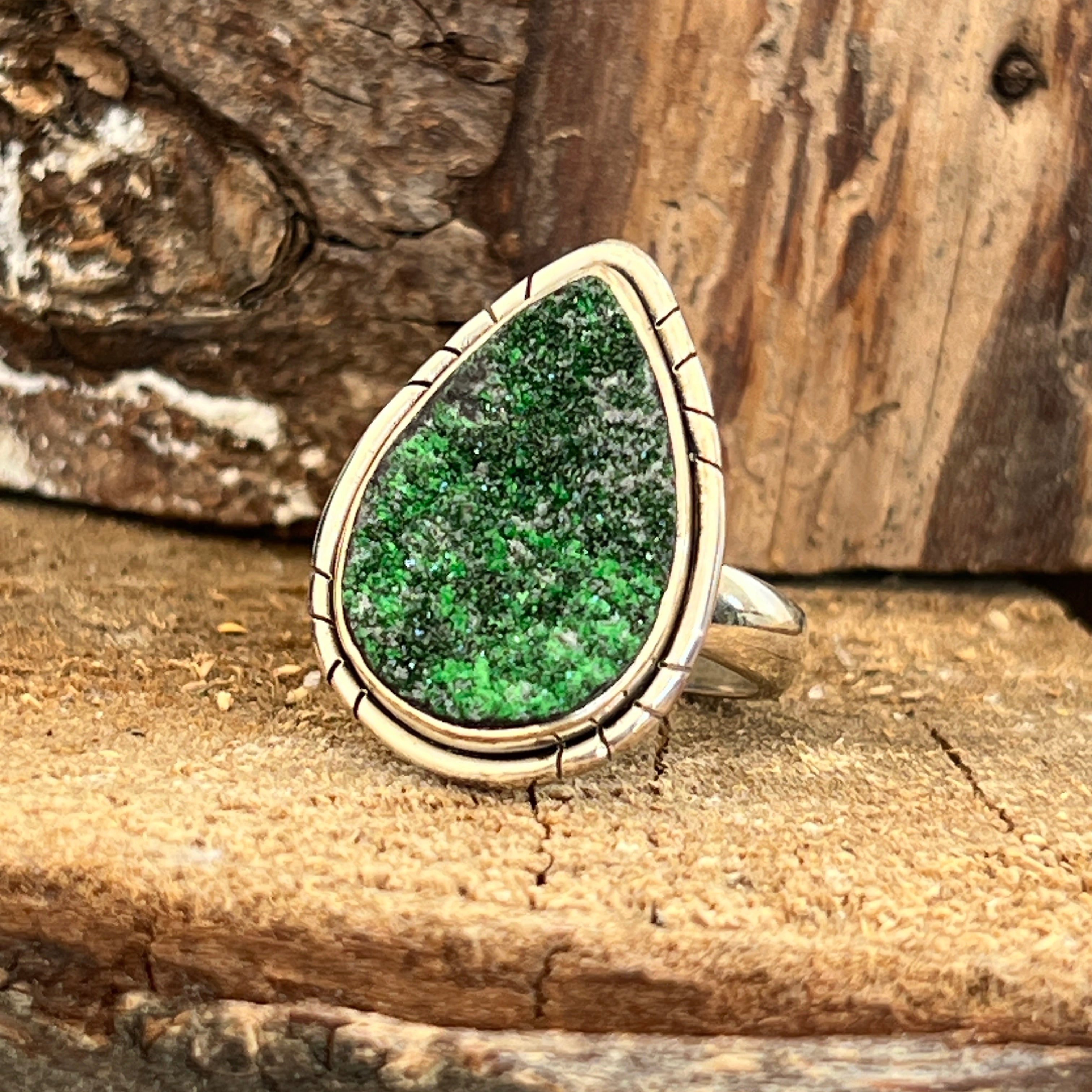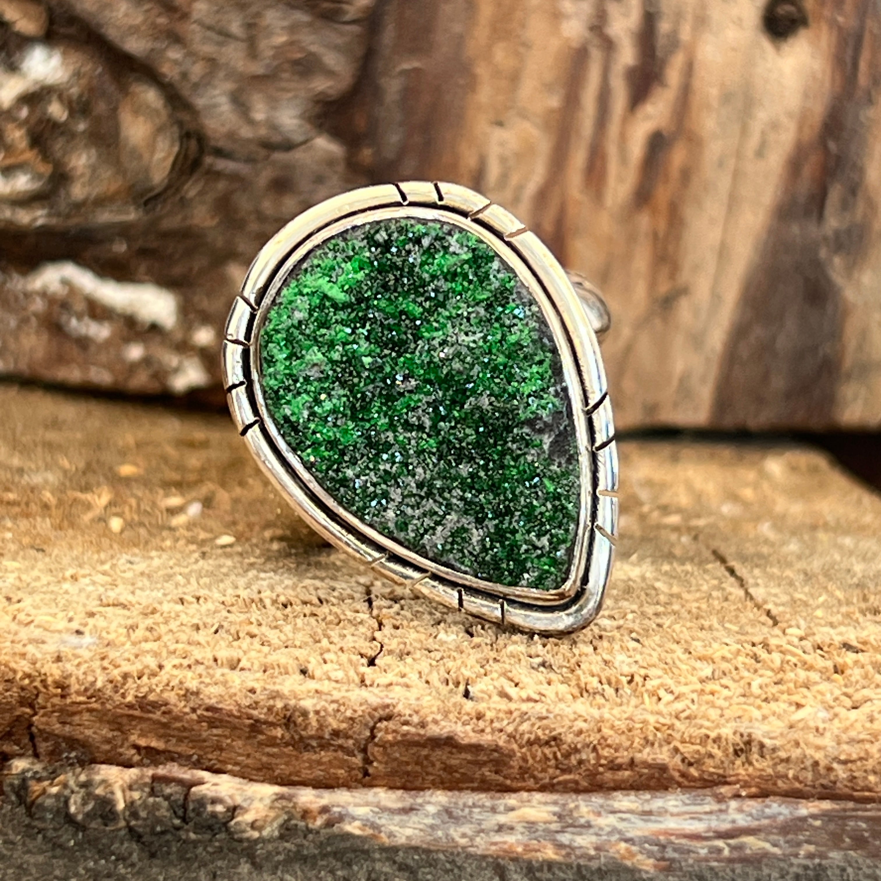Állítható Uvarovit gyűrű ezüstből, 2. modell