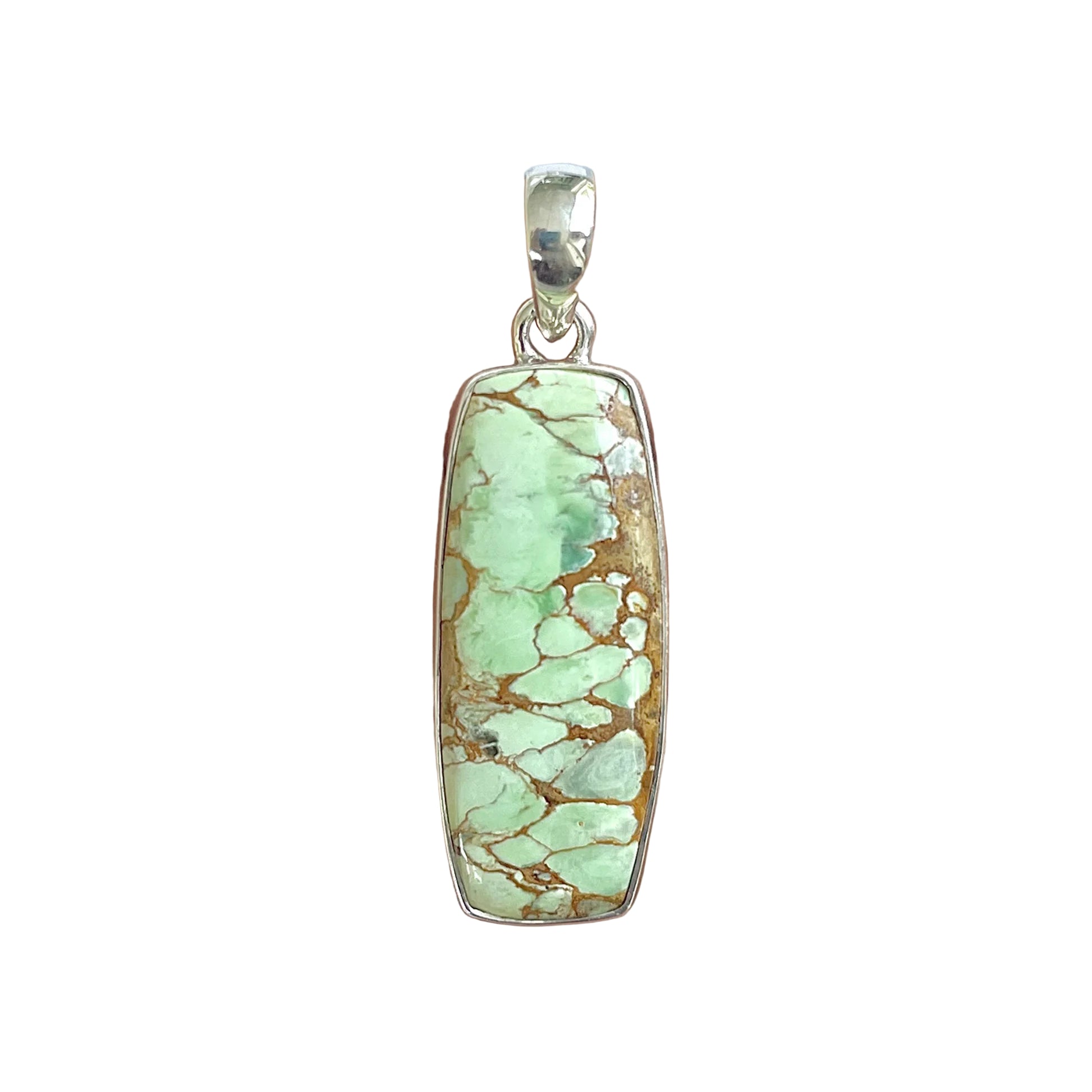 Ez az egyedi variszcit medál a természet szépségét ragadja meg a nyers zöld és a föld meleg tónusainak egyensúlyában. Természetes erezete, mintha a múlt által rajzolt ásványtérképek lennének, a szív és a gyökerek, az ég és a föld közötti kapcsolatot idézi.