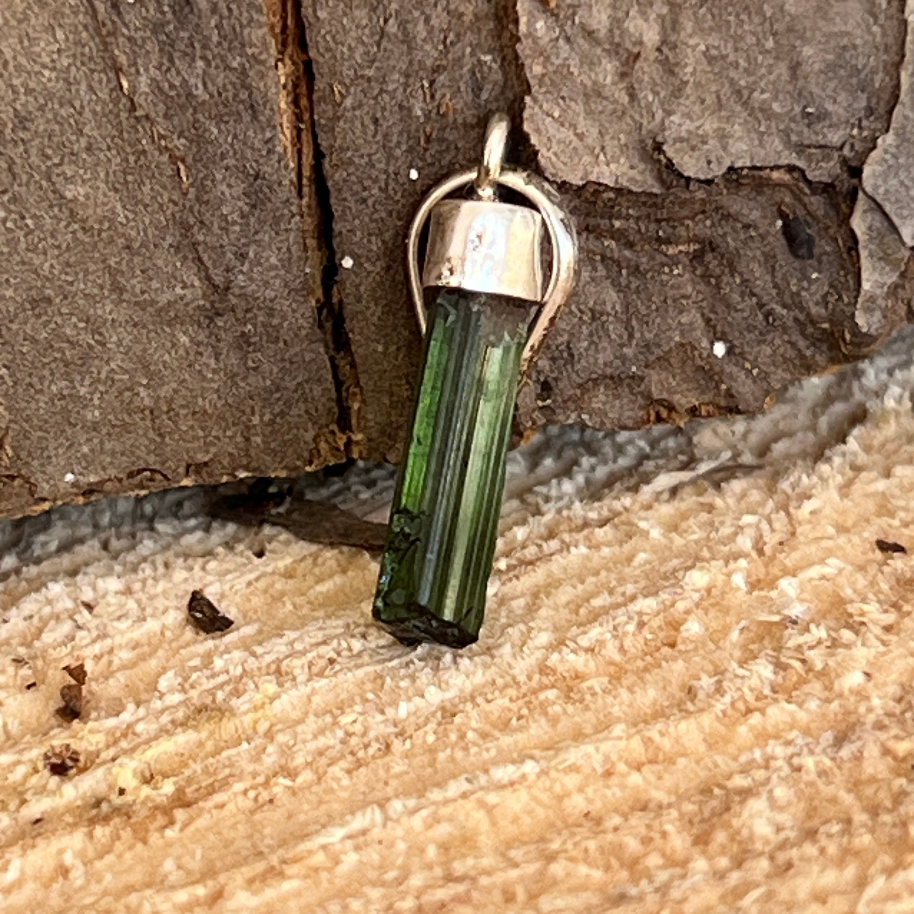 Ezt medál nyers zöld turmalinnal, 925 ezüstbe szerelve megőrzi a kristály természetes formáját és energiáját, ami egyedivé és hitelessé teszi. Minden darab más és más, és a durva kő tökéletlenségei hozzáadott értéket és személyiséget adnak.