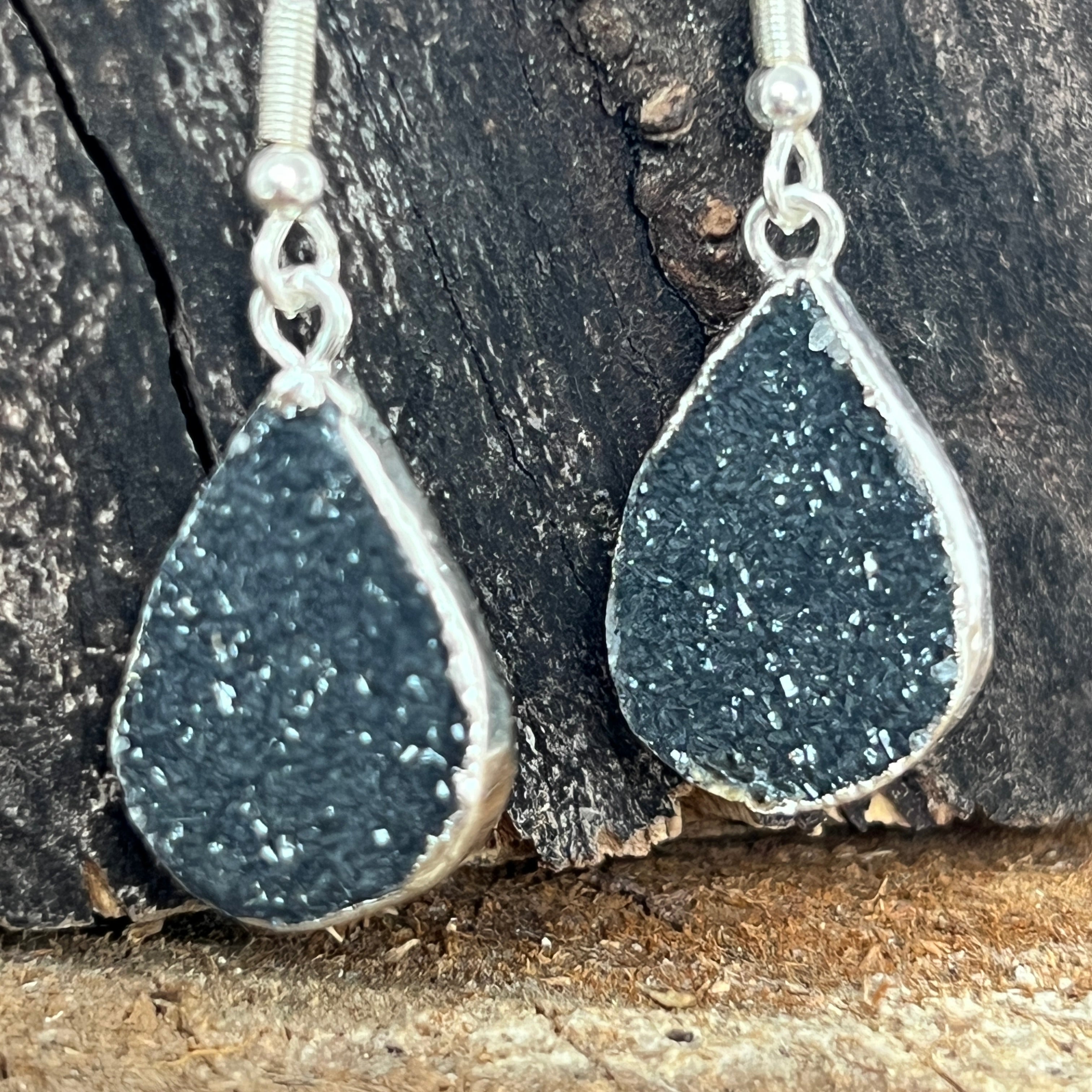 Ezüstözött druzy achát fülbevaló Brazíliából, 2-es modell