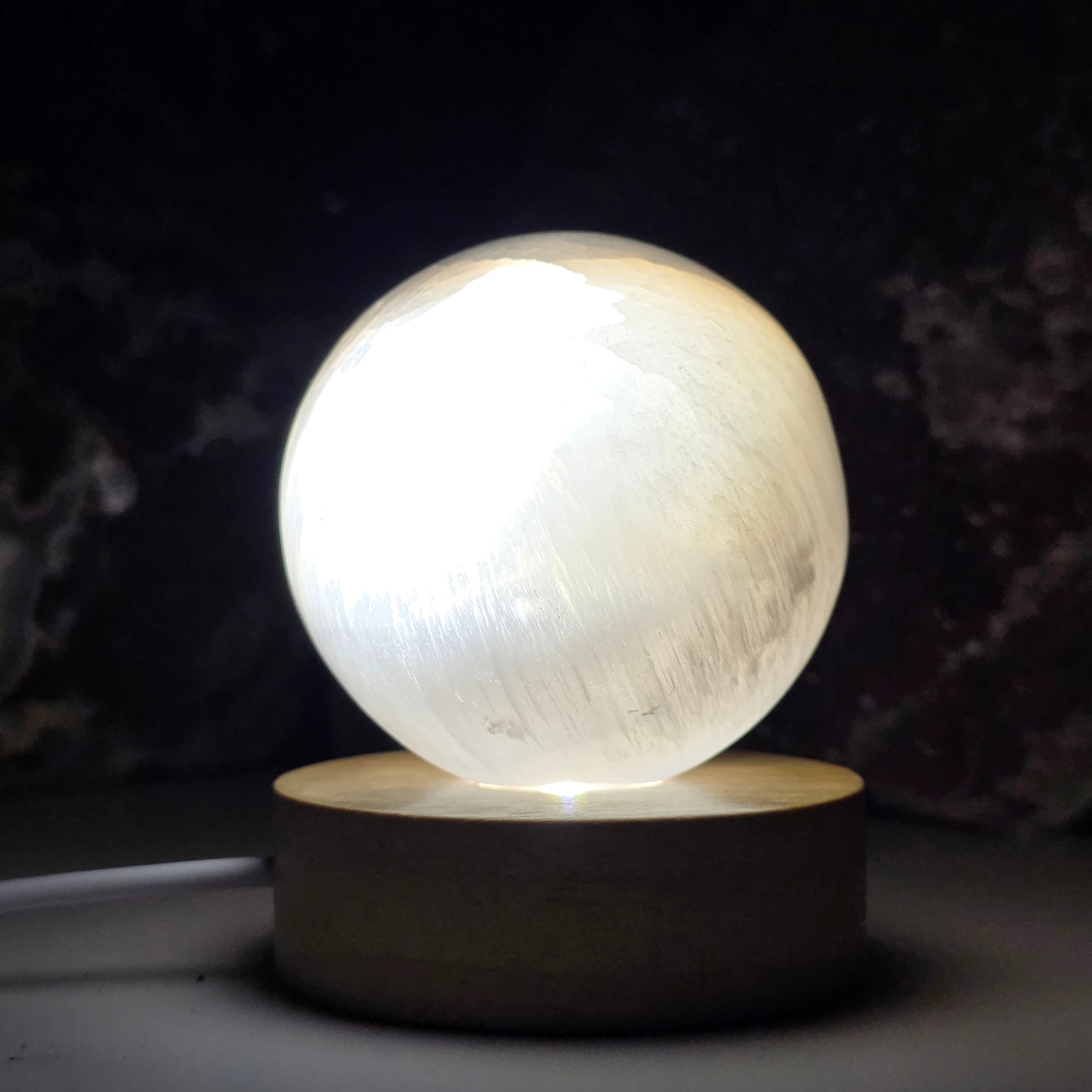 Fa LED-es lámpatartó kristályokhoz | Kerek