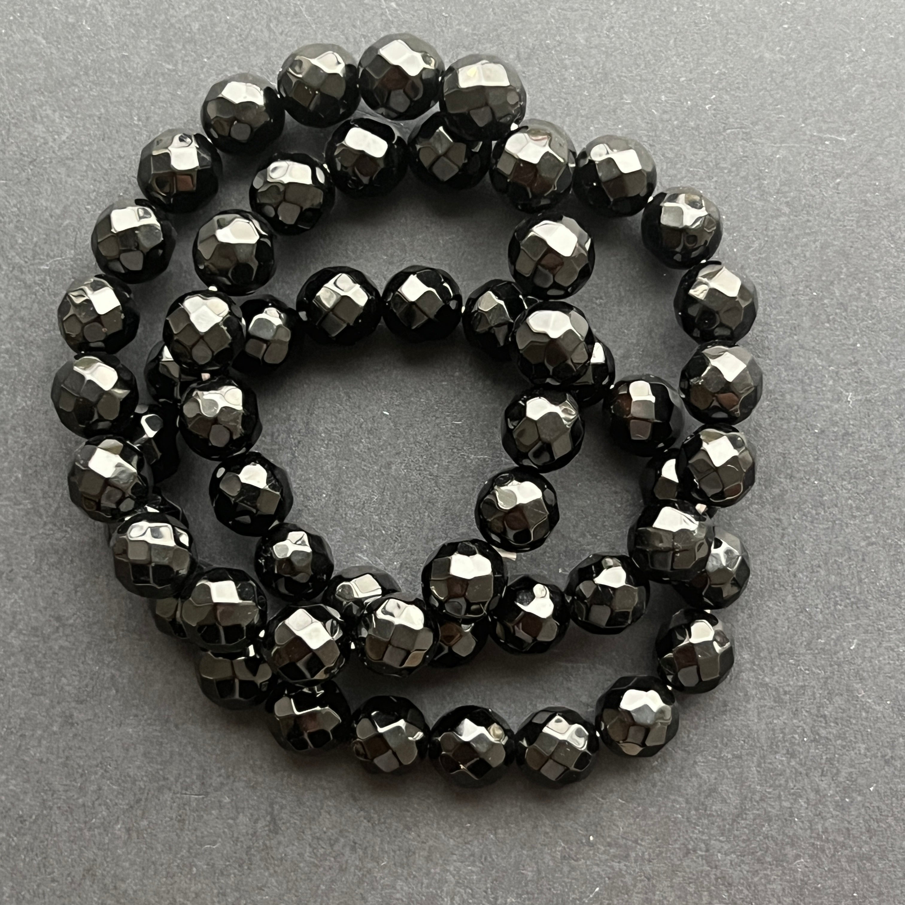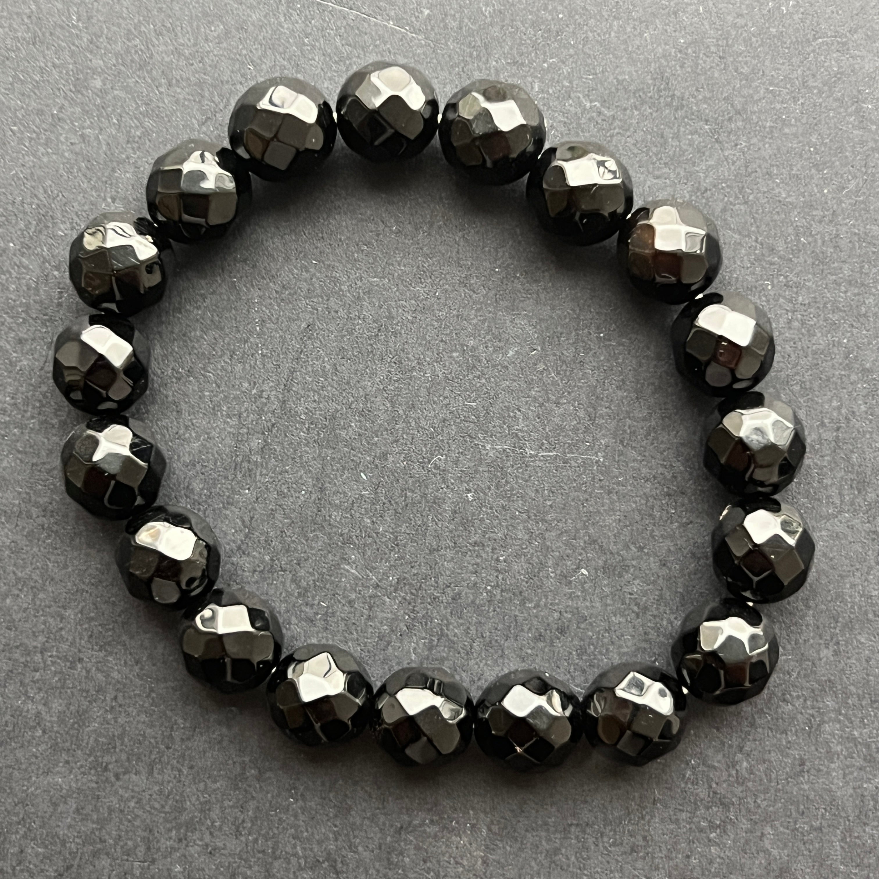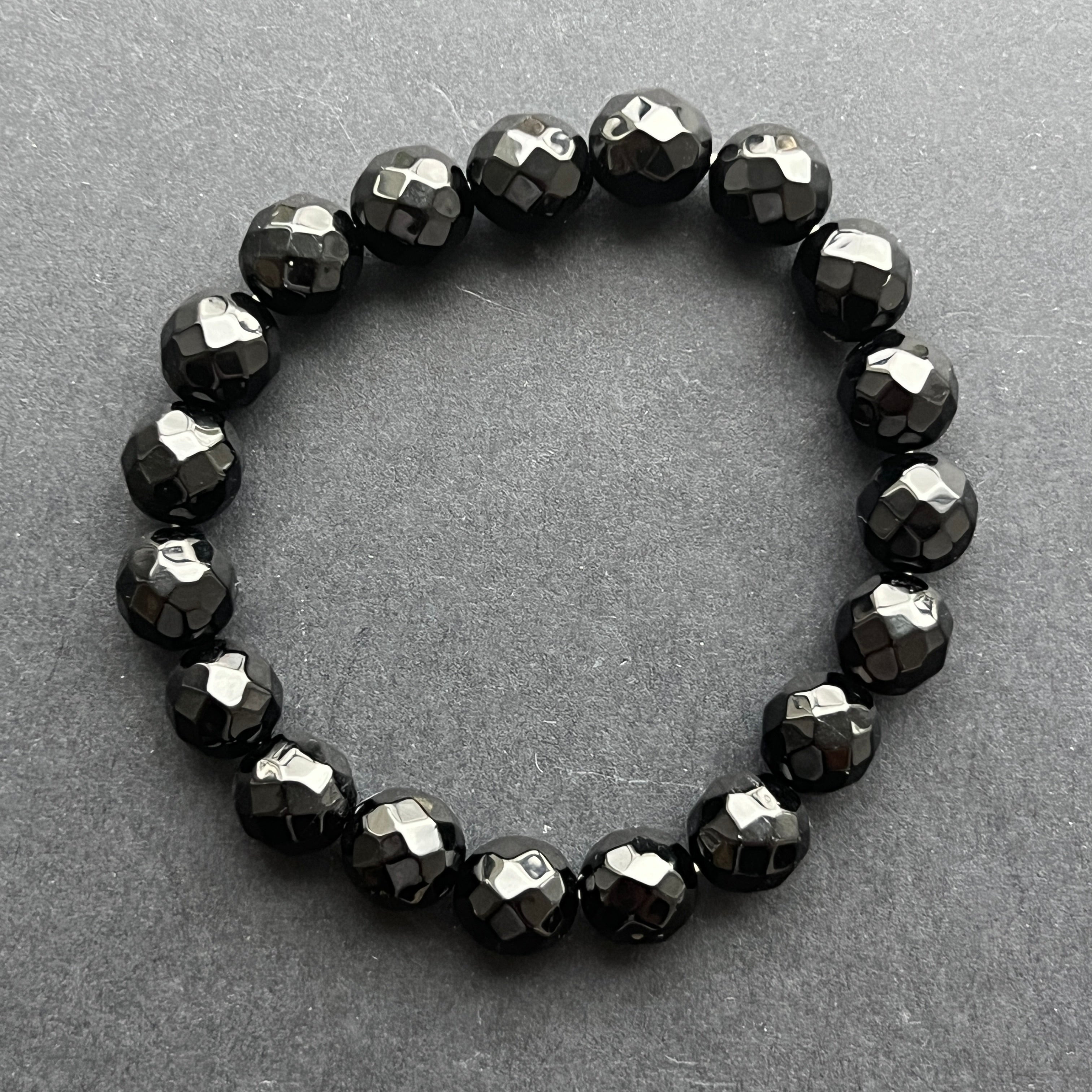 Descriere - Fasetált fekete ónix karkötő 10 mm